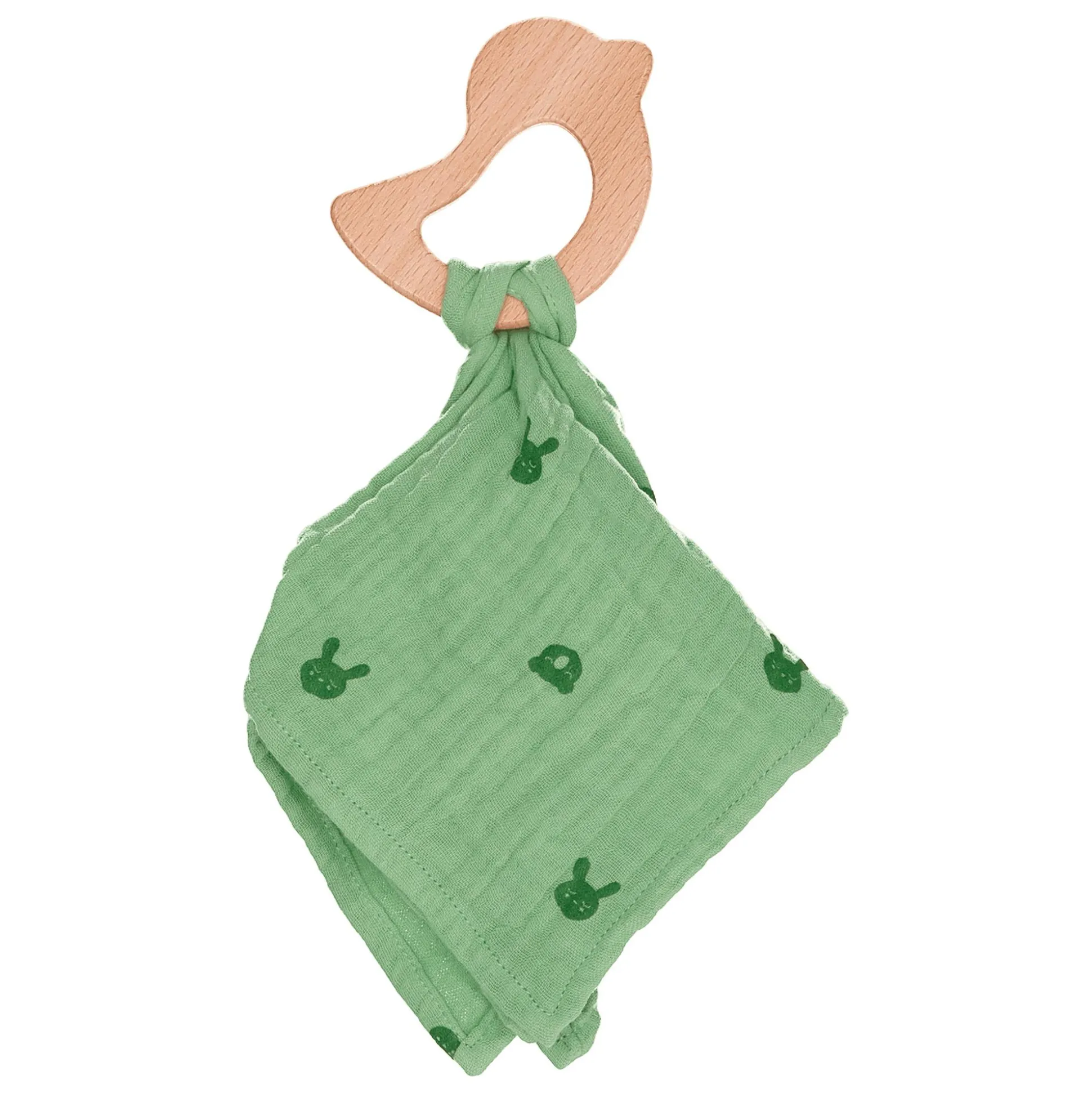 Das Musselin Schnuffeltuch mit Holz-Greifring Vogel – ein kuscheliges Must-Have ab der Geburt. Dank weicher Bio-Baumwolle bietet es deinem kleinen Schatz nicht nur Sanftheit, sondern fördert auch spielerisch seine Sinne. Ein ideales Geschenk für umweltbewusste Eltern, die Wert auf Qualität legen.