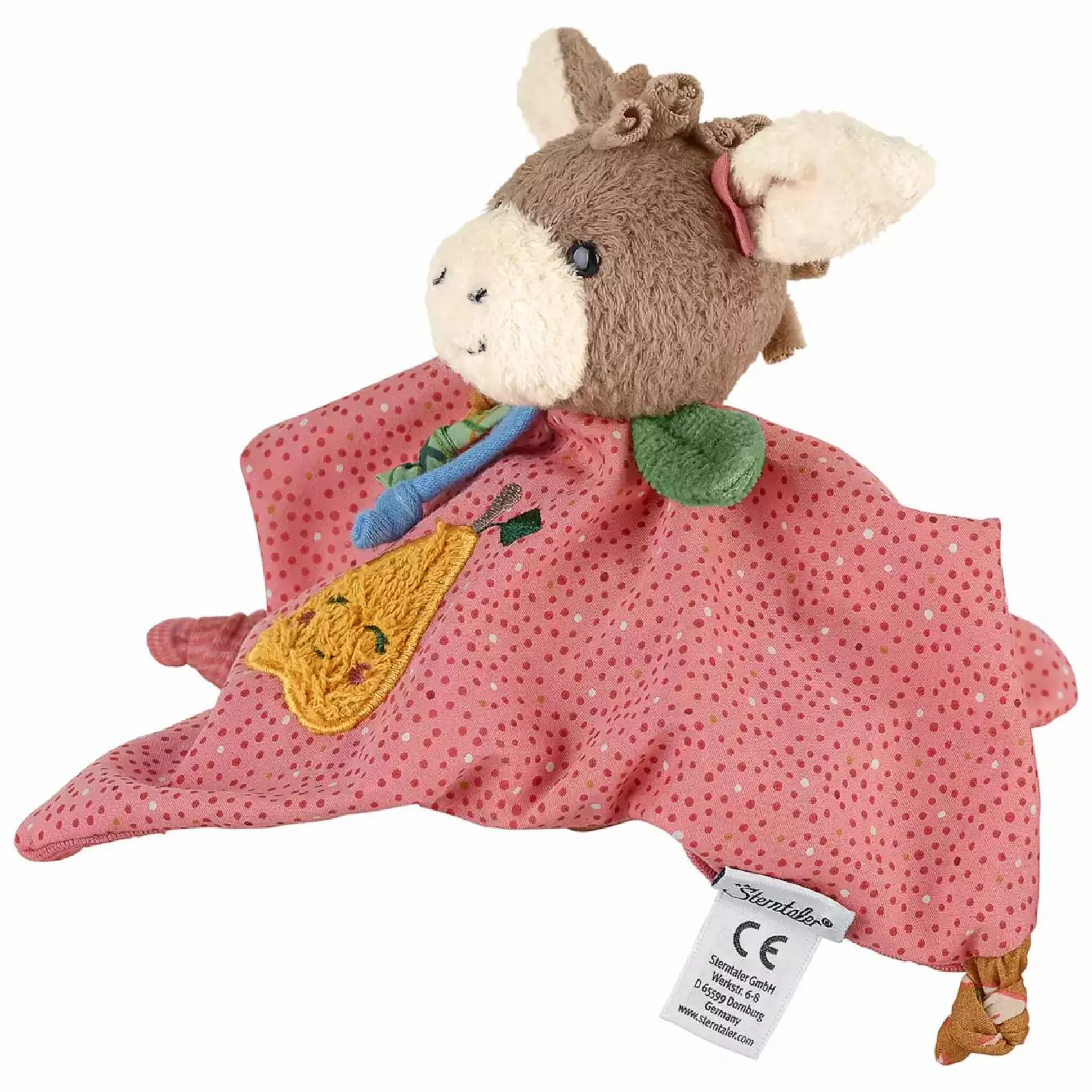Das entzückende kleine Sterntaler Schmusetuch Esel Emmily ist ein hübscher Begleiter deines Lieblings vom ersten Tag an. Der Einsatz der unterschiedlichen Materialien, Zipfel und Knoten regen zum Greifen, Begreifen, Schmusen und Trösten an. Das Schnuffeltuch ist aus der „Kindergarten“ Kollektion von Sterntaler, ohne Rassel oder Quietsche ausgestattet und daher auch der optimale Wegbegleiter im Kindergarten.