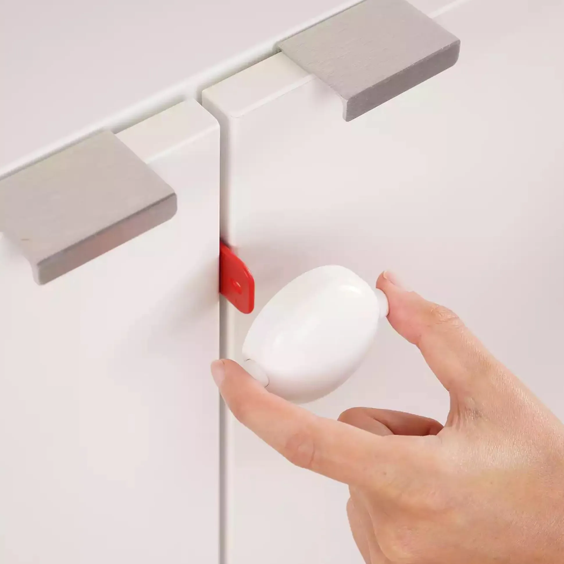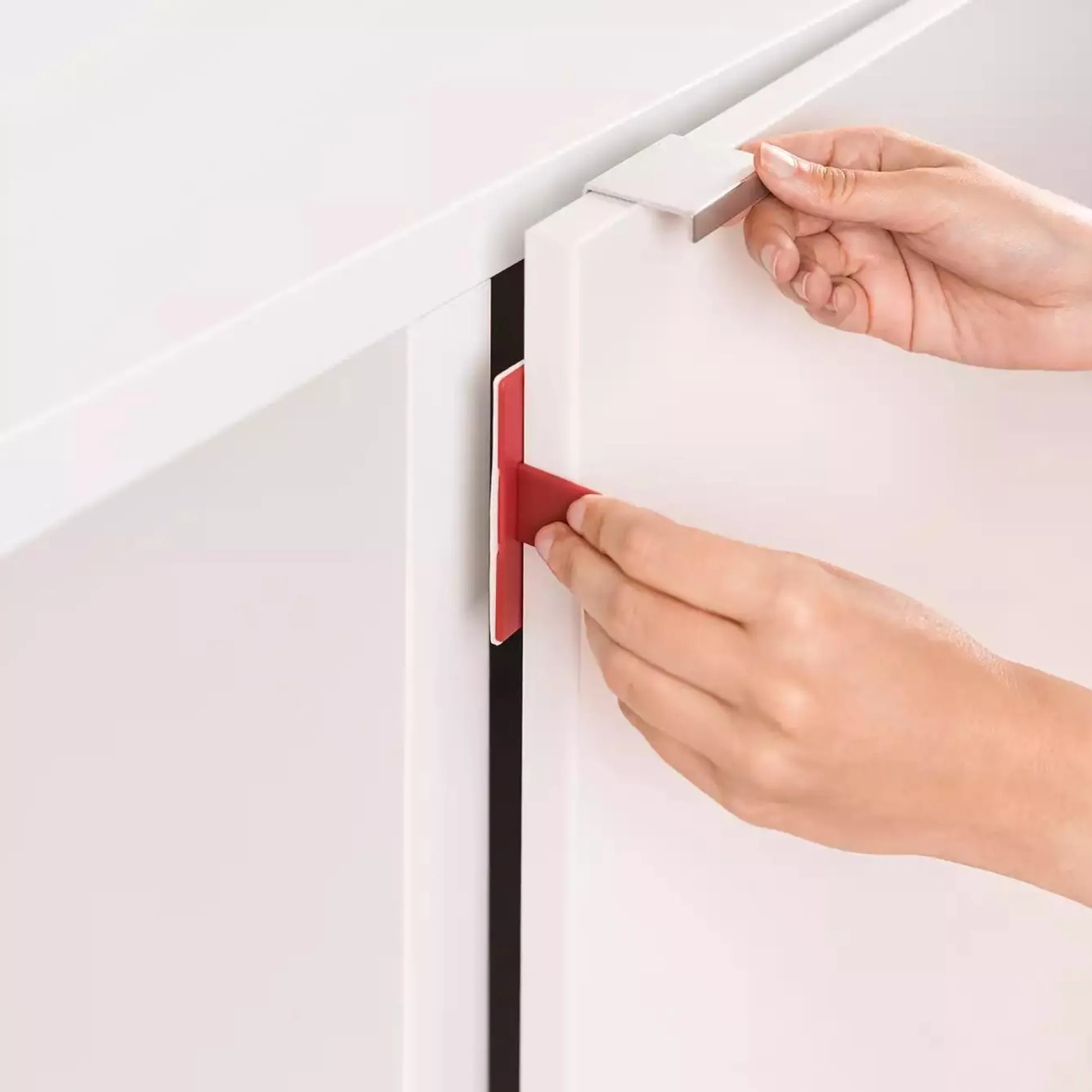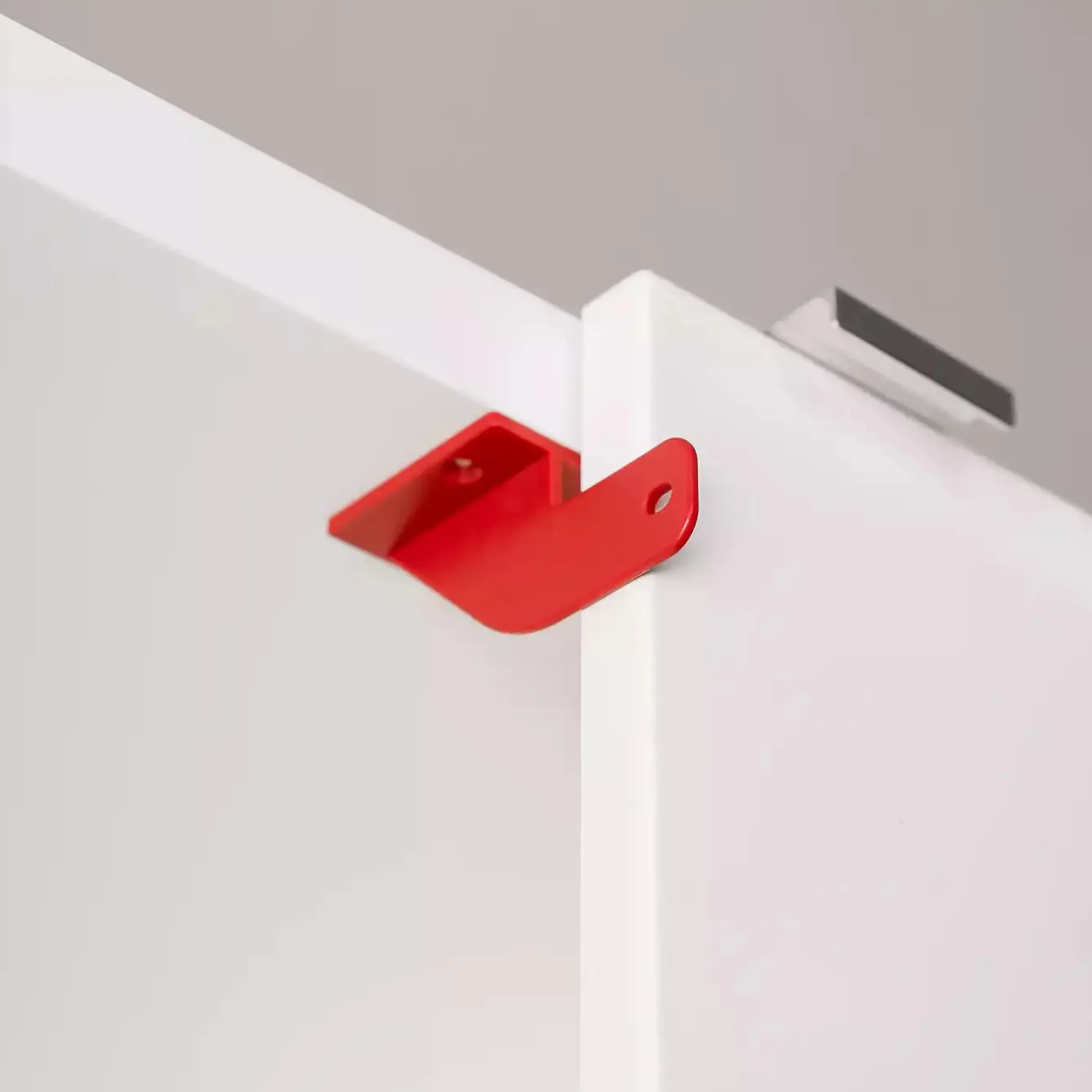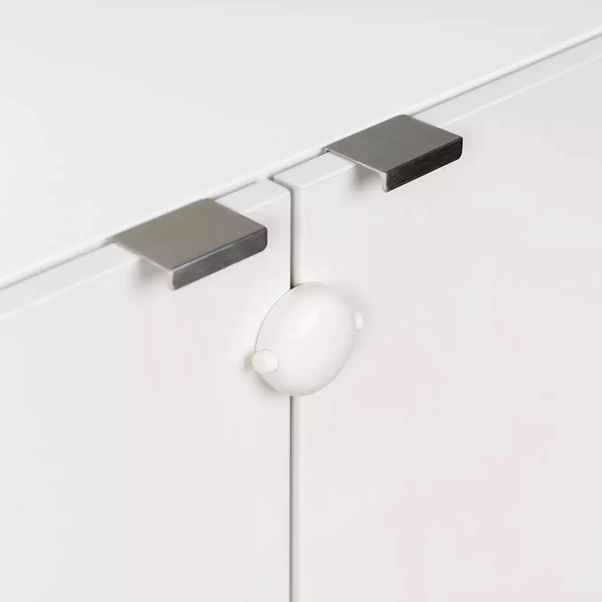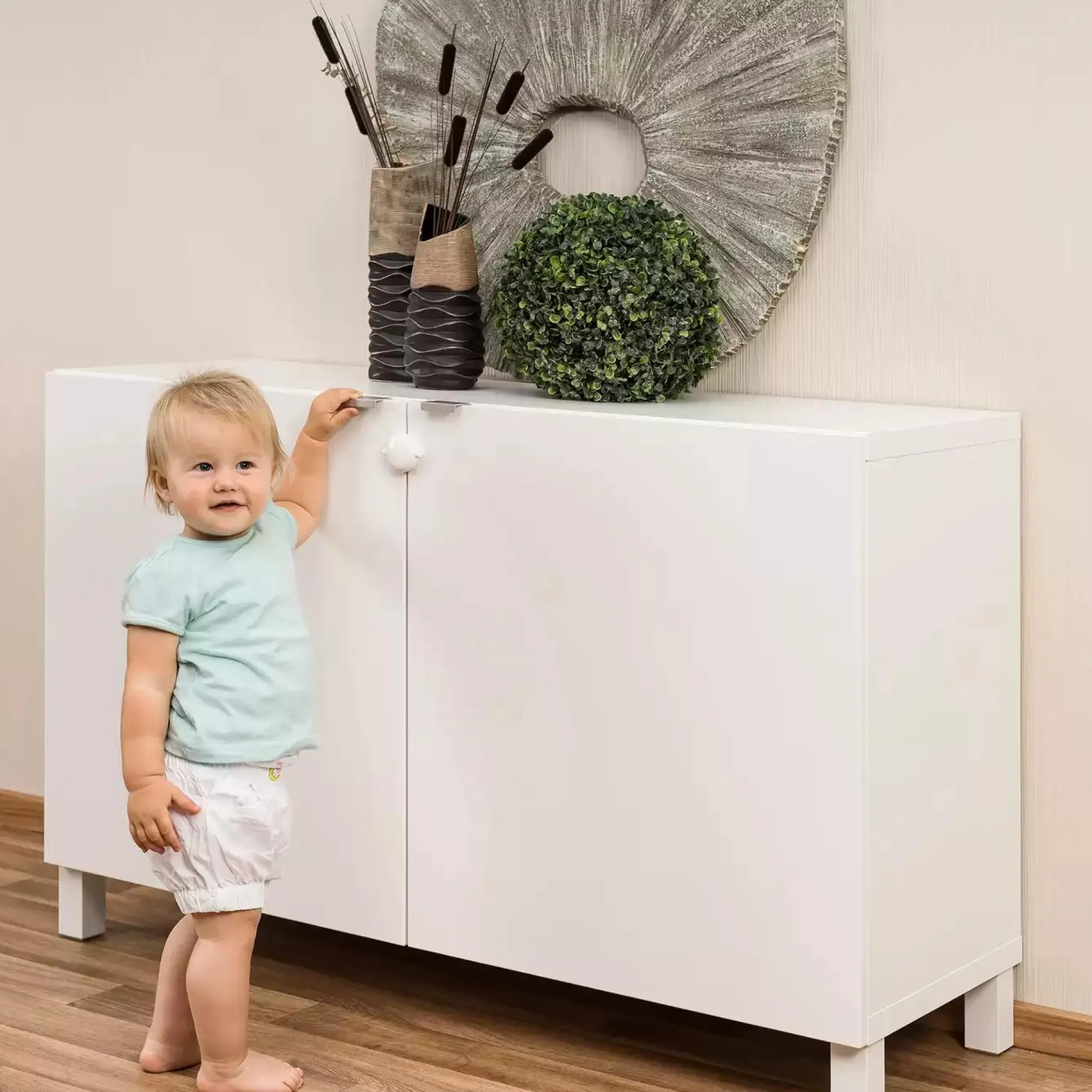 Das reer Schrankschloß für Doppeltüren ist durch die einfache Montage ideal, um Schränke sicher zu verschließen. Für Eltern ist der Mechanismus mit einer Hand leicht zu bedienen.