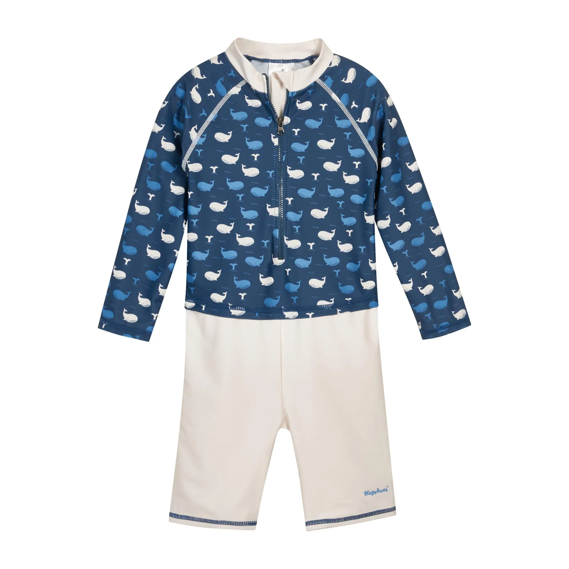 Der Schwimm-Einteiler Wal von Playshoes sorgt für ungetrübten Badespaß an sonnigen Tagen – egal ob im Freibad oder am Strand. Dank hohem UV-Schutz (UPF 50+) und integriertem Kinnschutz schützt er die empfindliche Kinderhaut optimal. Der lange, unterlegte Reißverschluss erleichtert das An- und Ausziehen und das schnelltrocknende Material sorgt für extra Komfort nach dem Planschen.