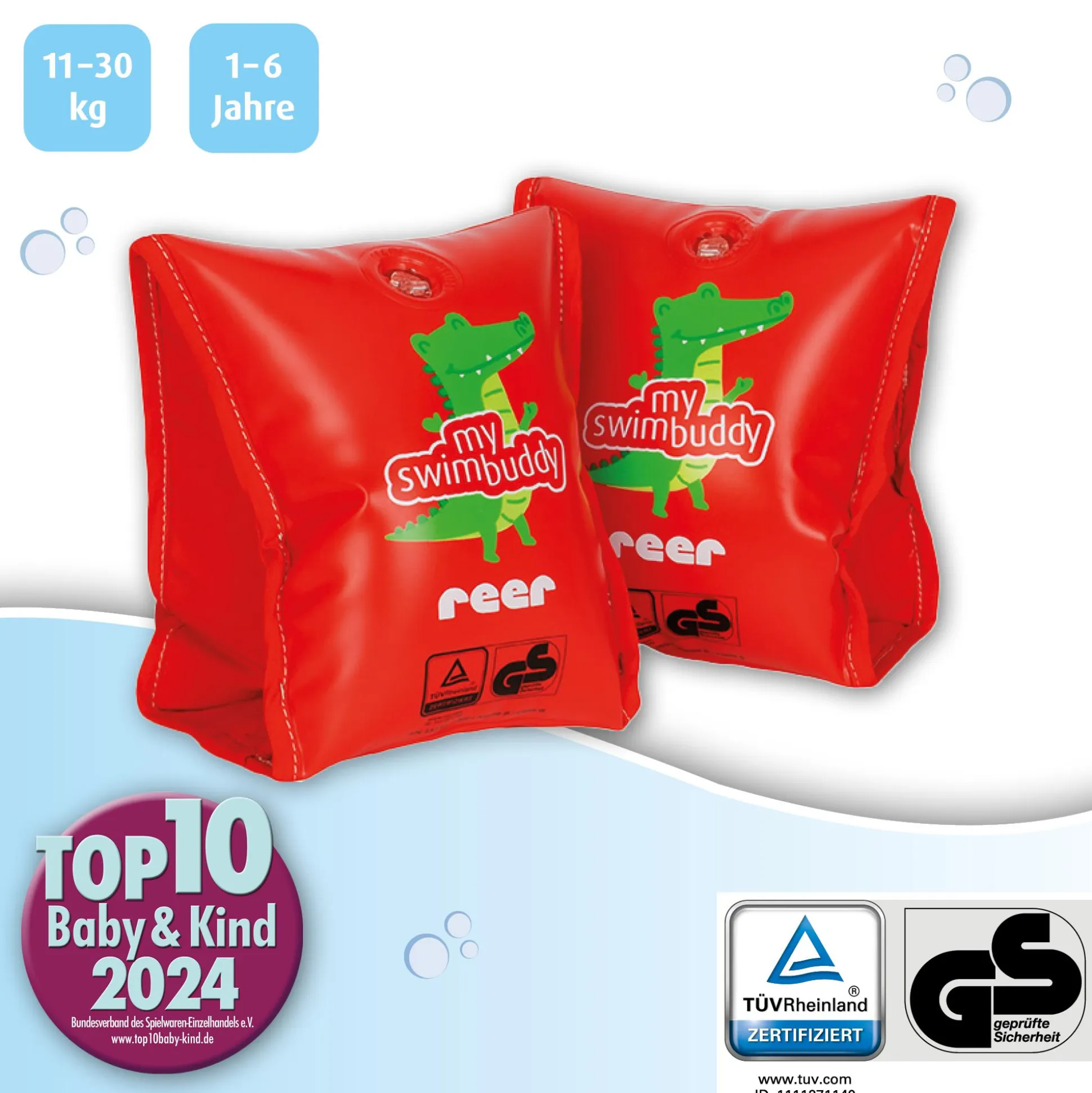 Die Schwimmflügel von reer sind nicht nur funktional, sondern auch praktisch. Ihre platzsparende Aufbewahrung macht sie zum perfekten Begleiter auf Reisen, sei es zum Strand oder zum Pool. Mit einem empfohlenen Körpergewicht von etwa 11 – 30 kg und für Kinder im Alter von ca. 1 – 6 Jahren sind sie vielseitig einsetzbar und passen sich dem Wachstum deines Kindes an.