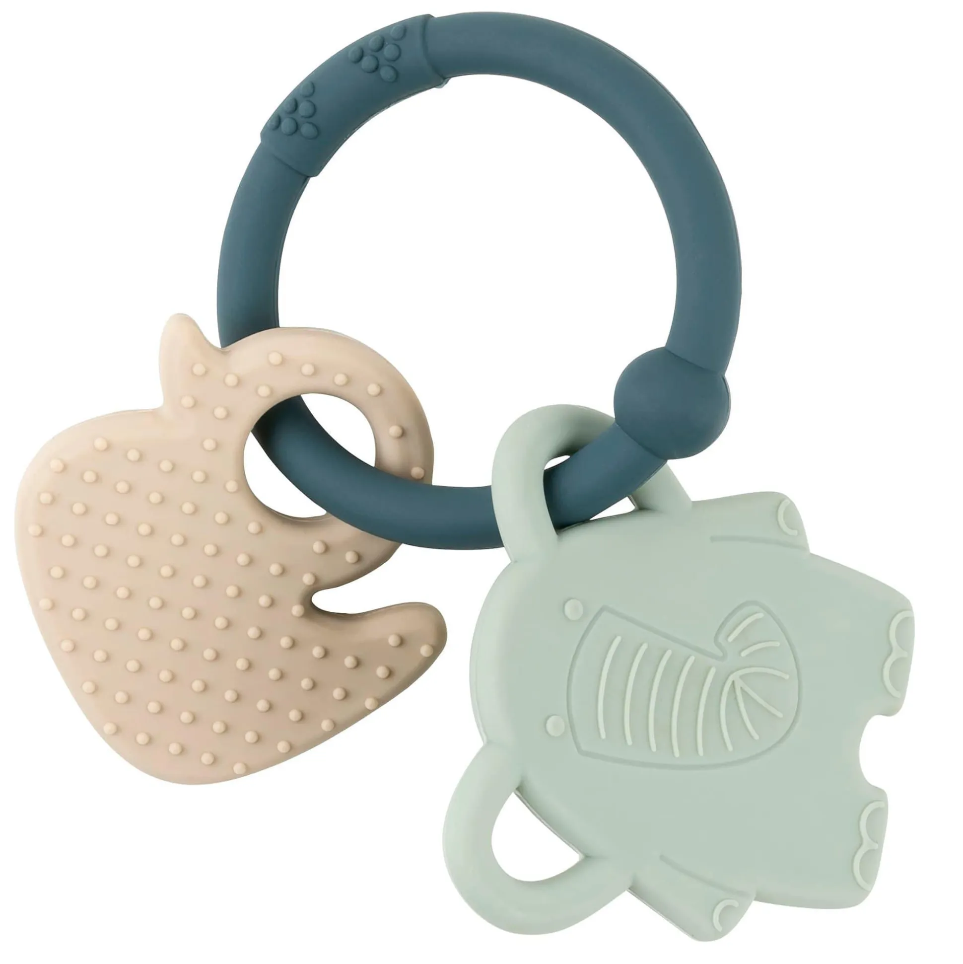 Die Silikon-Kollektion bietet schlichte und elegante Designs – hergestellt aus hochwertigen Materialien und mit raffinierter Verarbeitung. Der Beißring mit den kleinen Tieren begleitet dein Baby, wenn die ersten Milchzähne zu wachsen beginnen. Die unterschiedlich strukturierten Oberflächen laden Babys zum Kauen ein und lindern so schmerzendes Zahnfleisch. Der Nattou Beißring ist für kleine Händchen leicht zu greifen und kann auch einfach zum Spielen benutzt werden.