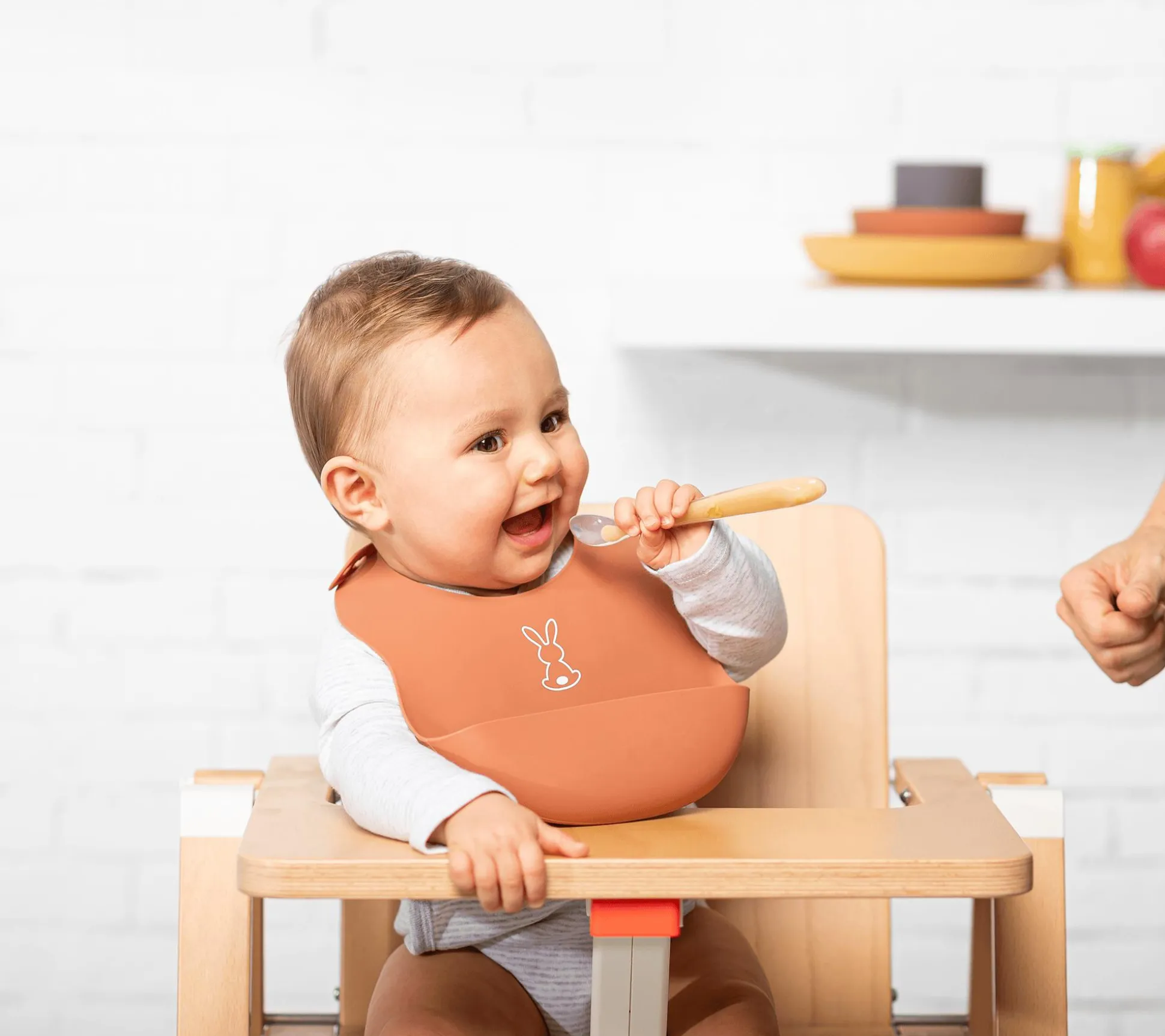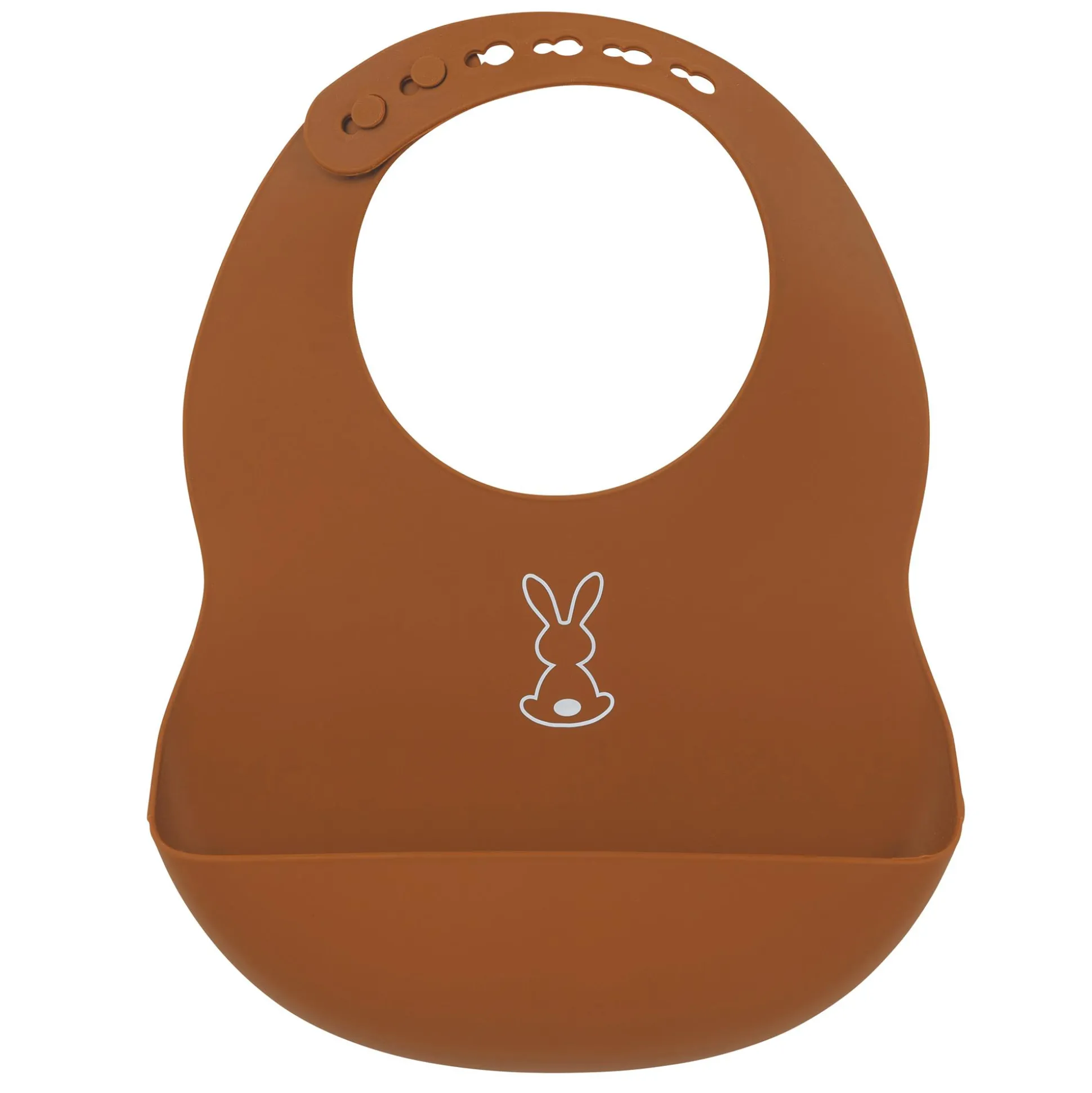Für kleine Feinschmecker: mit dem Silikonlätzchen von Nattou in der Trendfarbe Terrakotta können Eltern und Kinder unbeschwert essen und genießen.