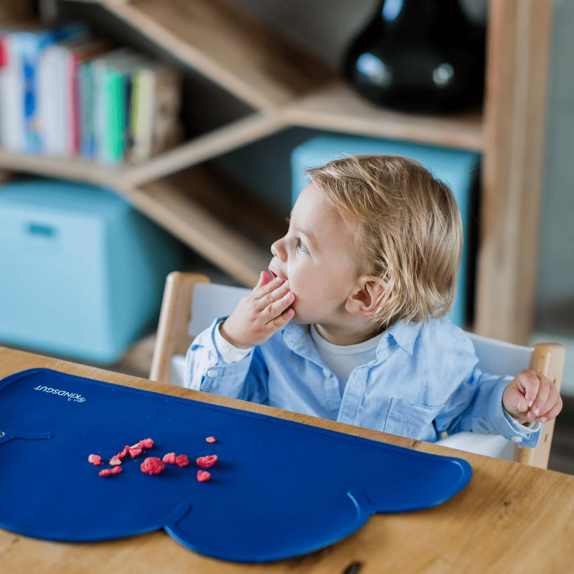 Das Kindsgut Platzdeckchen in Wolken Form ist die perfekte Unterstützung deines Kindes am Esstisch. Dank der Rutschfestigkeit des Untersetzers unterstützt es dein Kind dabei, alleine essen zu lernen. Das robuste Material lässt sich leicht abwischen, sodass auch mal etwas daneben gehen darf. So wird der Tisch geschont und dein Kleines spielerisch beim Essenlernen begleitet.