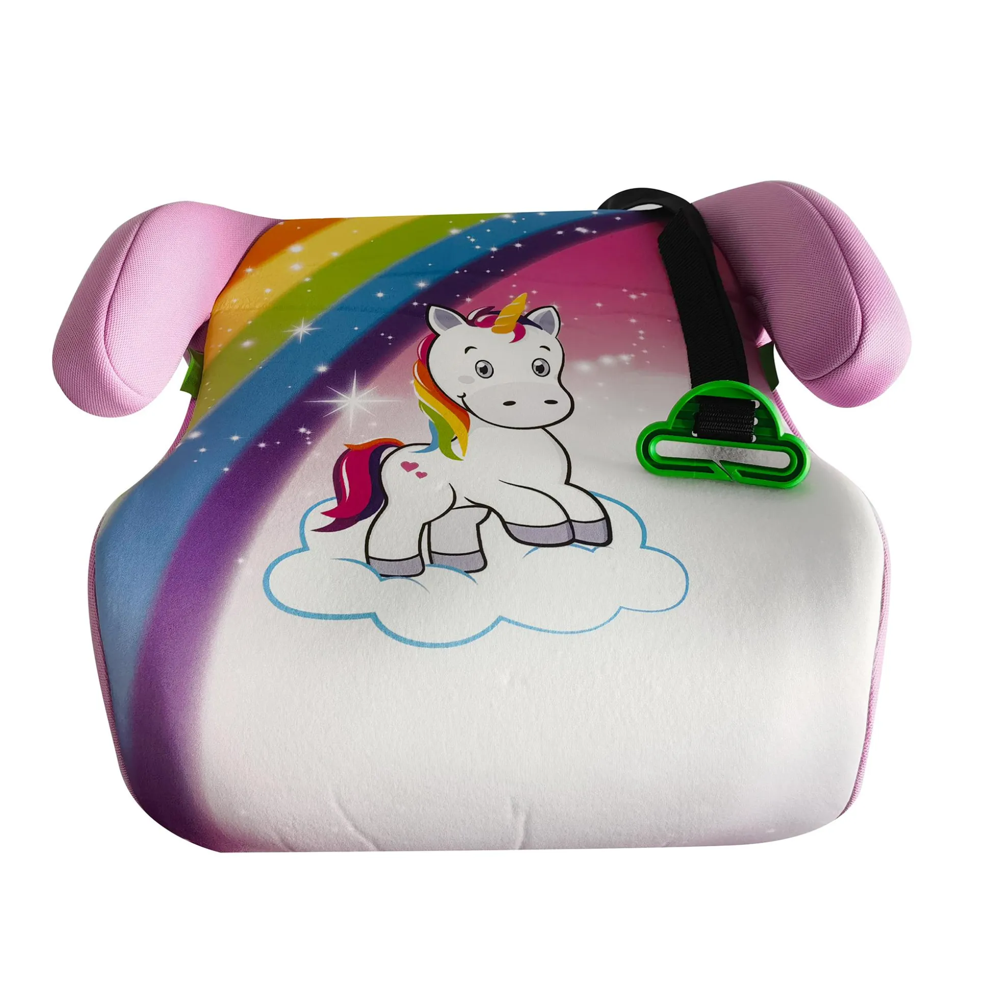 Die farbenfrohe Hits4Kids Kindersitzerhöhung im Design „Magisches Einhorn“ wird mit dem Standard-3-Punkt-Gurt im Auto schnell und einfach befestigt. Der Gurt läuft frei und ermöglicht deinem Kind jede Menge Bewegungskomfort. Die erhöhte Sitzposition deines Nachwuchses schützt gleichzeitig vor unangenehmem Reiben des Gurtes.