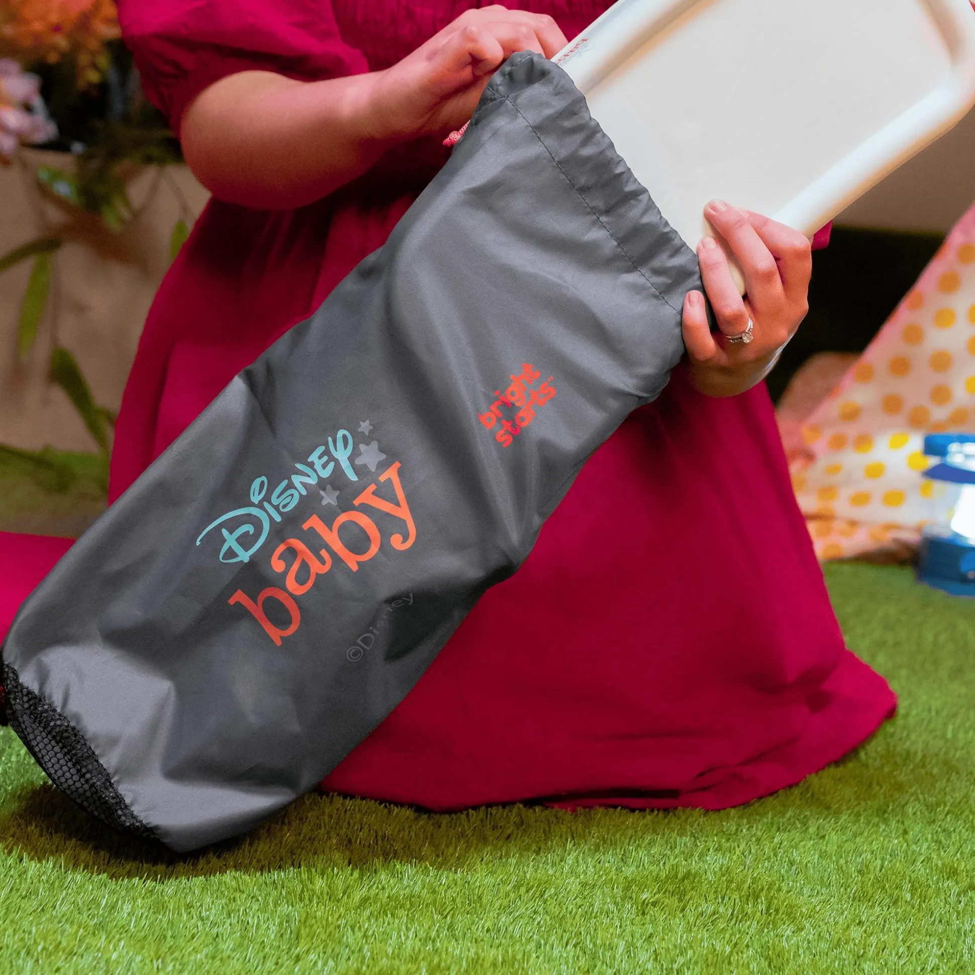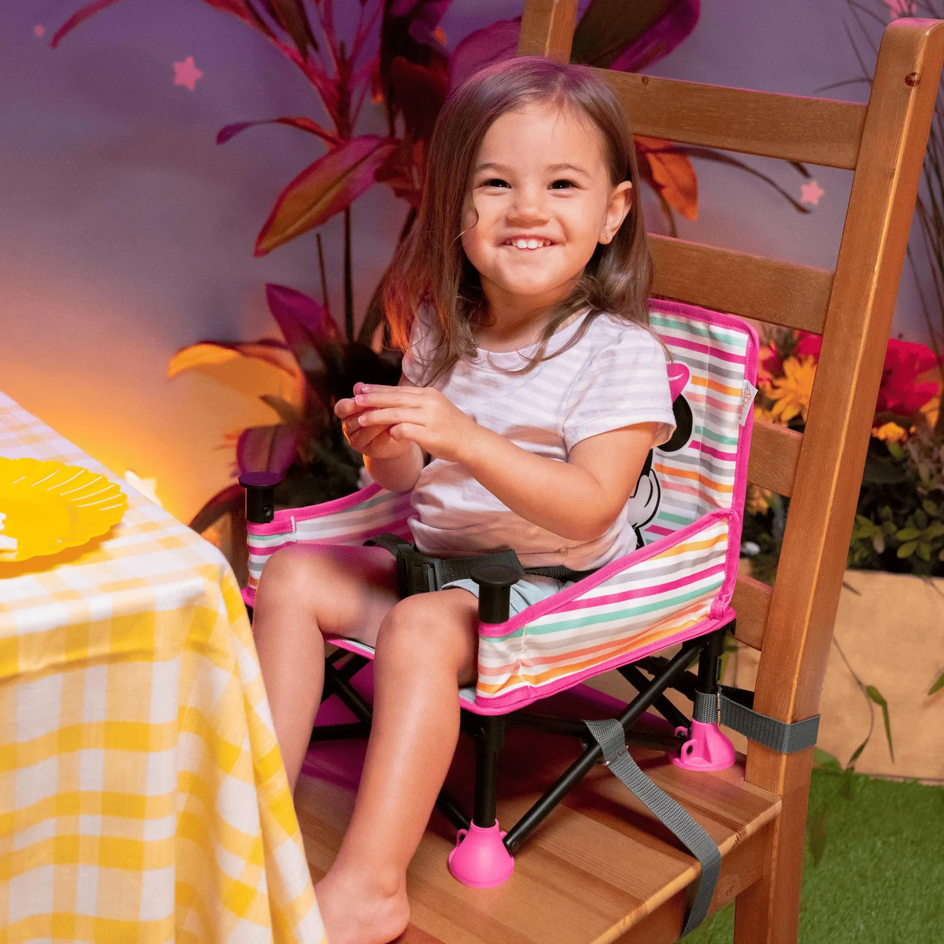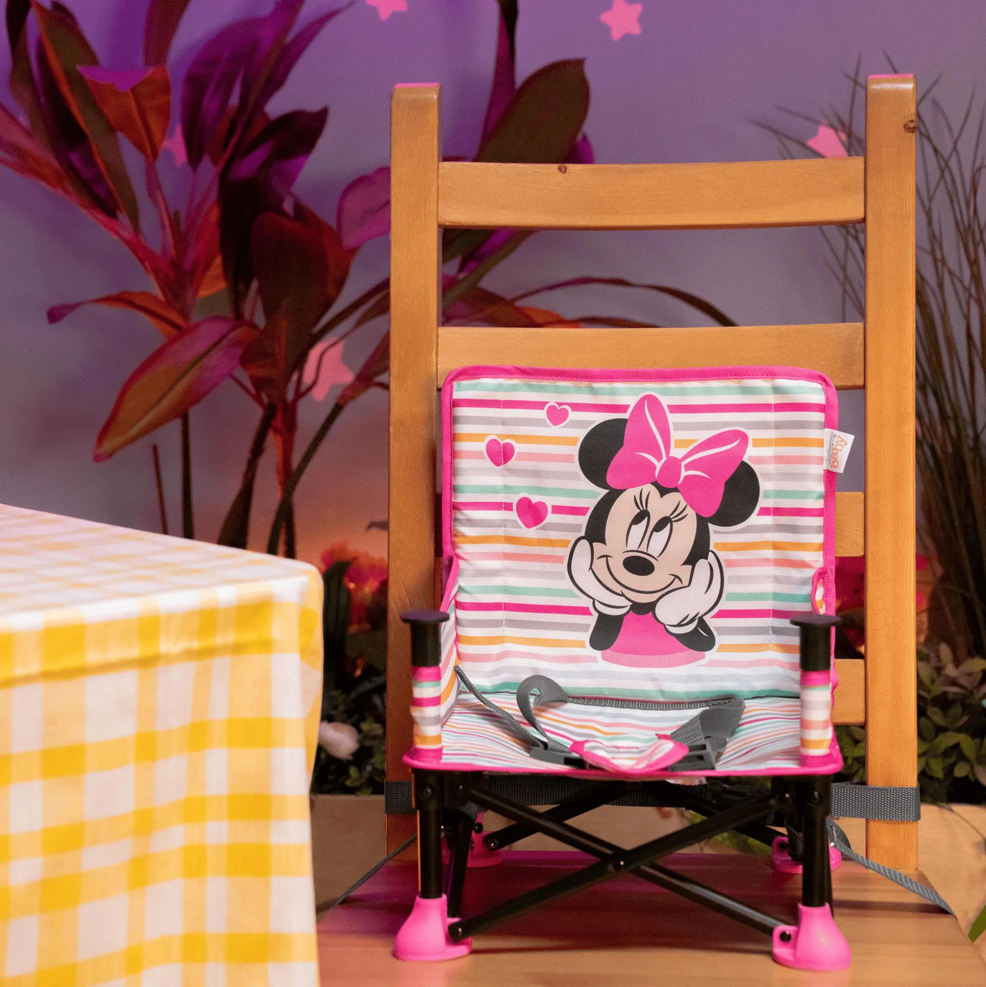 Als Booster-Sitz kann die Sitzerhöhung Minnie Mouse Pop ’n Sit direkt an den Tisch herangeschoben werden, sobald das Tablett entfernt wurde. Im Bodenmodus eignet sie sich ideal für spontane Sitzmöglichkeiten – sei es im Wohnzimmer, im Garten oder auf einem Spielplatz. Eine praktische Aufbewahrungstasche auf der Rückseite bietet Platz für wichtige Utensilien und dank des kompakten Faltmechanismus kann die Sitzerhöhung platzsparend verstaut und mühelos transportiert werden.