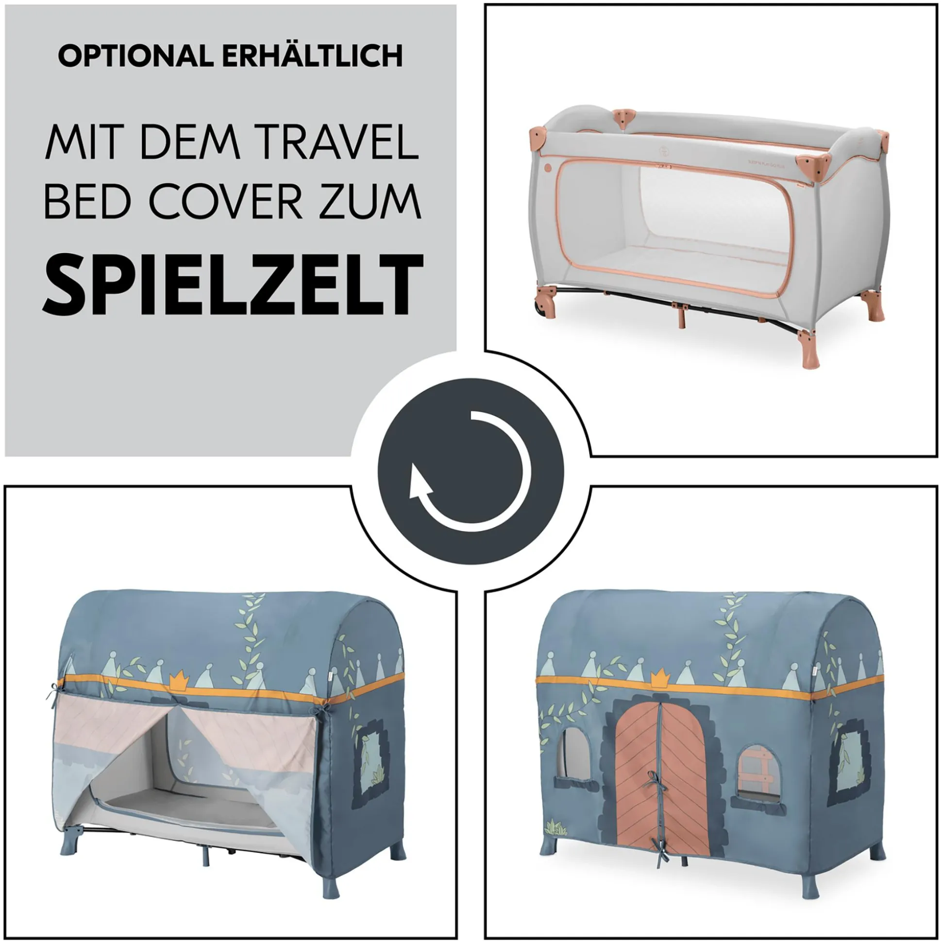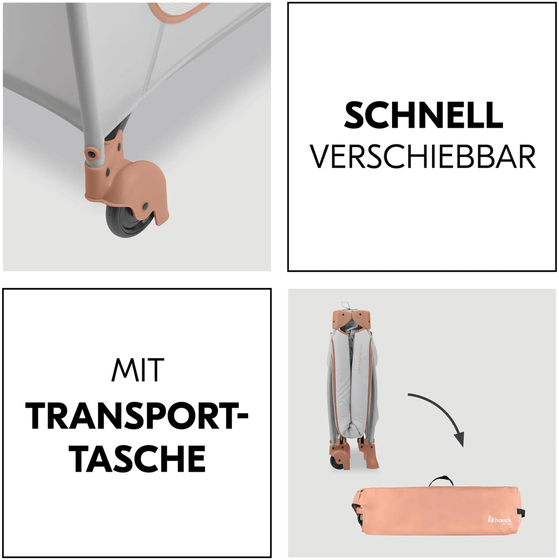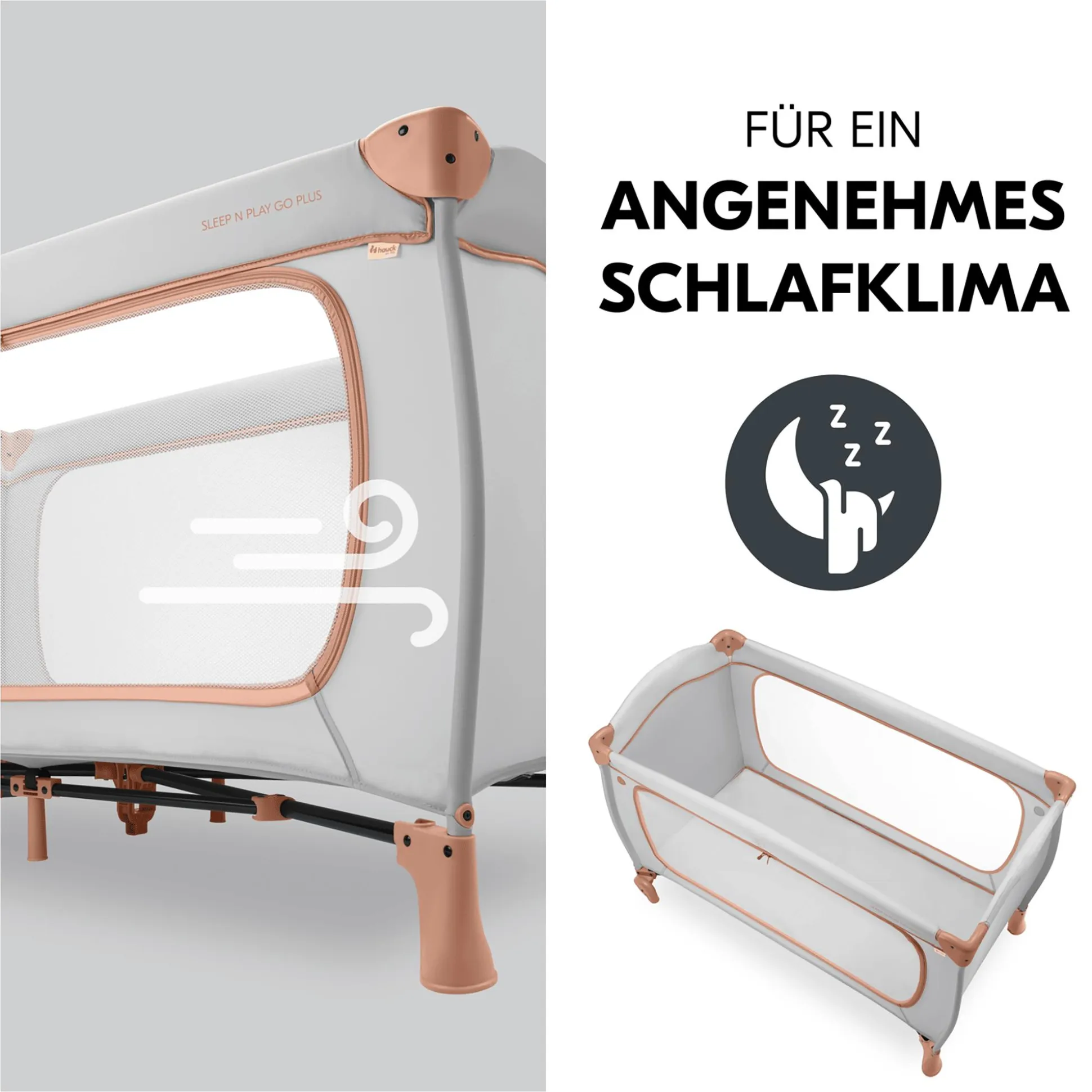 Passend zu dem Reisebett empfiehlt hauck die komfortable, separat erhältliche Zusatzmatratze Sleeper sowie das separat erhältliche Spannbettlaken Bed Me als praktische Ergänzung.