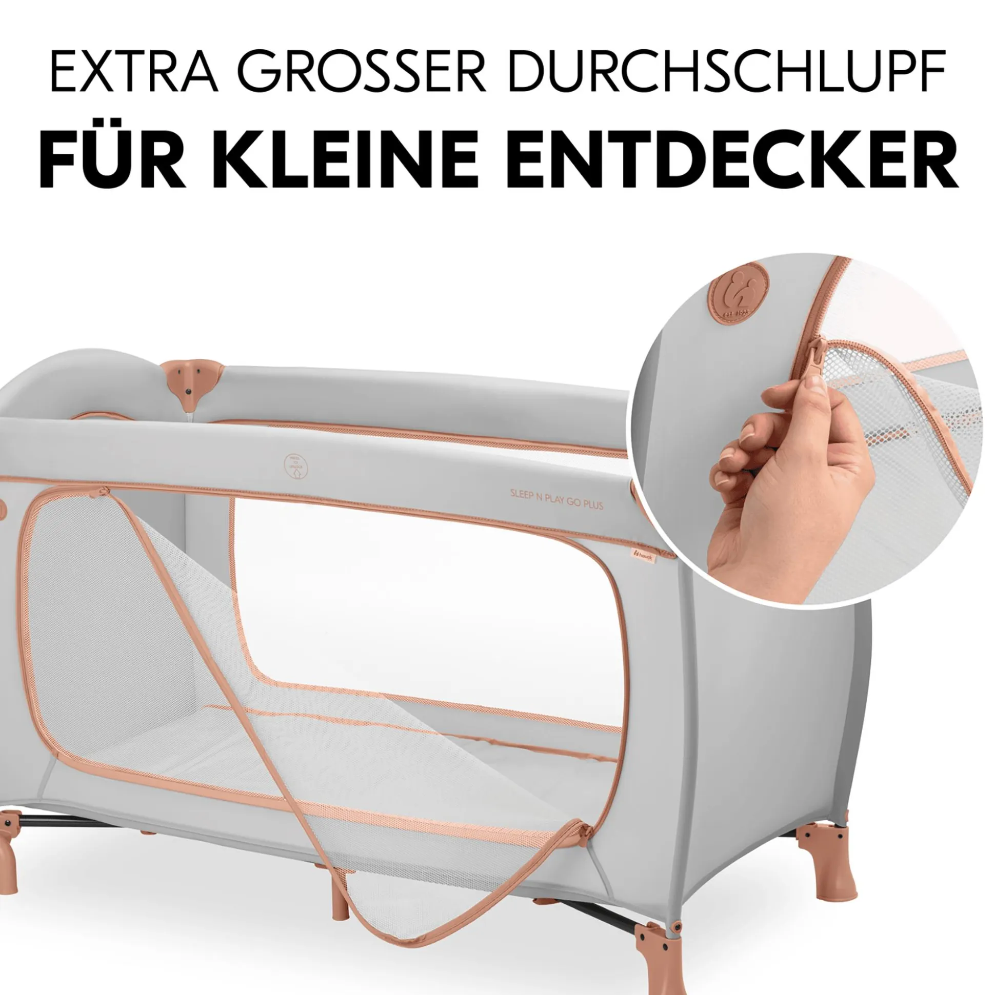 Im hauck Sleep N Play Go Plus Dusty Cork schläft dein kleiner Schatz auch unterwegs so geborgen wie daheim. Dieses Reisebett ist einfach ideal für den Urlaub oder den Besuch bei Oma und Opa. Daheim lässt sich das Kinderbett auch als praktisches Zweitbett oder Laufstall verwenden.