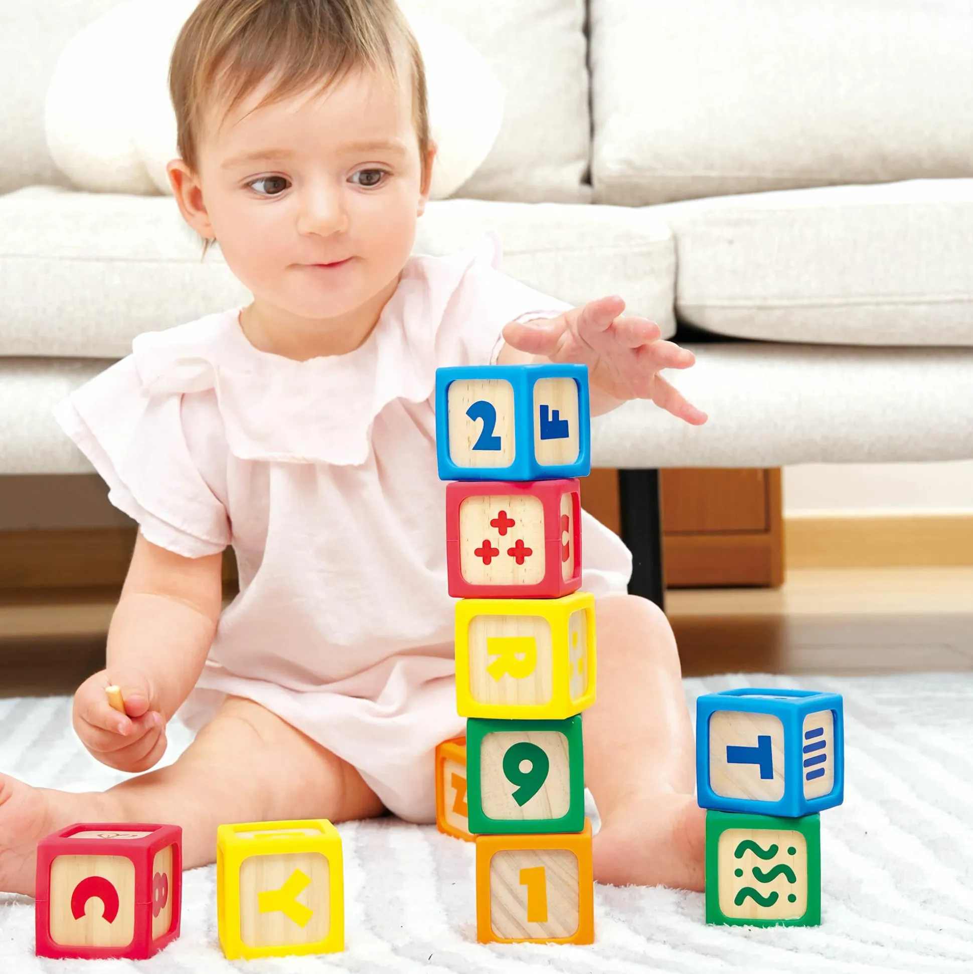 Mit den Smart Start ABC-Bausteinen von Hape erlebt dein Baby bunte Baufreude voller Entdeckungen und Lernspaß. Dieses mehrfarbige Bauklötzchen-Set ist speziell für kleine Entdecker ab ca. 6 Monaten geeignet und lädt zum Greifen und Tasten ein.