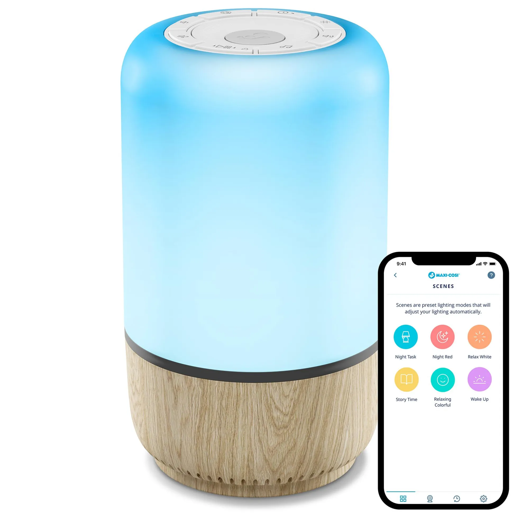 Lege individuelle Einschlafrituale mit beruhigendem Licht, tröstenden Klängen und entspannenden Schlafliedern für dein Baby fest. Wenn sich dein Baby vom Neugeborenen zum Kleinkind entwickelt, kannst du ihm mit individuell festgelegten „Zeit zum Aufstehen”-Einstellungen das Aufstehen beibringen. Du kannst die Musik, das Licht und die Farbhelligkeit über die App steuern, programmieren und einstellen und so deine eigenen sensorischen Schlafzimmerumgebungen erstellen.