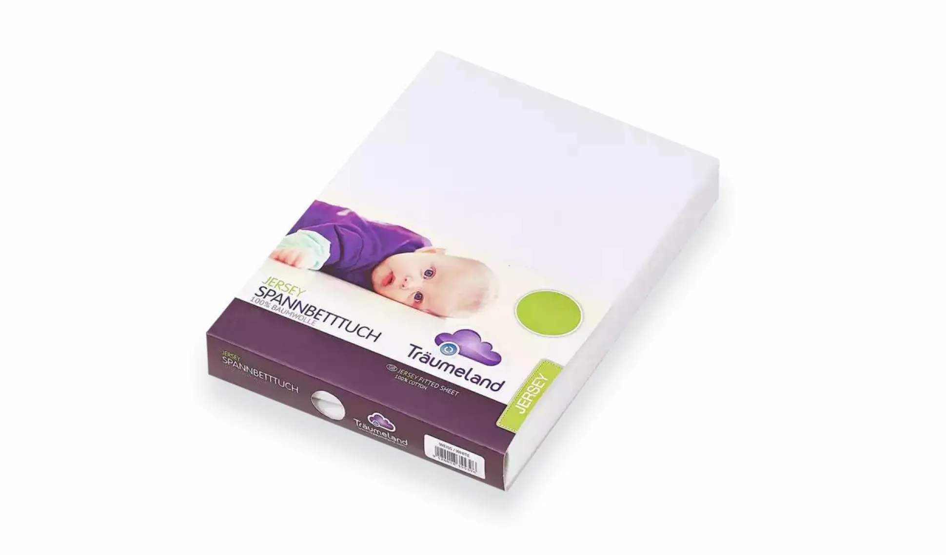 Dieses kuschelweiche Spannbettlaken Jersey in weiß von Träumeland besteht aus 100% Baumwolle und ist vollständig atmungsaktiv und hautsympathisch. Das Spannbetttuch passt perfekt für Matratzen mit den Maßen 35 x 78 cm. Außerdem verfügt das Spannbetttuch über hervorragende Spannkraft und gute Dehnbarkeit und ist deshalb schnell und einfach überzuziehen. Dabei ist es bügelfrei und sitzt durch die abgenähten Ecken und das Rundumgummi faltenfrei.