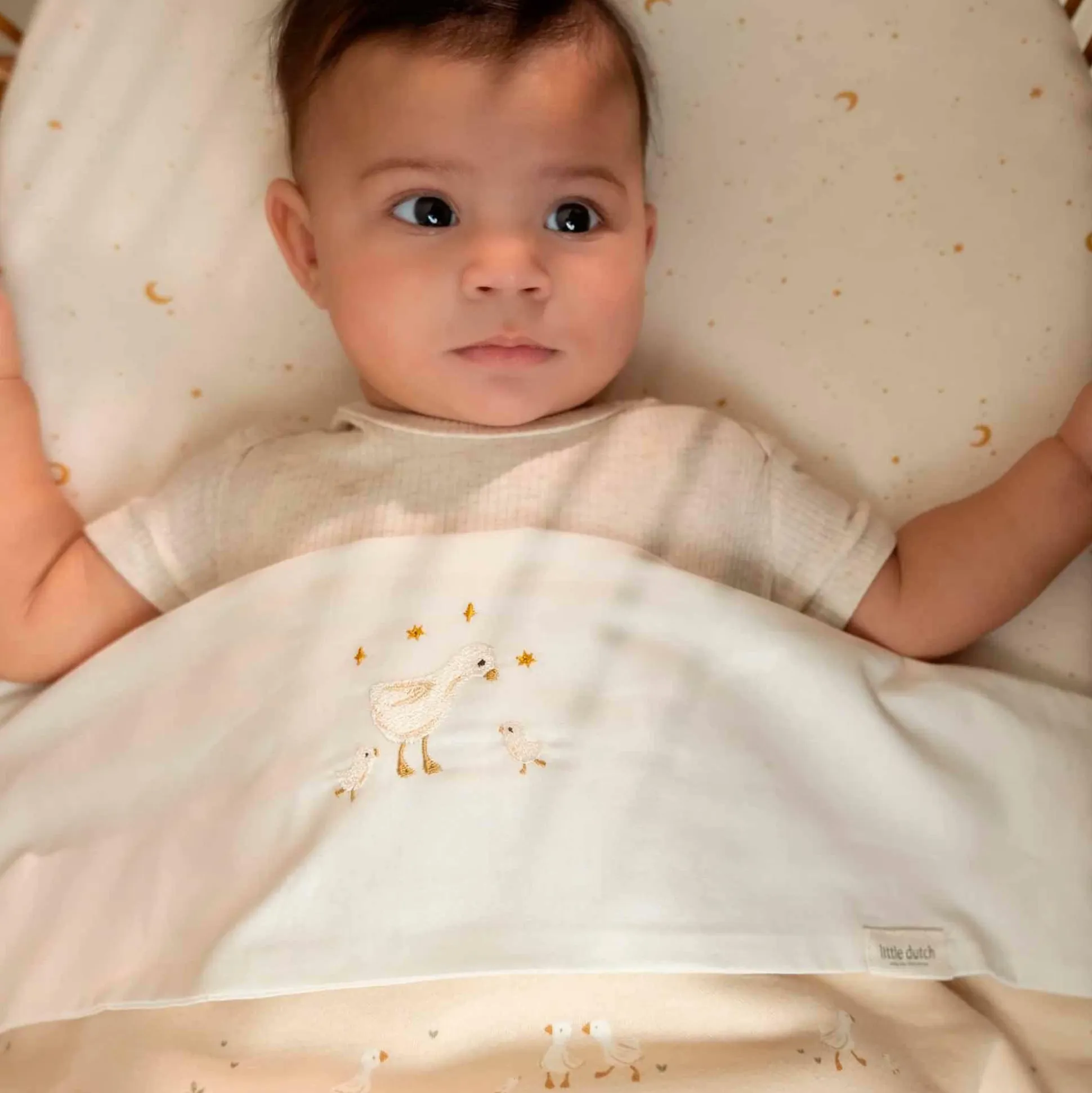 Dank des elastischen Rundumgummis passt sich das Spannbettlaken von LITTLE DUTCH perfekt an die Matratze an und bleibt sicher an seinem Platz – so kannst du dich entspannt zurücklehnen und musst dir keine Sorgen um verrutschende Bettwäsche machen. Das zeitlose Design mit Mond- und Sternmotiven verleiht dem Kinderzimmer eine liebevolle und verspielte Atmosphäre.