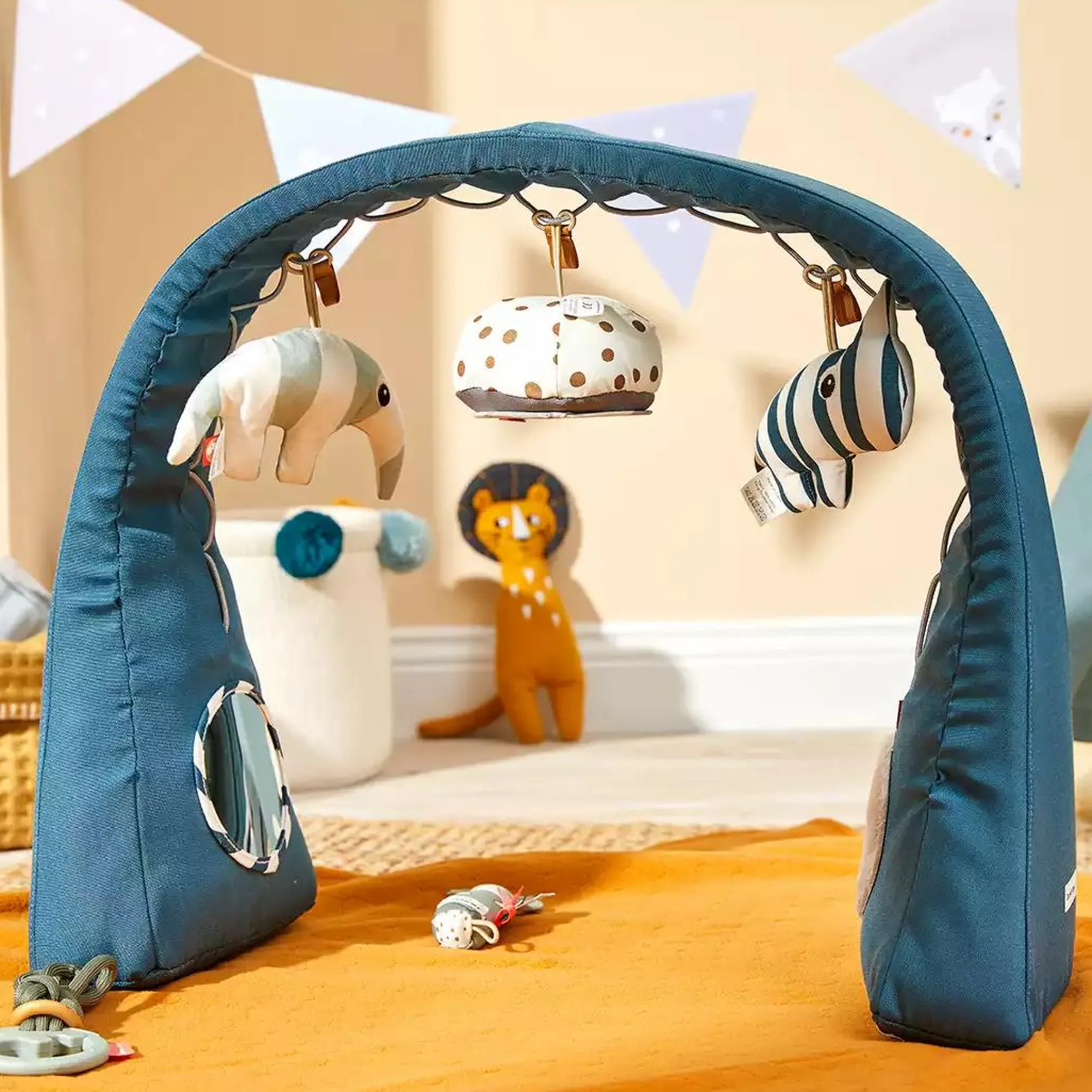 Der Done by Deer Spielbogen ist das perfekte Spielzeug auf der , im oder auf dem . Er lässt sich dank seiner mit Sand gefüllten Füße flexibel aufstellen und bietet dem Kind viele Entdeckungsmöglichkeiten. Die zwei tierischen Begleiter knistern und quietschen, die Spiegel bieten Spaß und regen zusätzlich die Sinne an.