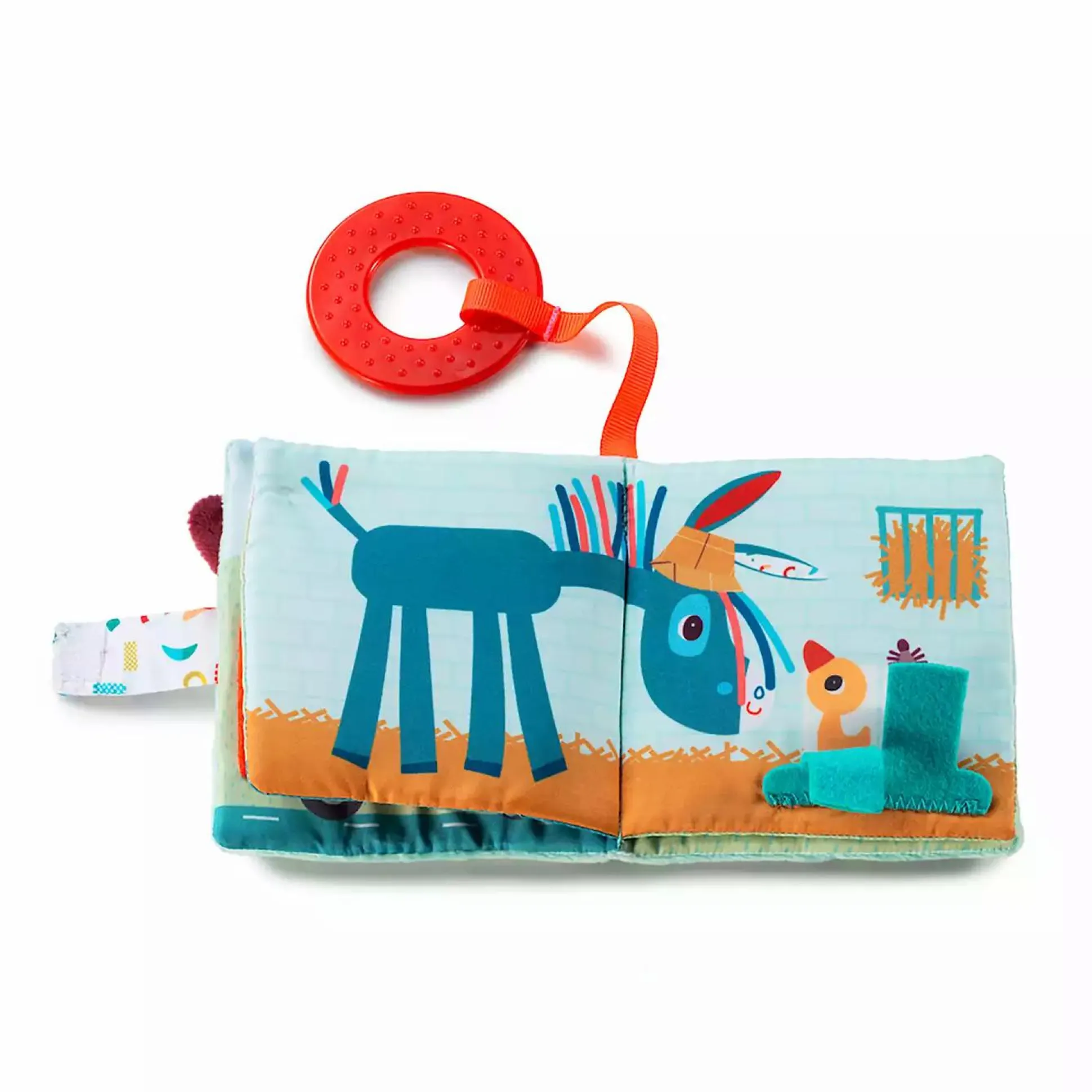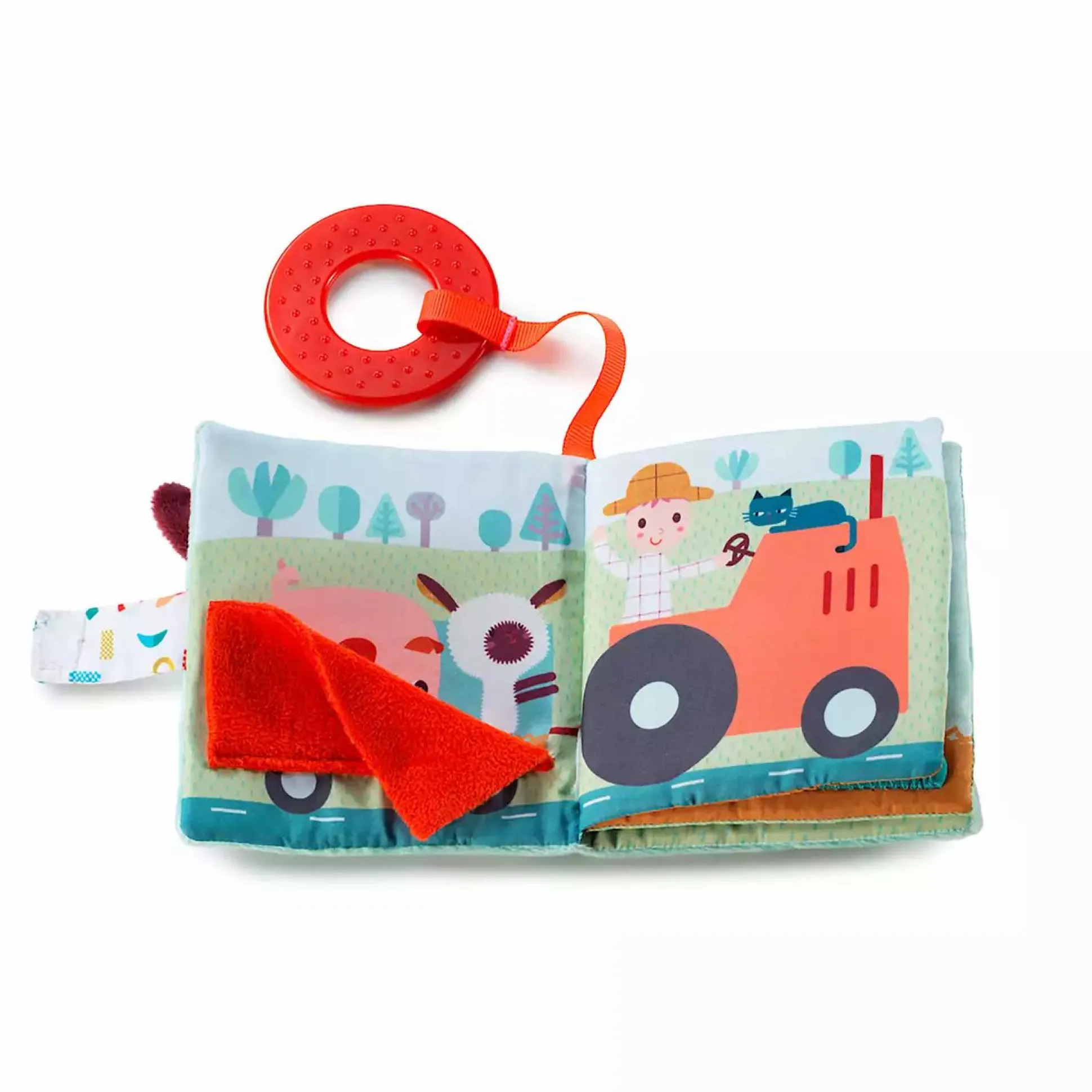 Ein Spielbuch von Lilliputiens besteht aus Stoff und zeigt verschiedene Tiere vom Bauernhof. Erzähle die Geschichte, während dein Kind die Geräusche und Texturen entdeckt und seiner Fantasie freien Lauf lässt.