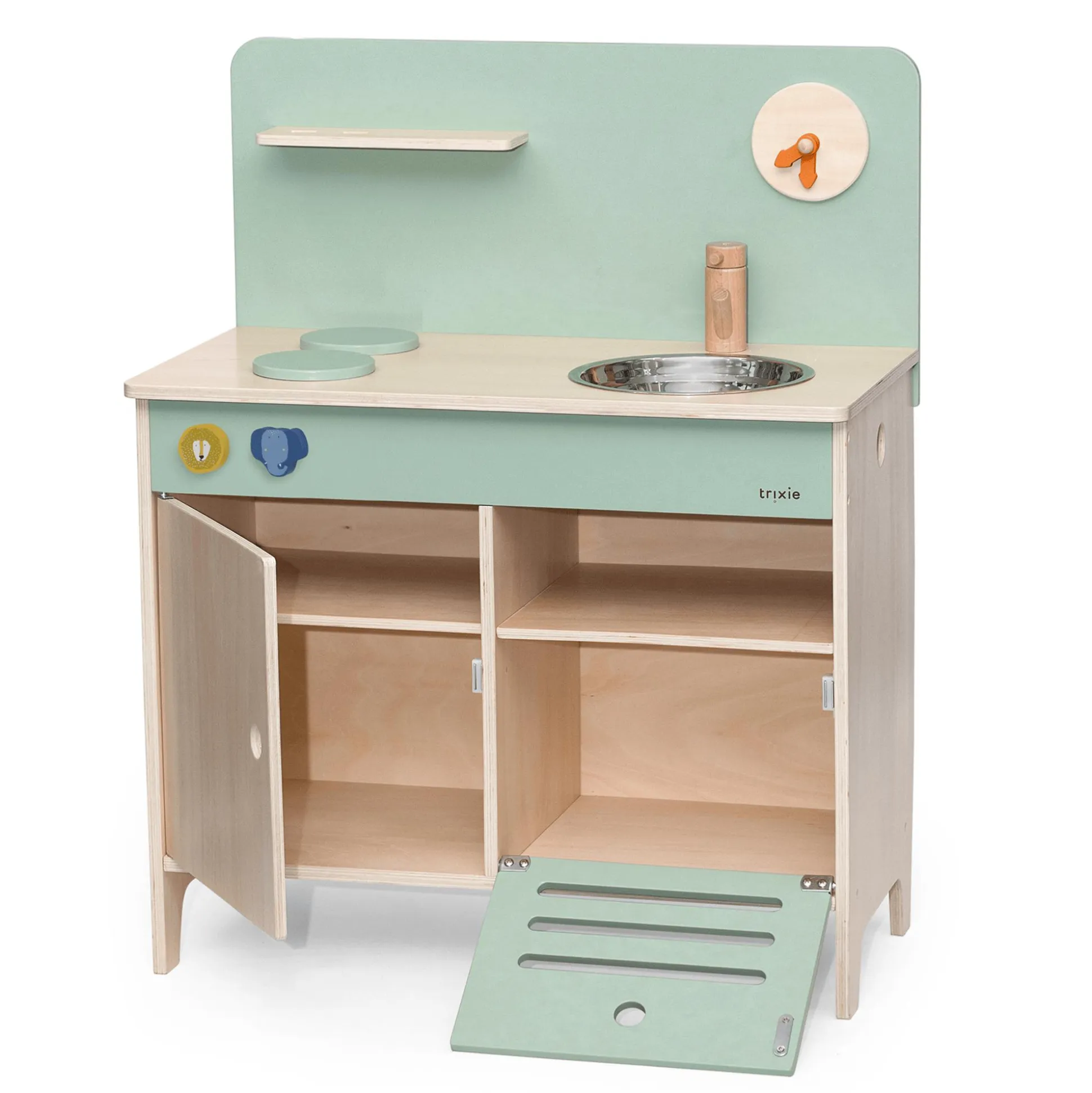 Schon seit vielen Generationen gehört hochwertiges – wie Schaukelpferd, Kaufladen & Co. – zur obligatorischen Grundausstattung in jedem Kinderzimmer. Besonders wichtig ist die Spielküche, weil das Thema Ernährung essenziell und heute aktueller denn je ist. Ob für Mädchen oder Jungen: Diese Trixie aus 100 % FSC-zertifiziertem Holz vereint den nostalgischen Charme einer traditionellen Holzküche mit den modernen Möglichkeiten einer zeitgemäßen Designküche und ist ein sinnvolles Geschenk für alle Kinder ab drei Jahre.