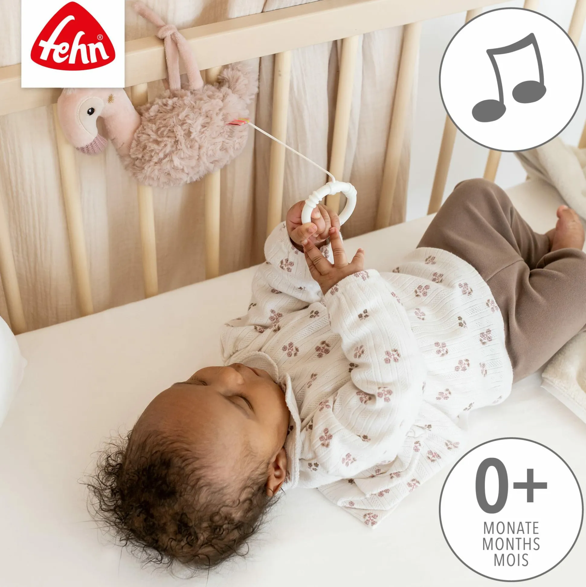 Die Spieluhr Flamingo von fehn verzaubert mit ihrem zarten Rosa-Ton und begleitet dein Baby von Geburt an mit sanften Klängen. Die beruhigende Melodie von Mozarts Wiegenlied schafft eine friedliche Atmosphäre, die deinem kleinen Schatz beim Einschlafen hilft und für entspannte Momente sorgt.