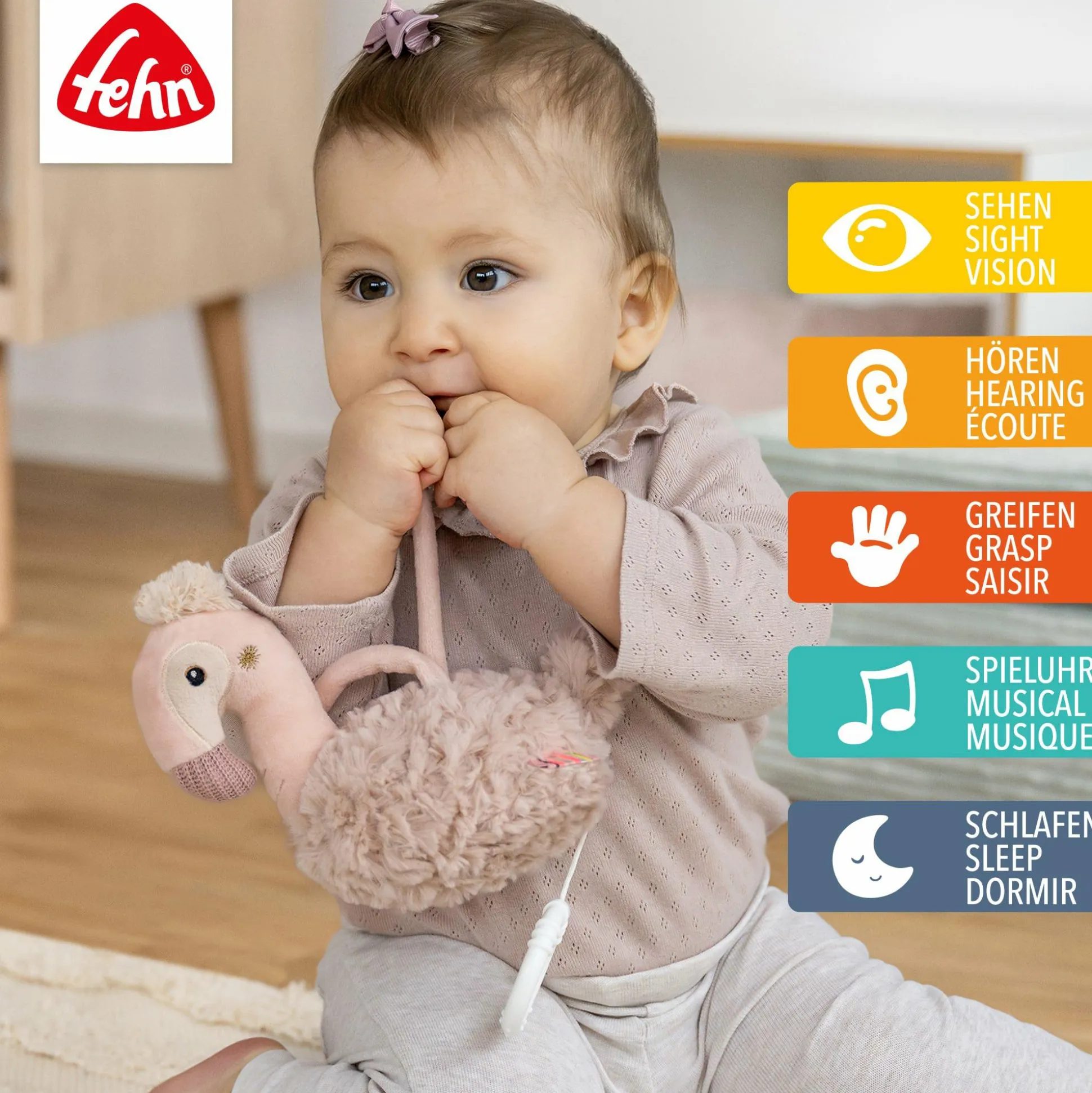 Mit der Spieluhr Flamingo wird das Lauschen spielerisch gefördert – eine wichtige Fähigkeit, die die Sinne deines Babys anregt und die Konzentration unterstützt. Das liebevoll gestaltete Design bringt nicht nur Freude ins Kinderzimmer, sondern wird schnell zum treuen Begleiter beim Einschlafritual.