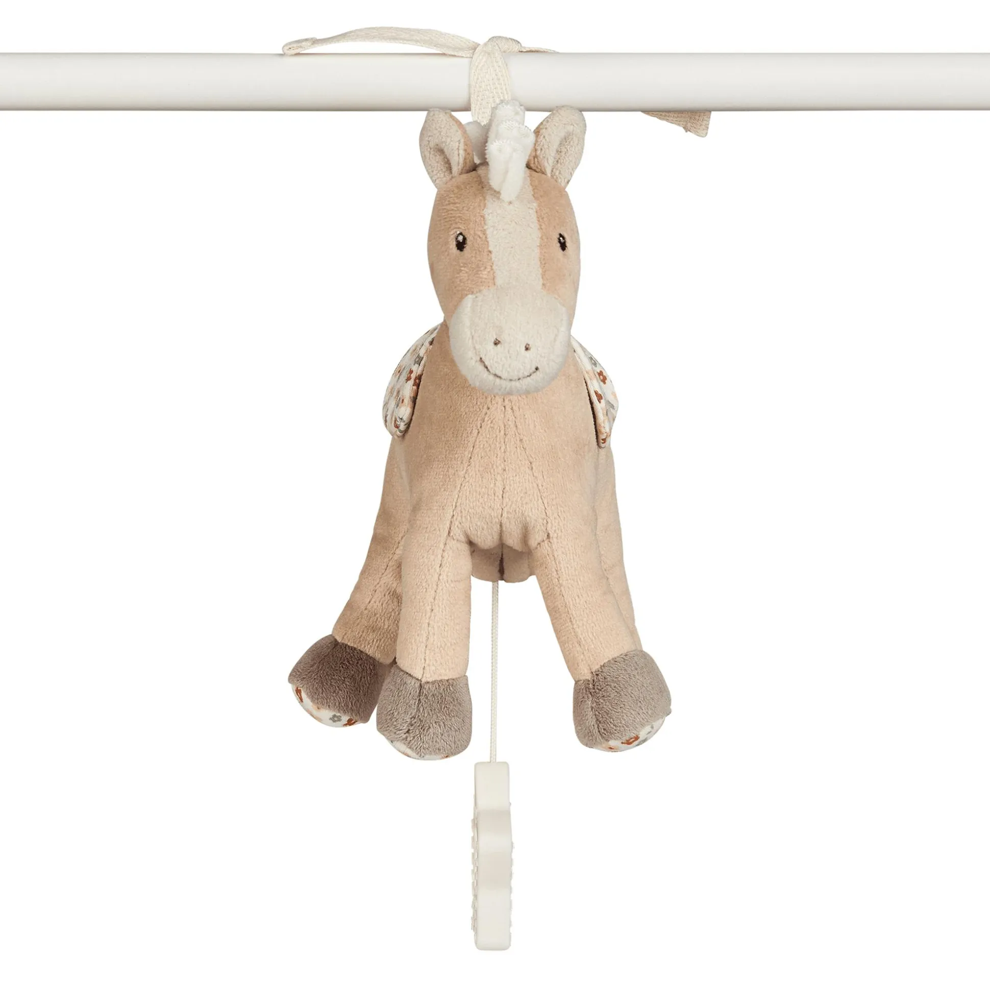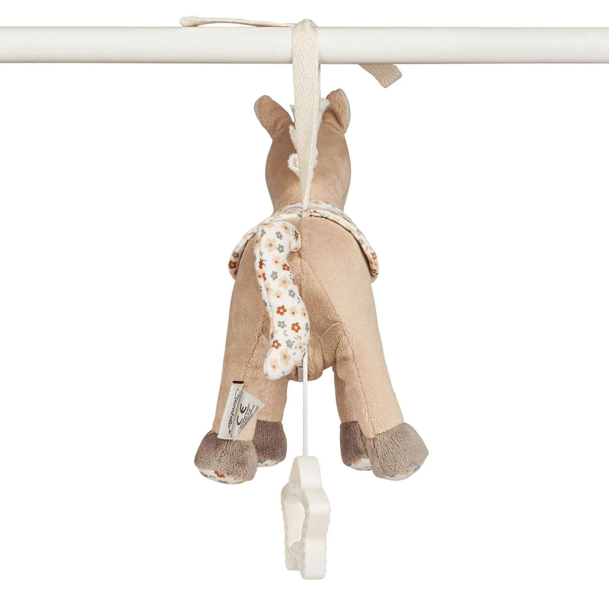 Mithilfe einer Spieluhr summt das kuschelige Pferd Sunny von Sterntaler dein Kind leise in den Schlaf. Ziehe einfach an der Schnur und schon erklingt eine beruhigende Melodie, die dein Baby sanft in den Schlaf wiegt. Dank der praktischen Schlaufe lässt sich die Spieluhr ganz leicht am Bettchen, am Kinderwagen oder am Autositz befestigen – so ist Sunny immer dabei.