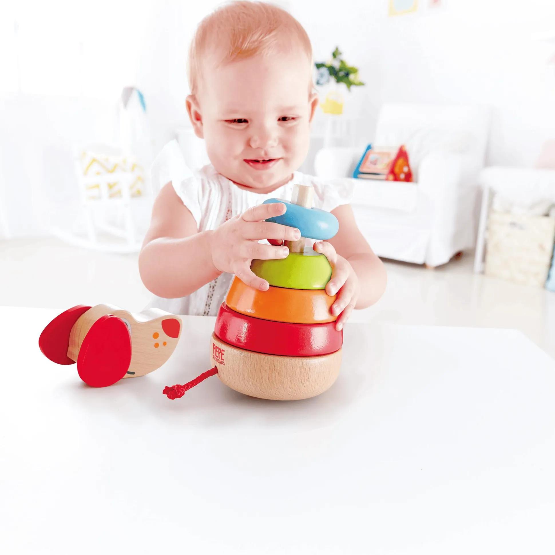 Das niedliche Hündchen bringt zusätzlichen Spaß, indem es freudig bellt, wenn der Kopf liebevoll getätschelt wird. Mit insgesamt sechs Teilen unterstützt Pepe nicht nur die individuelle Entwicklung, sondern fördert auch das gemeinschaftliche Spiel – ein perfekter Begleiter für kleine Abenteurer ab ca. einem Jahr.