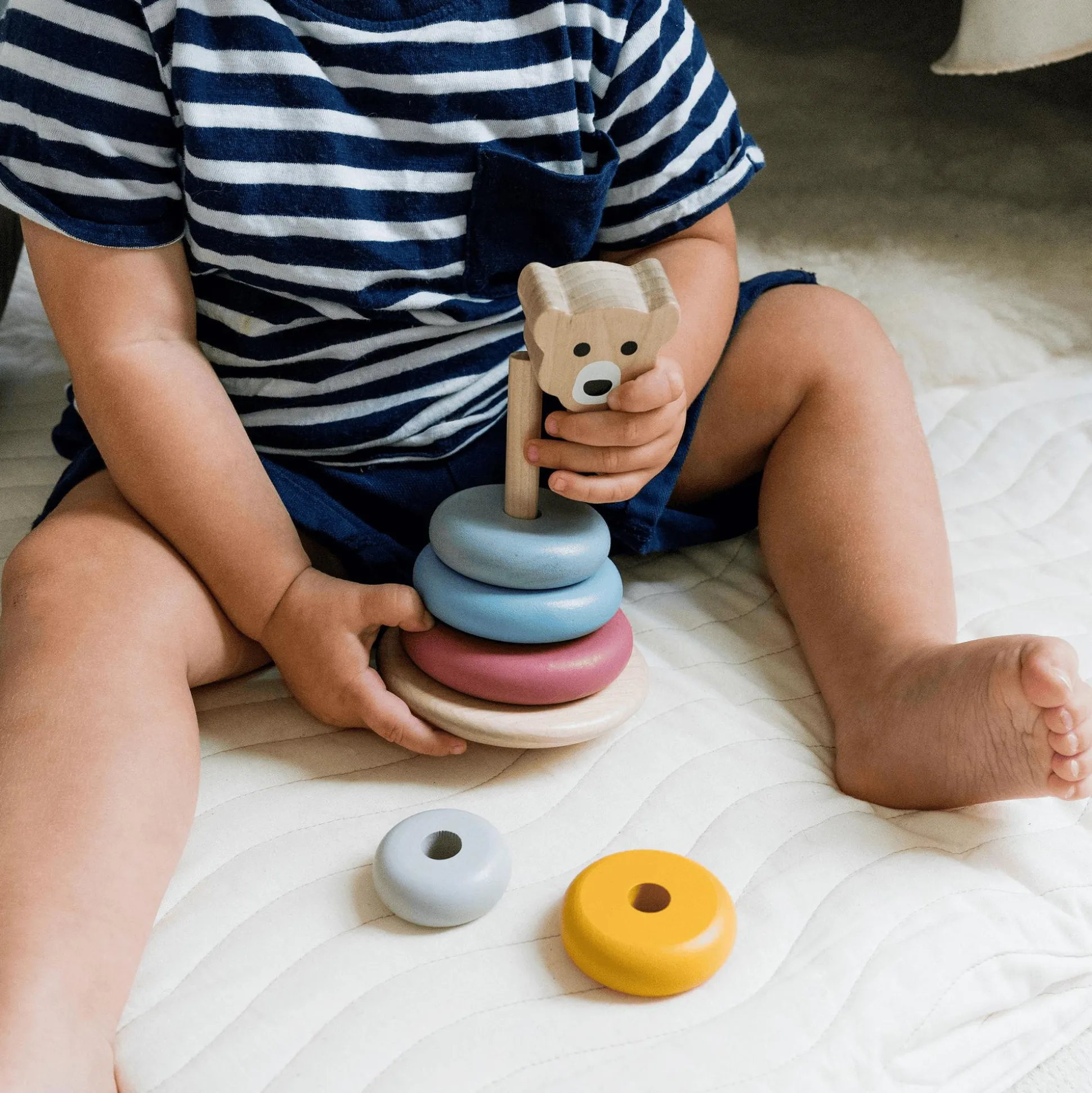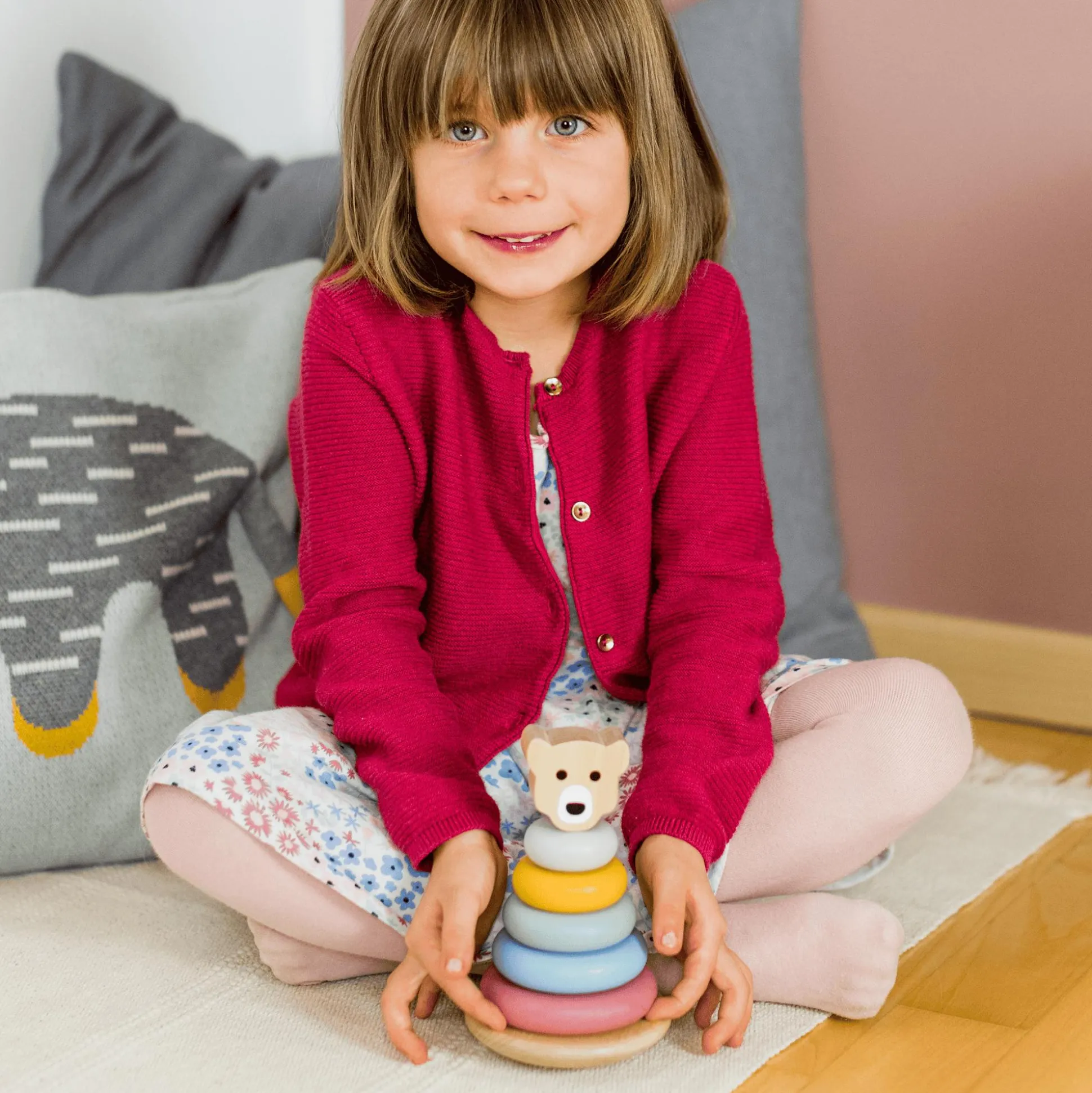 Der Stapelturm Bär von Kindsgut bietet tierischen Spielspaß für dein Kind. Ein Stapelturm gehört zu den absoluten Klassikern, die in jedes Kinderzimmer gehören. Das pädagogische Lernspielzeug fördert die Feinmotorik und lässt sich vielseitig nutzen.Die kindgerecht gestalteten Holzringe in dezenten Farben lassen sich leicht greifen und stapeln, sortieren oder kreativ in andere Spielsituationen integrieren. Das natürliche, leichte Holz fühlt sich dabei schön in den Händen deines Kindes an.