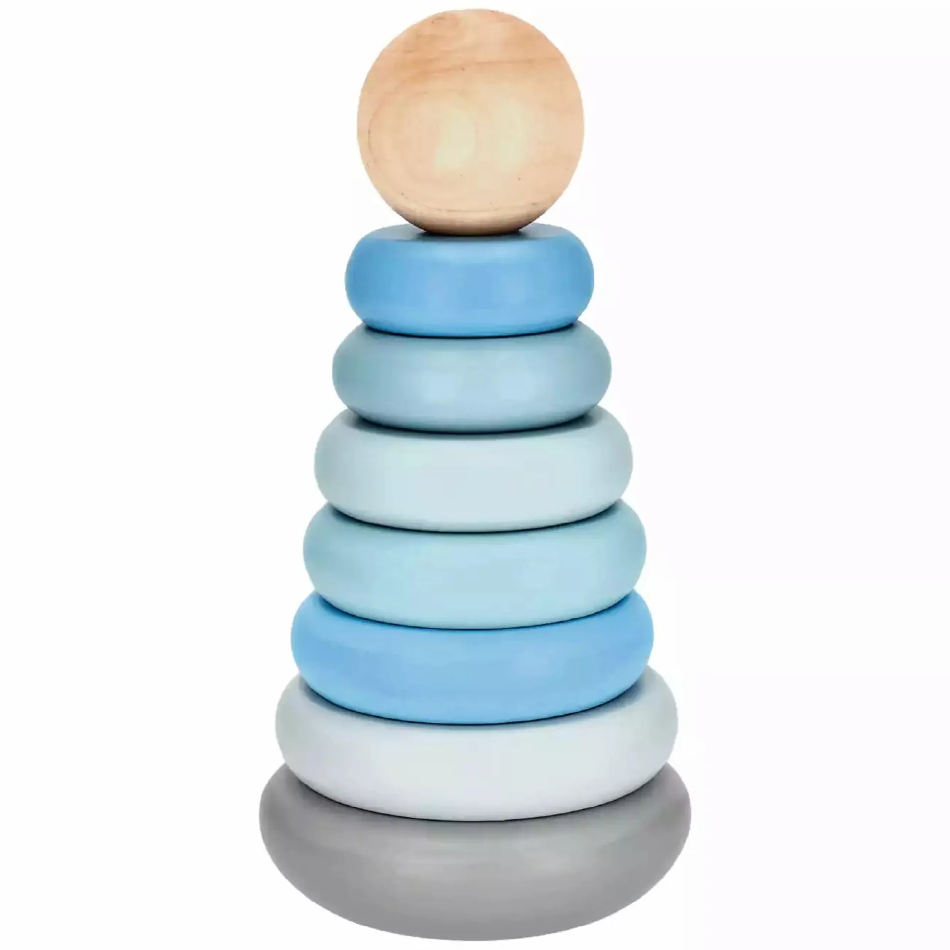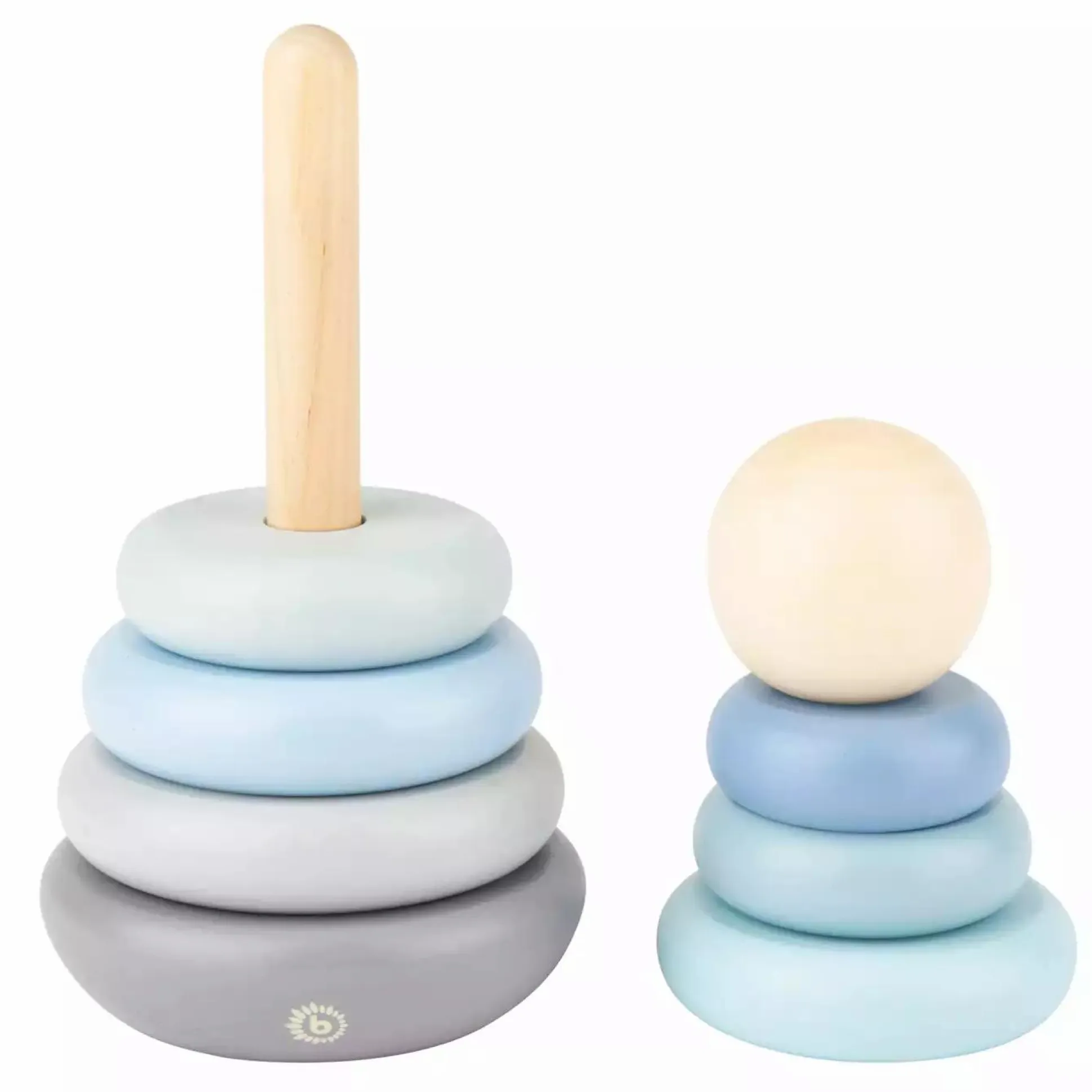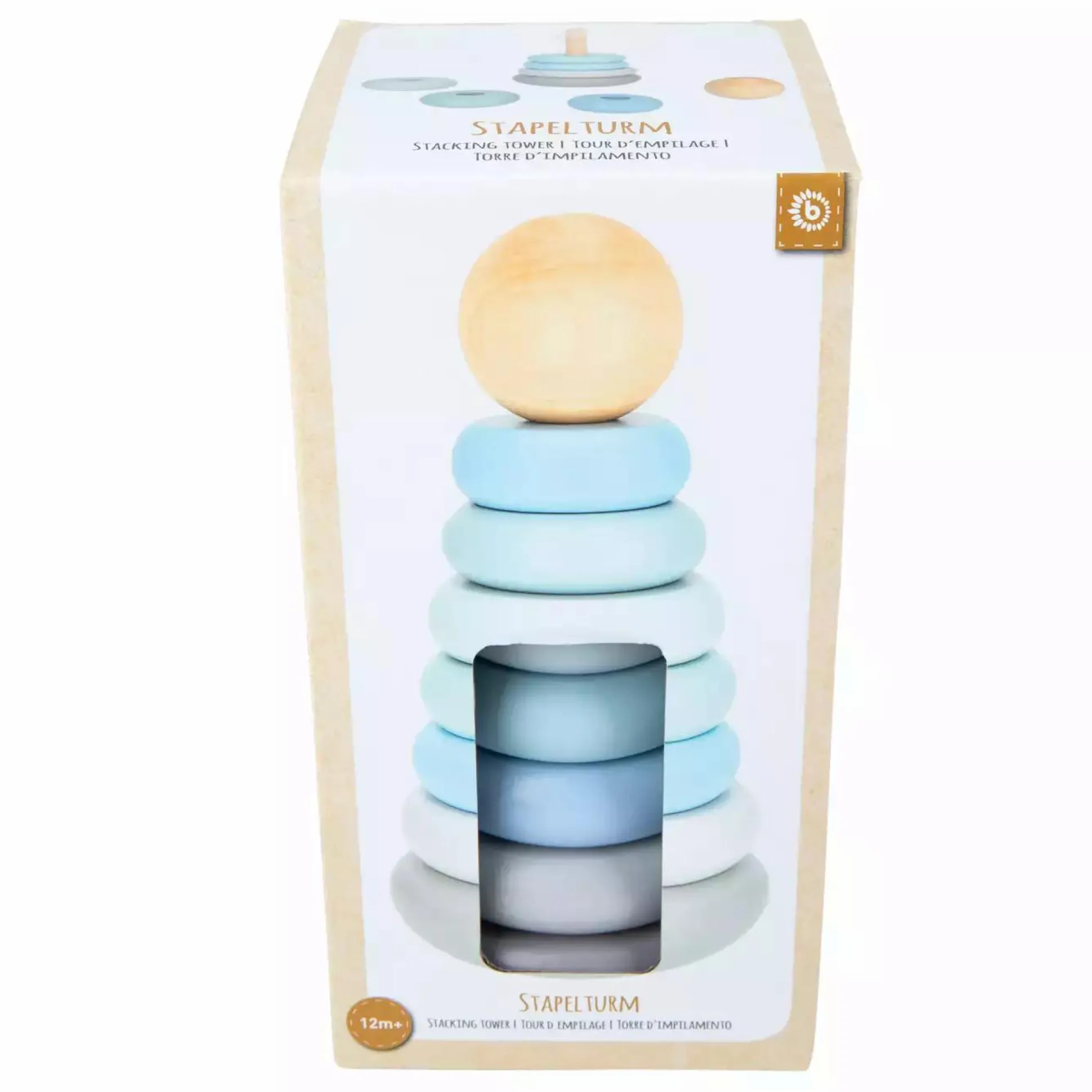 Der Bieco Stapelturm verbindet kindliches Design und tolle Farben im Scandi-Chic mit hochwertiger Holzqualität und ist für Kinder ab ca. 12 Monaten geeignet. Beim Spielen mit dem Stapelturm werden Geschicklichkeit und Feinmotorik deines Kindes gefördert. Das hochwertig verarbeitete Holz fühlt sich in den Händen deines kleinen Schatzes besonders schön an. Die Durchmesser der 8 Bauklötze Holz reichen von ca. 5 cm beim kleinsten bis zu ca. 8,5 cm beim größten Holzring und lassen der Größe nach sortieren. Abschließend kann die Holzkugel auf die Spitze vom Sortierspiel gesteckt werden. Die zentrale Holzstange ist fest mit dem Basiselement verschraubt, dies sorgt für Standsicherheit.