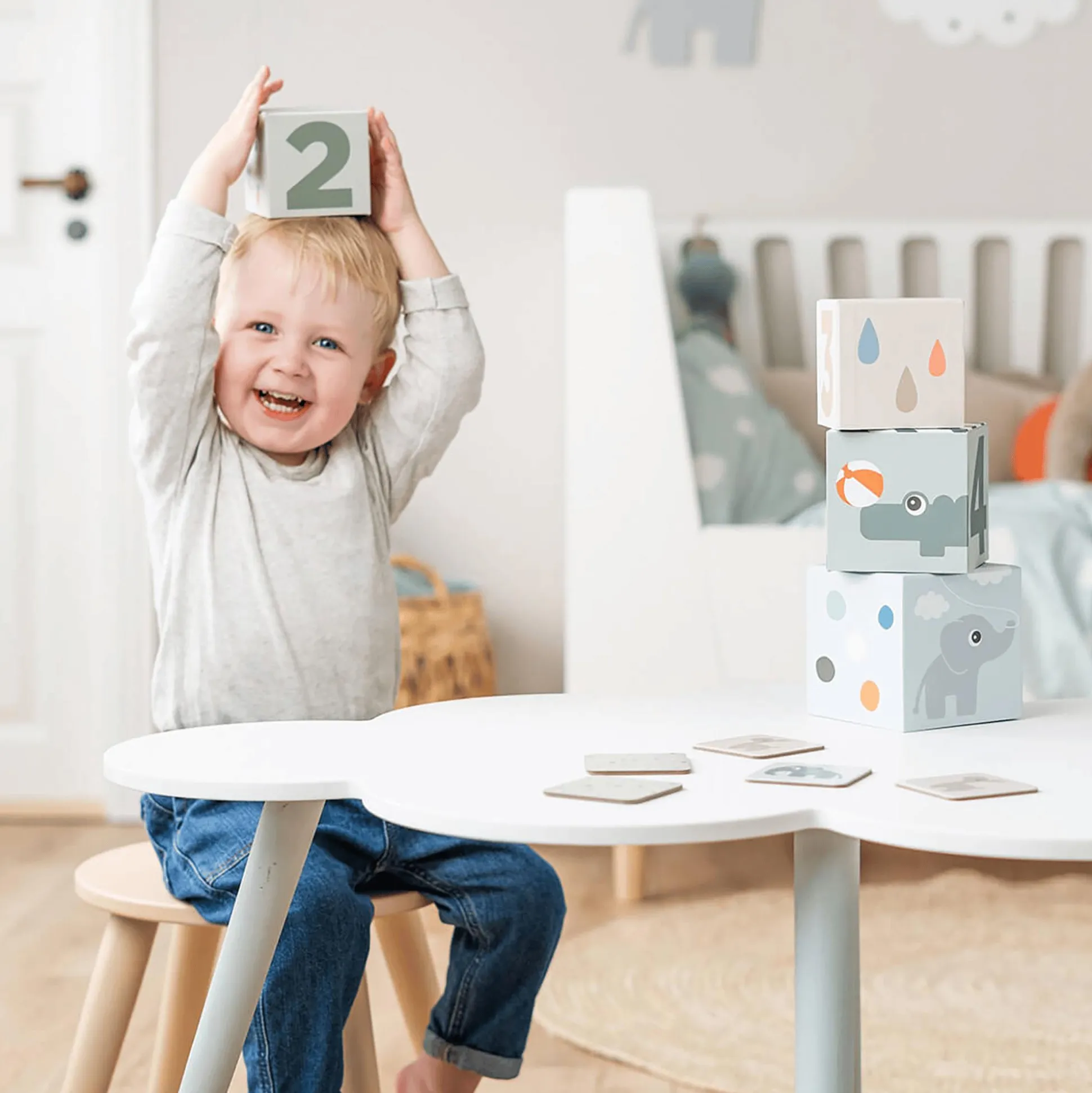 Die Stapelwürfel Deer Friends von done by deer bieten deinem kleinen Schatz endlose Spielmöglichkeiten. Die fünf Würfel in verschiedenen Größen von etwa 7 x 7 cm bis 13 x 13 cm in sanften Farben laden zum fröhlichen Stapeln, Umwerfen und Verstecken kleiner Schätze ein. Mit den liebevoll gestalteten Deer Friends lernt dein Kind spielerisch die Zahlen und die freundlichen Tiere kennenlernen. Diese Stapelwürfel fördern nicht nur die motorischen Fähigkeiten, sondern auch die Fantasie und die Freude am Entdecken.