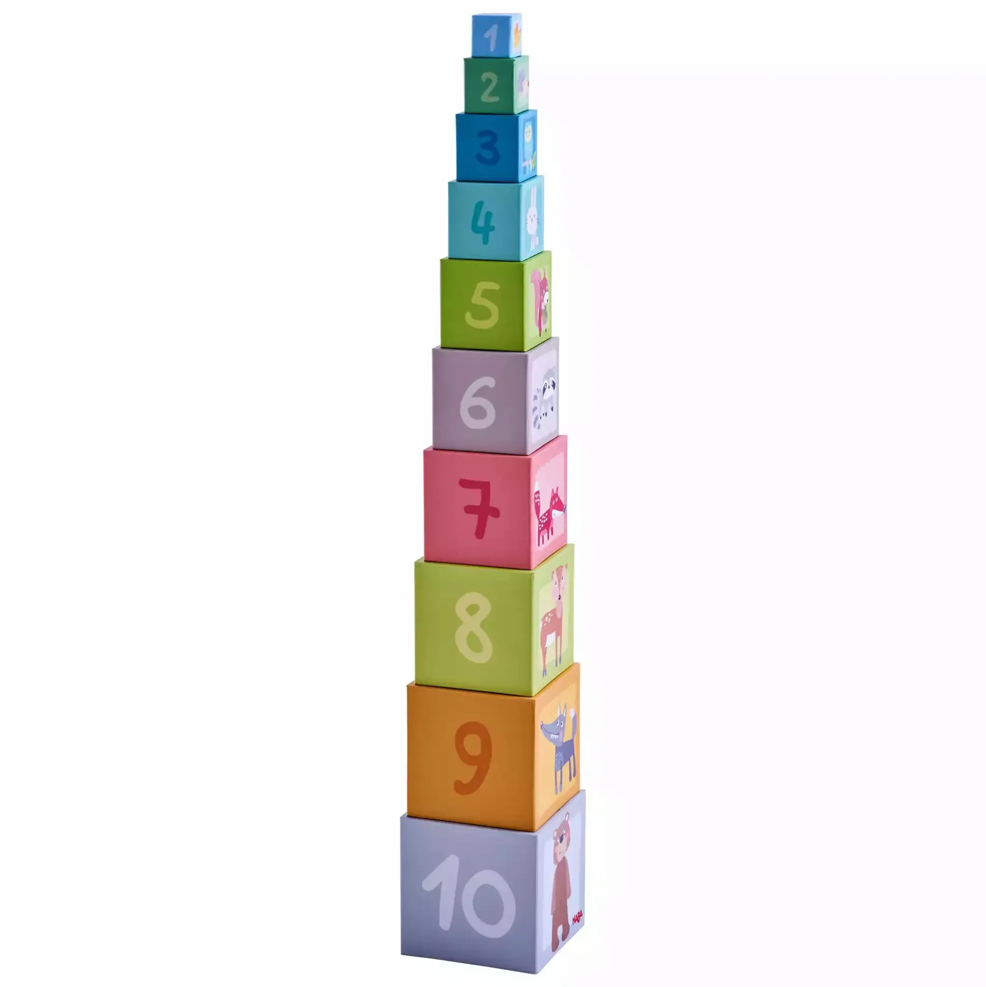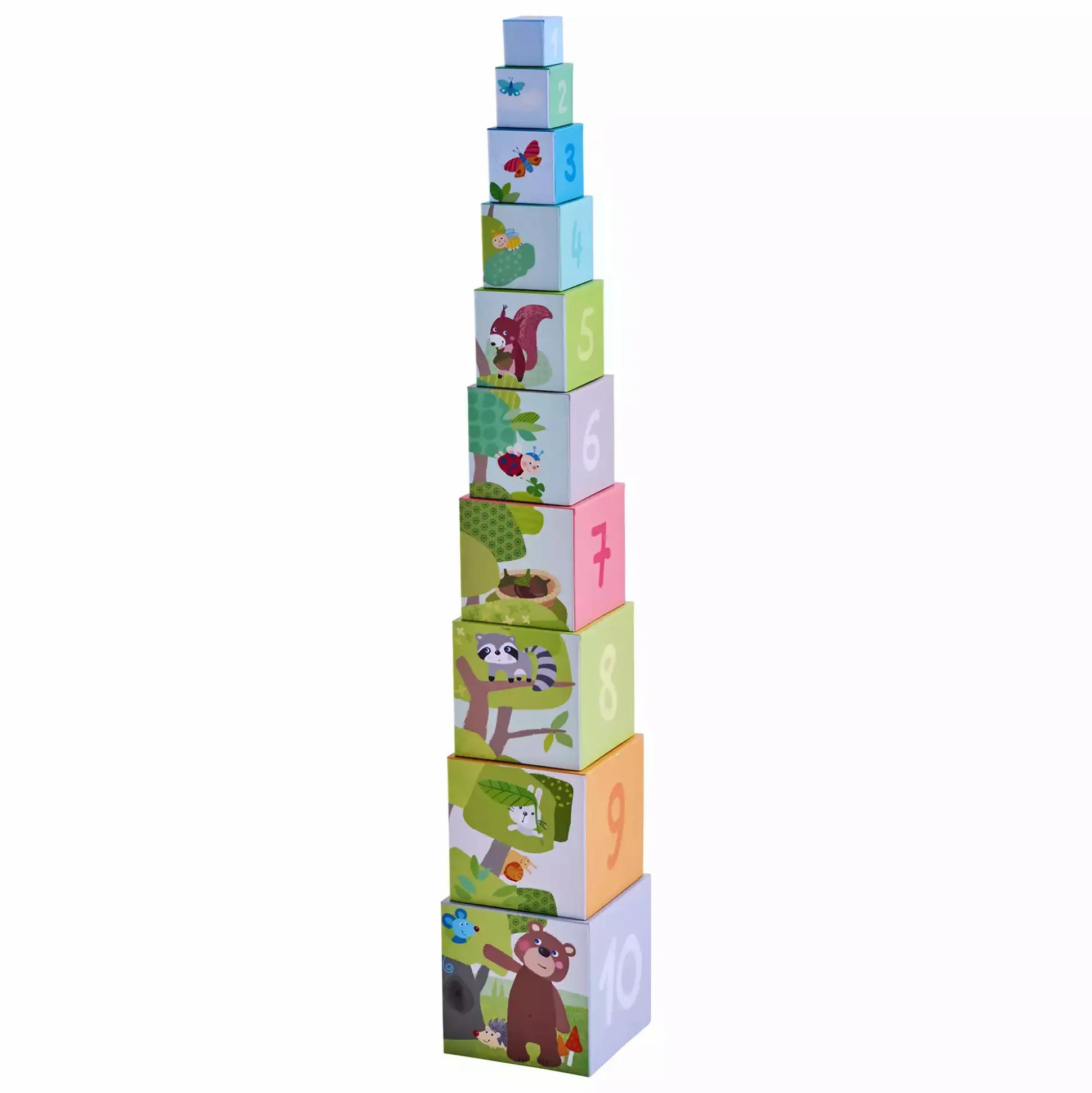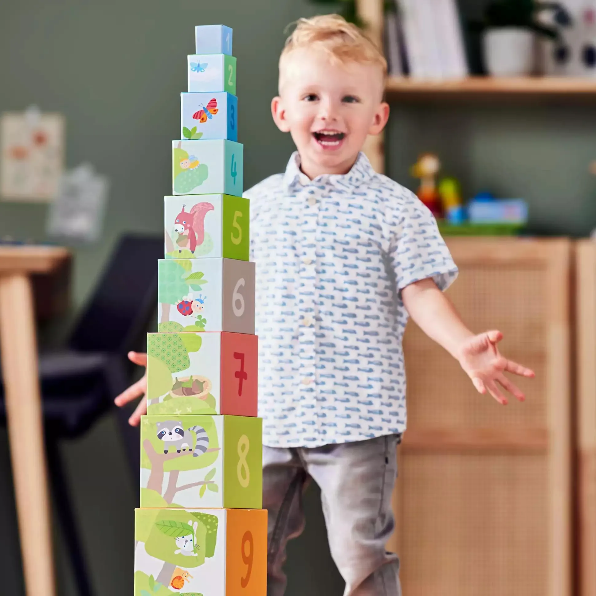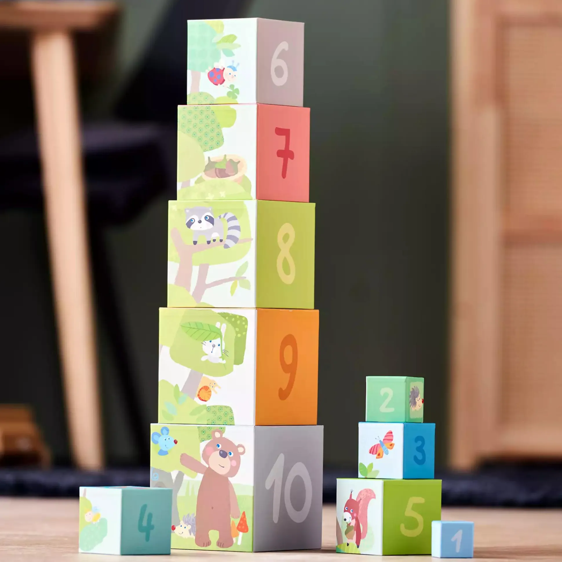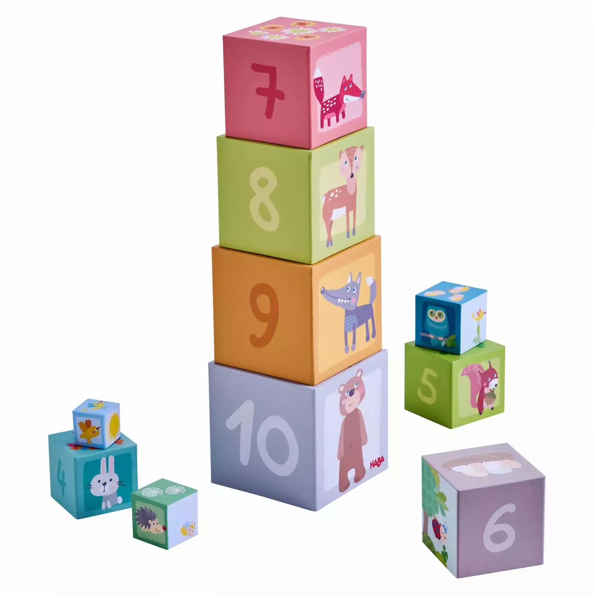 Mit den abwechslungsreichen Stapelwürfeln Waldfreunde von HABA übt dein Kind das Ordnen nach Größe und lernt die Zahlen von 1 bis 10 kennen. Jeder der Stapelwürfel aus Pappe zeigt ein anderes niedliches Tier, eine andere Farbe und eine Zahl. Beim Bauen wächst an einer Seite des Stapelturms ein prächtiger Baum in die Höhe. Dort gibt es noch mehr Wald-Tiere zu entdecken.