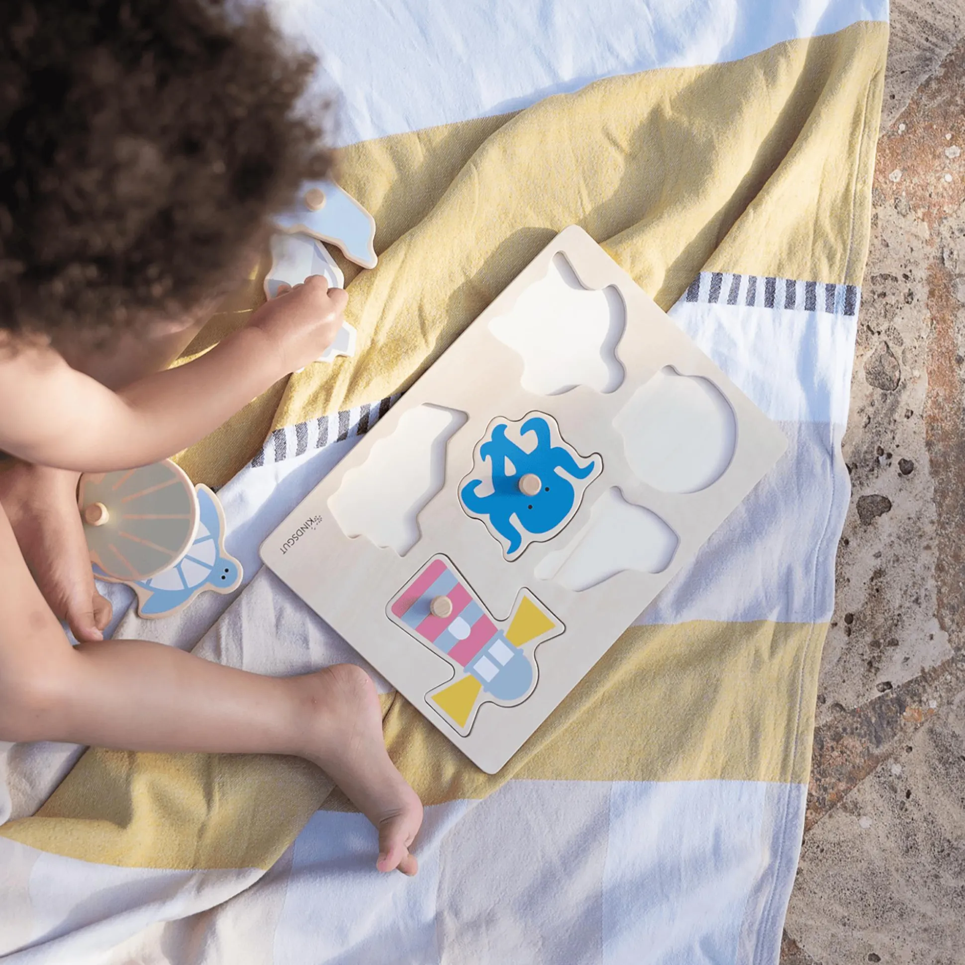 Das Kindsgut Steckpuzzle ist ein 6-teiliges, liebevoll designtes Puzzle mit tollen Motiven für eine Menge Spielspaß. Durch den Knopf können die einzelnen Puzzleteile auch von kleinen Kinderhänden festgehalten werden und so ganz einfach aus der Form genommen werden. Das Spielen mit dem Puzzle trainiert die Feinmotorik und das logische Denken. Aus hochwertigem Holz gefertigt und in schlichten Farben ist es ein Hingucker in jedem Kinderzimmer. Das Steckpuzzle kommt hübsch verpackt und ist ein tolles Geschenk.