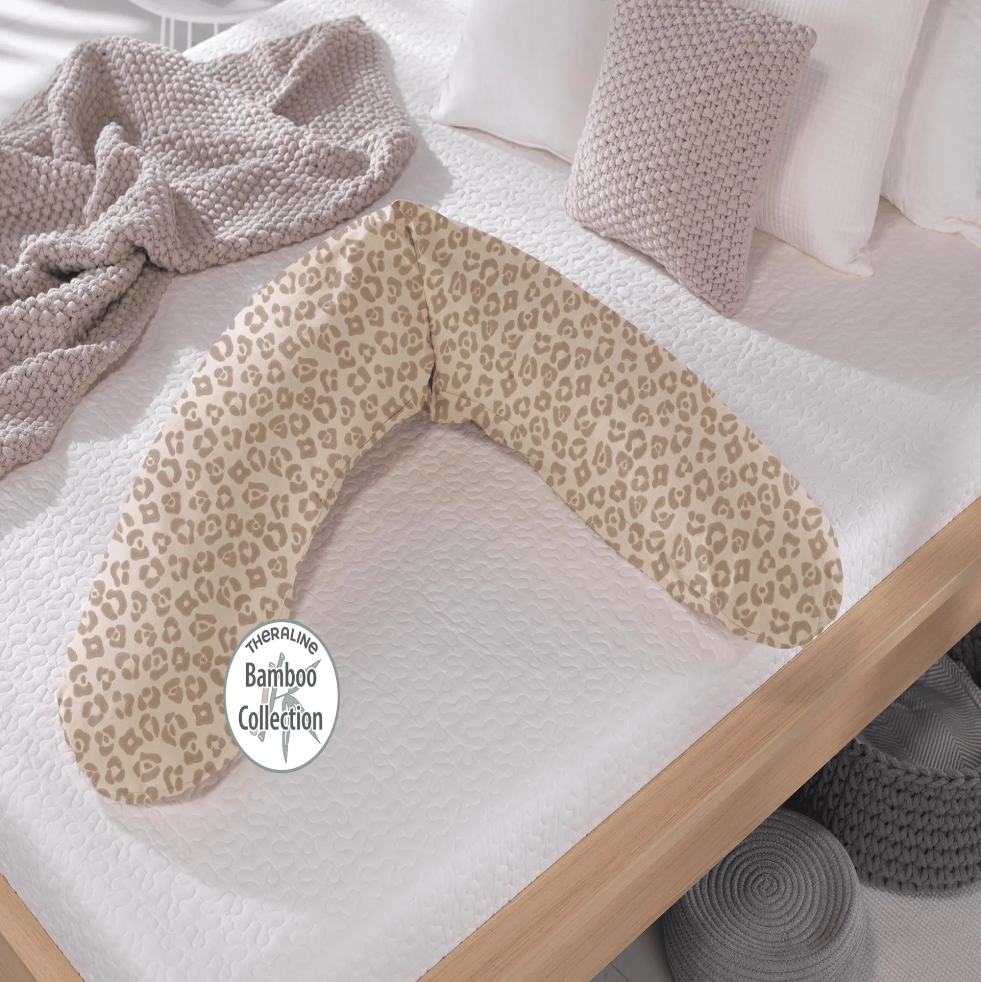 Der Stillkissenbezug Original Bamboo Collection im hübschen Leo-Design ist die perfekte Ergänzung für das Theraline Original Stillkissen. Hergestellt aus weichem Jersey mit einem hohen Anteil an feuchtigkeitsregulierender und atmungsaktiver Bambusviskose, sorgt der Bezug für ein angenehmes Hautklima.Die Kombination mit Bio-Baumwolle macht ihn besonders kuschelweich, während der Elasthan-Anteil für ein feines, leicht kühles Stoffgefühl sorgt.Dank des extra langen, verdeckten Reißverschlusses kannst du den Bezug bequem auf- und abziehen. Zudem ist er durch seine universelle Passform mit vielen Stillkissen kompatibel, was ihn zu einem wunderbaren Begleiter in deinem Alltag macht.