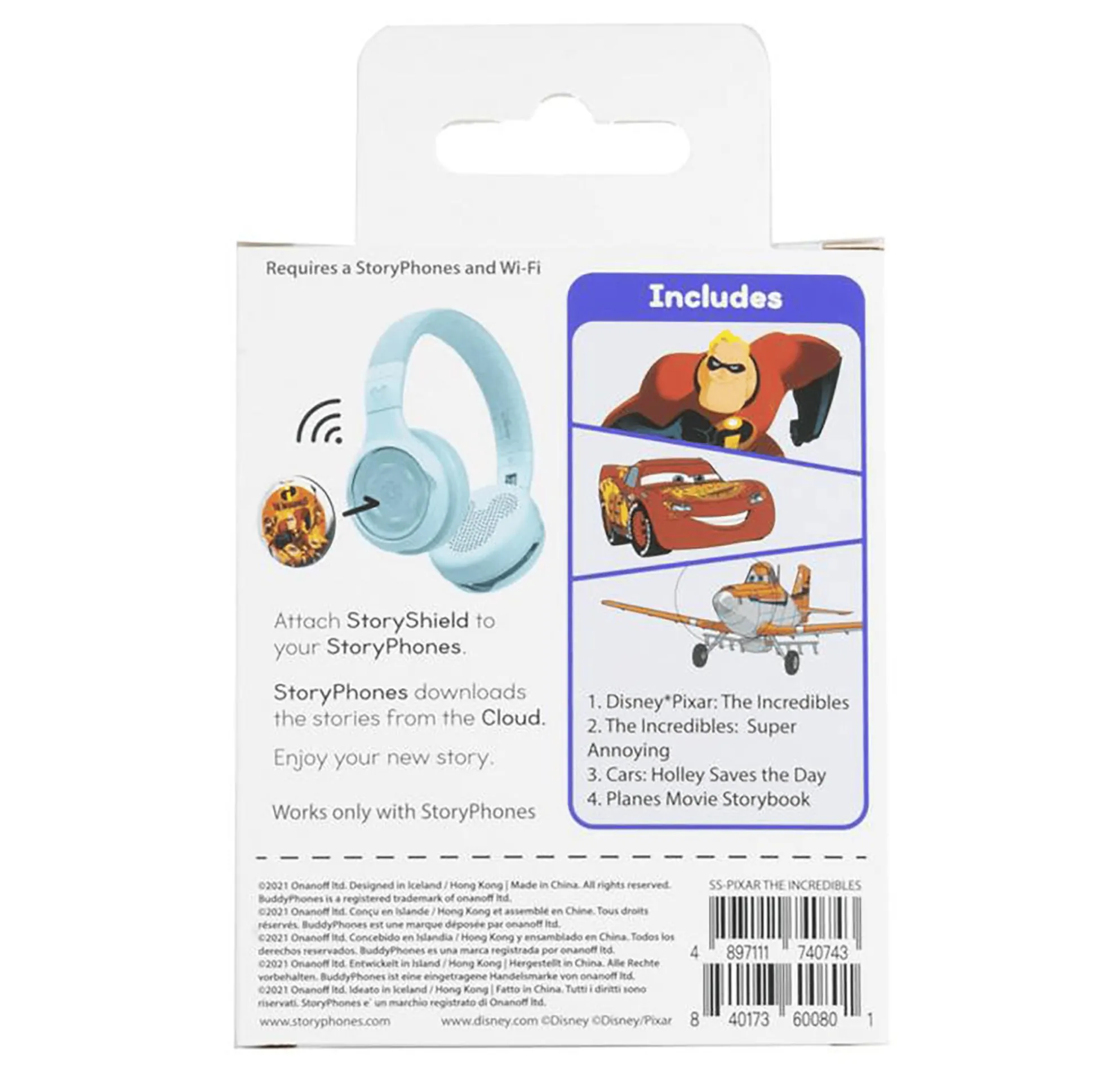 Mit der StoryShield Disney Collection – Die Unglaublichen + Pixar von onanoff wird dein Liebling einen großen Hörspaß erleben. Sechs tolle Kurzgeschichten nehmen dein Kind mit in die spannende Welt von den Unglaublichen und weiteren Helden von Pixar. Die StoryShields funktionieren im Zusammenspiel mit dem StoryPhone Kopfhörer als Abspielmedium für die bezaubernden Geschichten. Weitere StoryShields mit Kurzgeschichten der beliebtesten Helden sind separat erhältlich.
