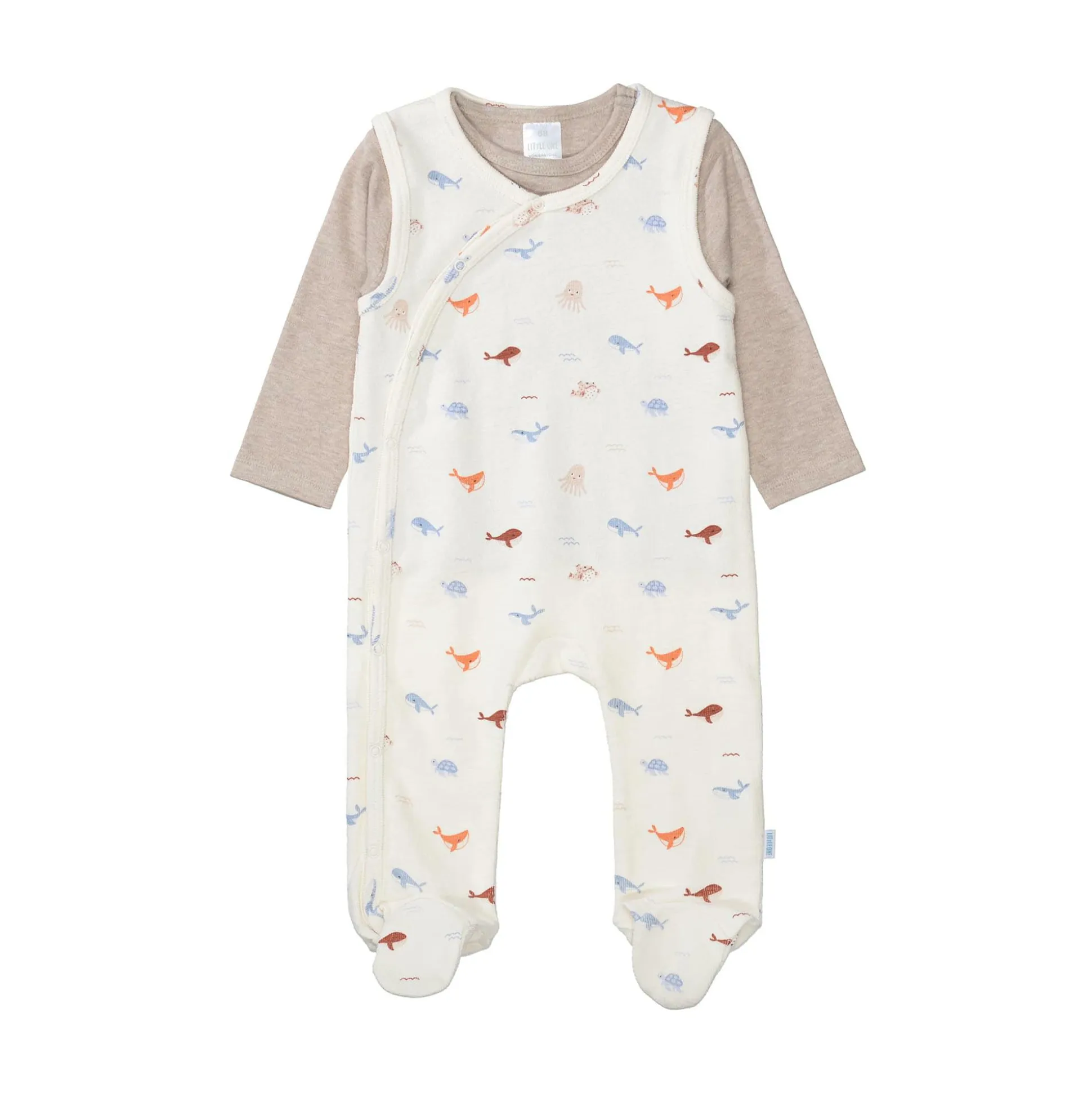 Das Strampler-Set Wal von LITTLE ONE besteht aus hochwertiger Bio-Baumwolle mit einem kleinen Anteil Elasthan, was für ein besonders weiches und bequemes Tragegefühl sorgt. Das praktische Design mit Wickelform und Druckknöpfen macht das An- und Ausziehen deines Lieblings besonders einfach.
