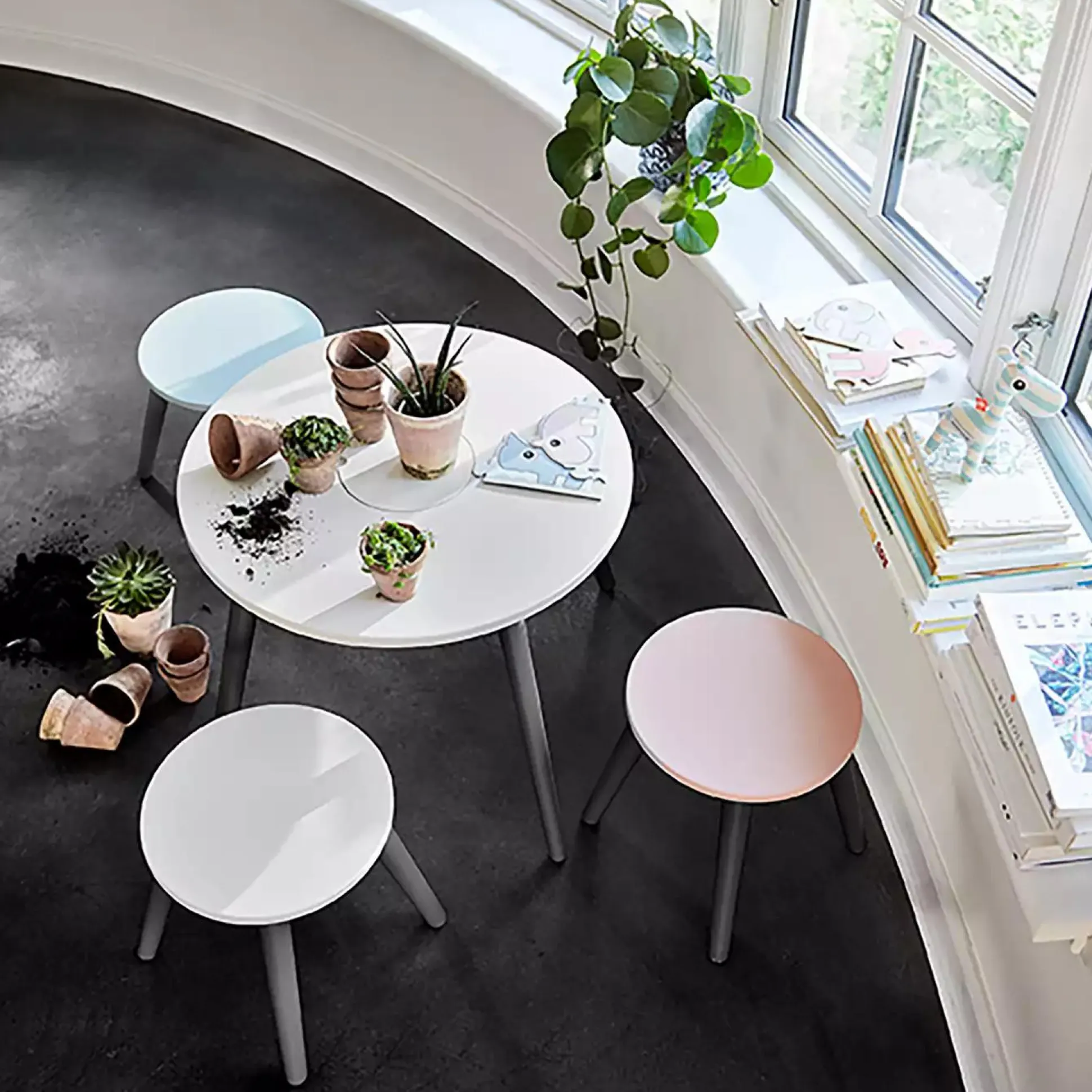 Der kleine Hocker im süßen Grau passt perfekt für jeden Kinderspielbereich.