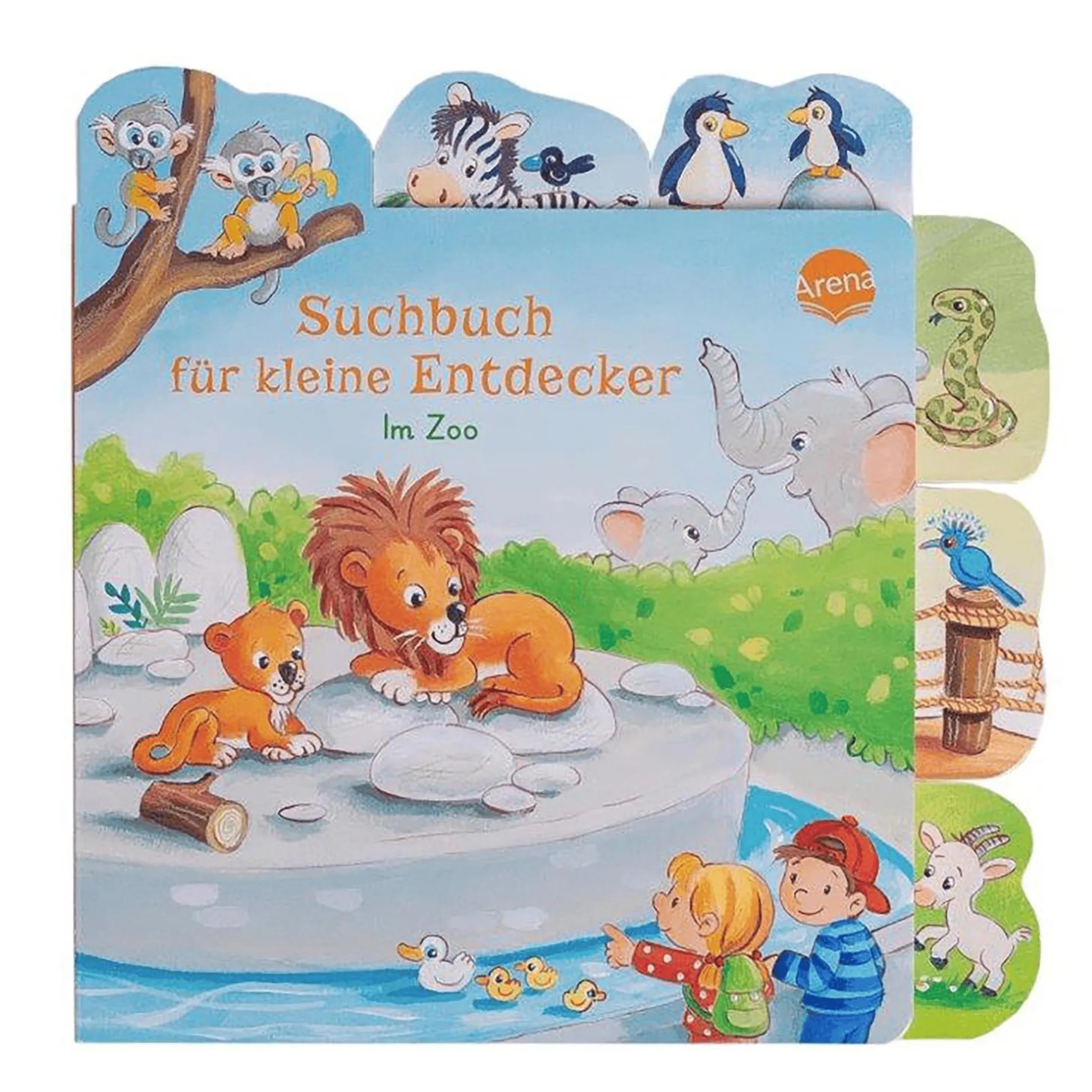 Im Zoo ist immer etwas los! Wohin watscheln die Pinguine? Und was frisst der Affe? Ob bei den Elefanten, im Streichelzoo oder bei den Krokodilen: Überall gibt es so viel zu suchen, zu entdecken und zu lernen! Kleine Bilder mit den zugehörigen Begriffen geben vor, was auf der Seite gesucht werden soll. Auch kleine Hände können mit Hilfe der formgestanzten Register die Seiten leicht umblättern.