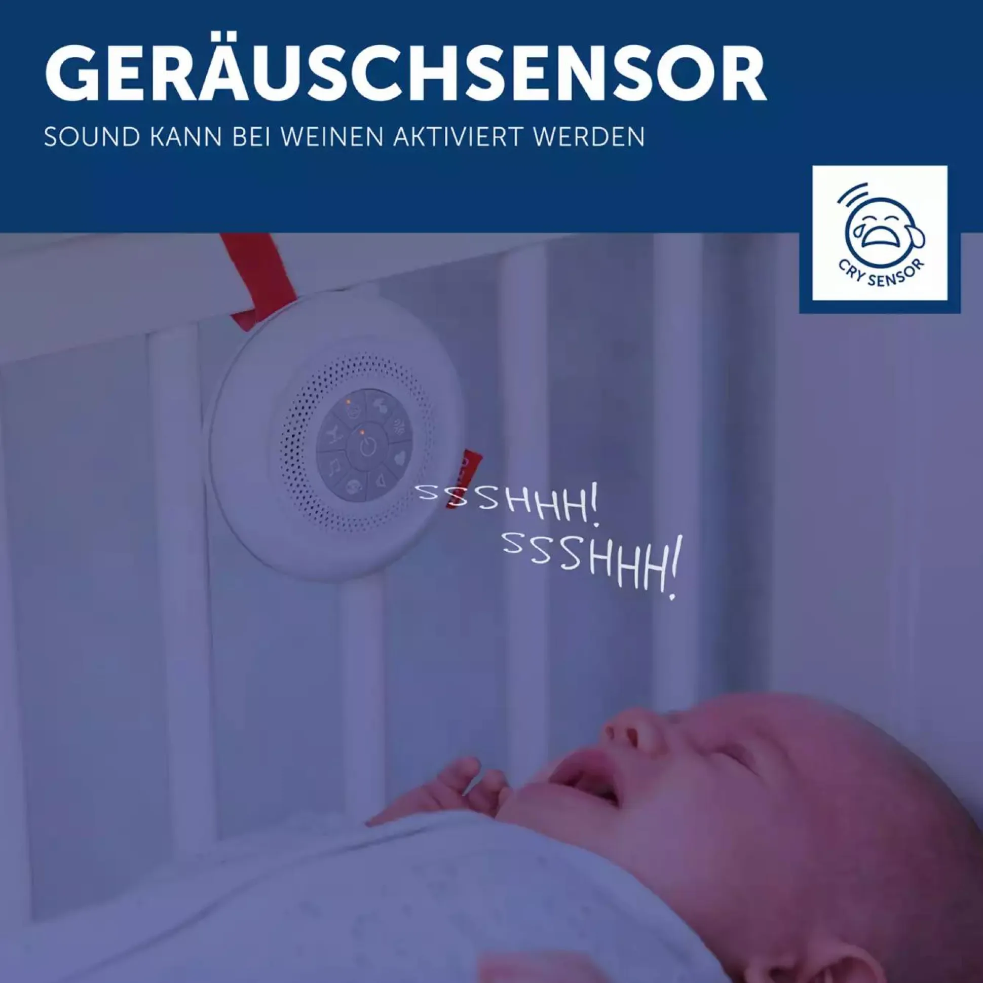 Mit der bewährten Technik, Babys beim Weinen zu beruhigen, hilft Suzy deinem Baby mit einer der 6 voreingestellten Melodien leichter einzuschlafen – SSSHHH SSSHHH, Herzschlag-Geräusche oder Rauschen. Diese Geräusche imitieren die Umgebung im Mutterleib und beruhigen so dein Baby auf die altbewährte Technik, damit es aufhört zu weinen.