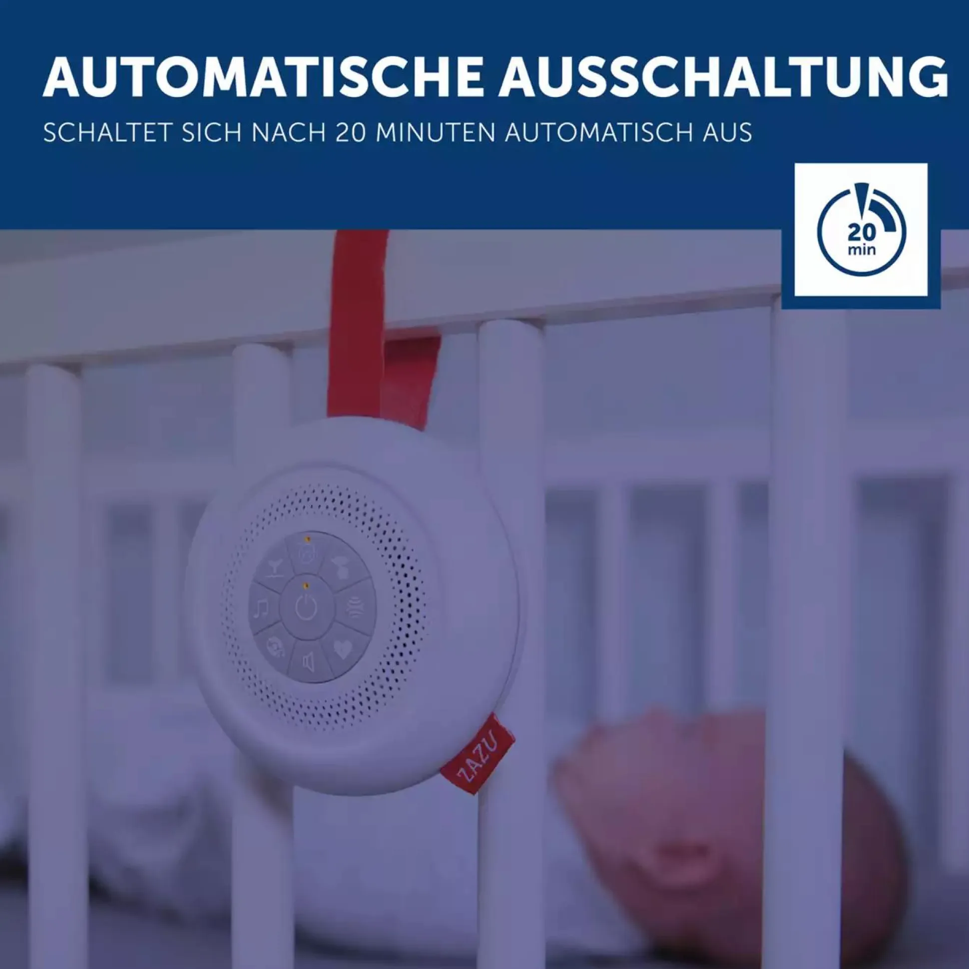 Die automatische Ausschaltung lässt den Sound nach ca. 20 Minuten verstummen. Dank des Geräuschsensors kann sich Suzy automatisch wieder einschalten, wenn dein Baby weint. Die Lautstärke kann individuell geregelt werden.