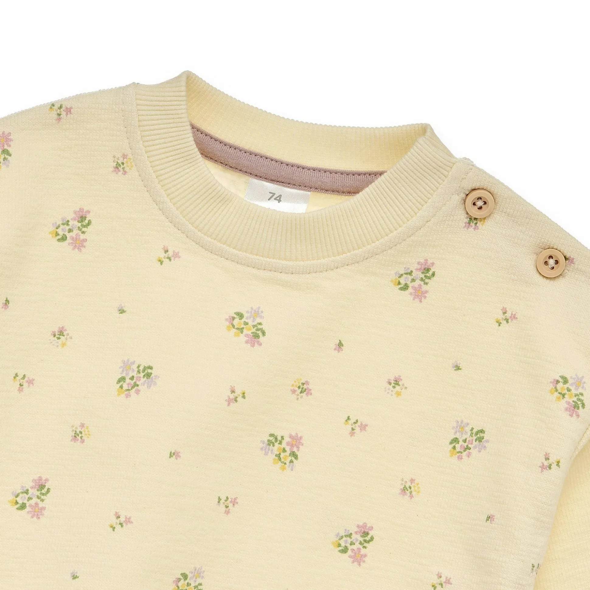 Das Sweatshirt Blümchen von LITTLE ONE begeistert mit seinem liebevollen Design und der hochwertigen Verarbeitung aus 100% Bio-Baumwolle. Die weiche, nachhaltige Qualität sorgt für ein angenehmes Tragegefühl, während die praktischen Knöpfe das An- und Ausziehen deines Schatzes besonders einfach machen.