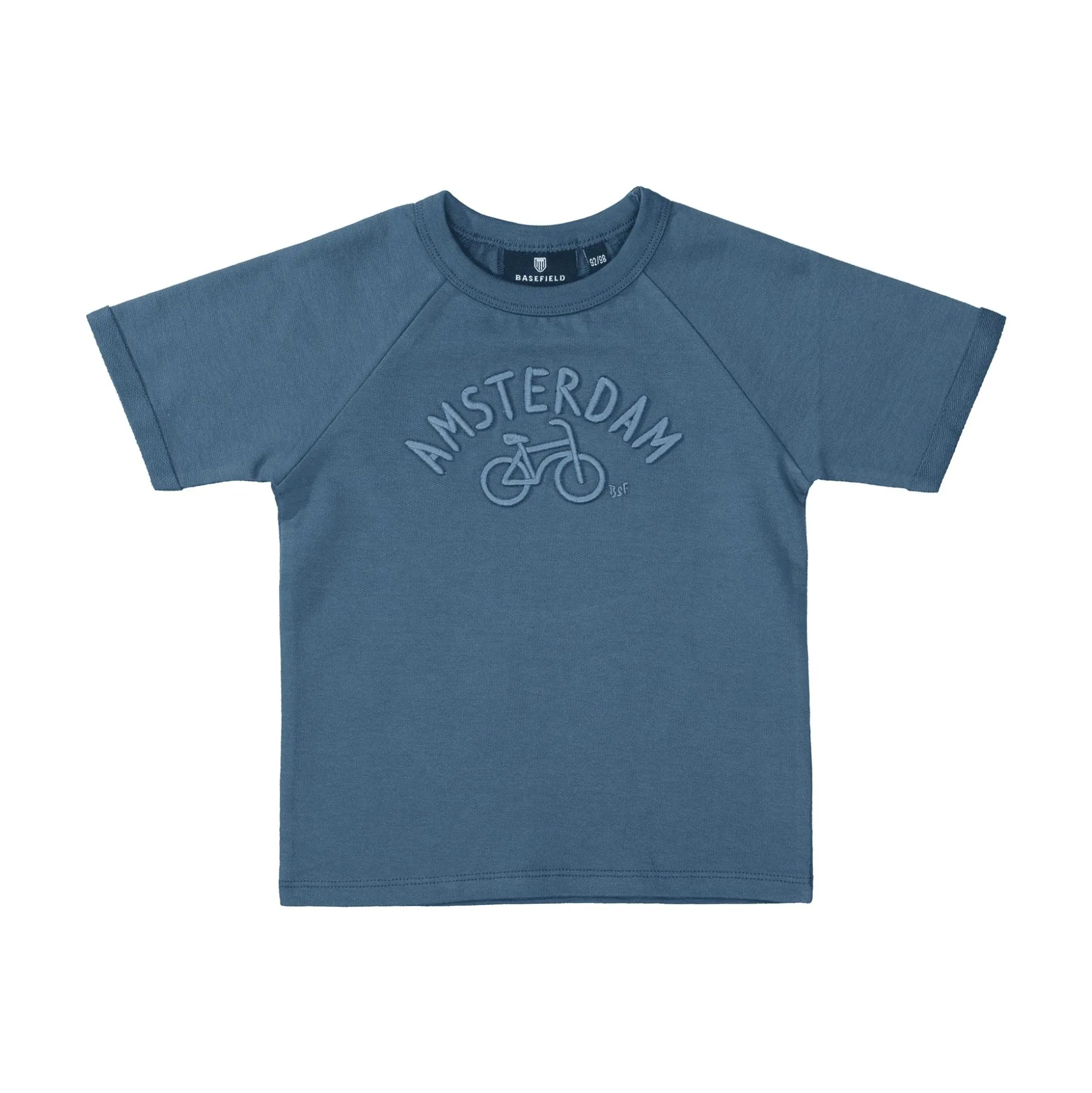 Das T-Shirt Amsterdam von Basefield begeistert mit einem sportlich-lässigen Look und coolem Schriftzug samt Fahrrad-Motiv – perfekt für sommerliche Abenteuer deines kleinen Wirbelwinds. Aus 100% weicher Baumwolle gefertigt, bietet es ein angenehmes Tragegefühl und ist durch den klassischen Rundhalsausschnitt besonders bequem anzuziehen.