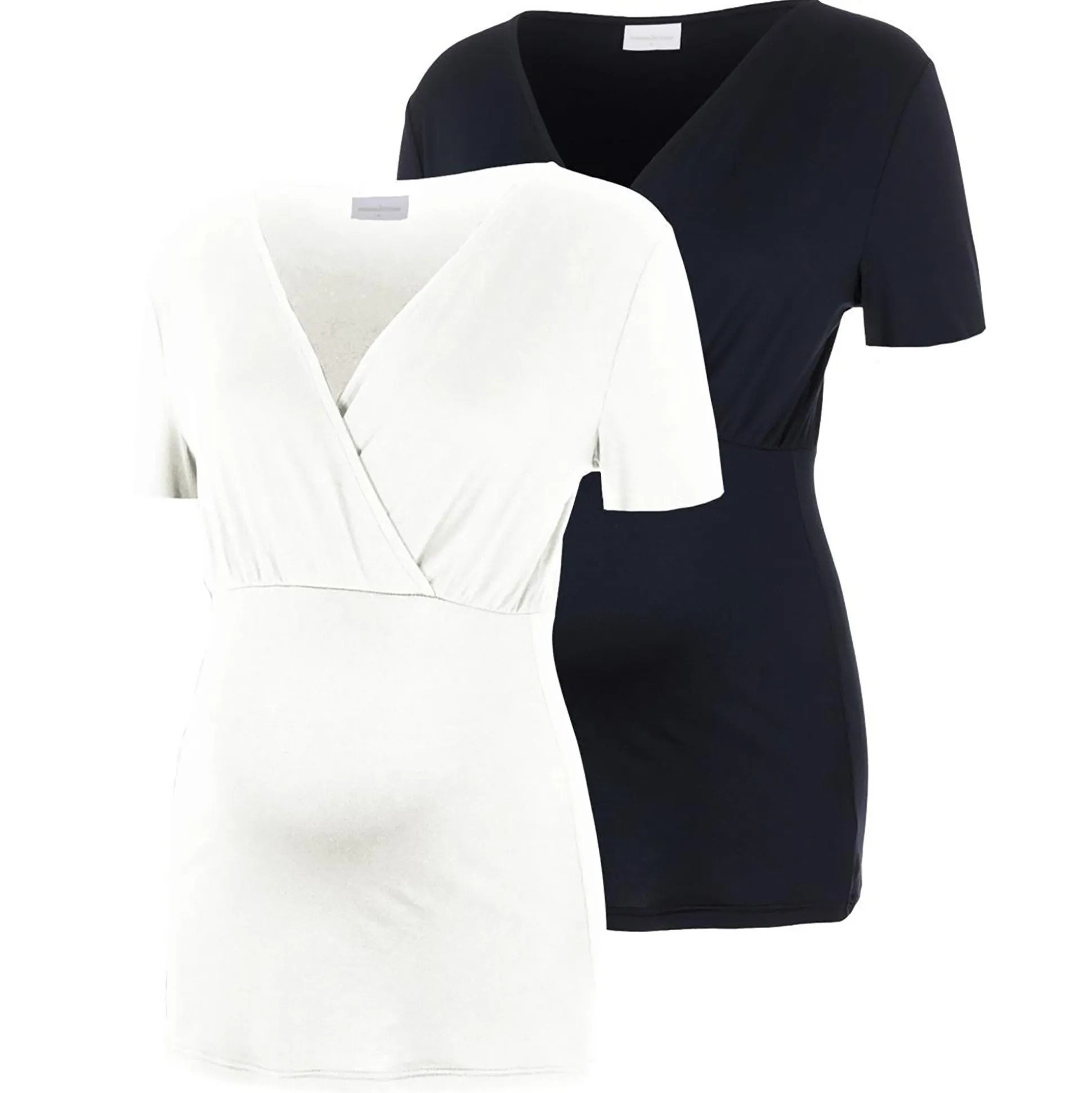 Die Mamalicious T-Shirts im praktischen 2er-Pack bieten dir dank der normal geschnittenen Passform jederzeit einen angenehmen Tragekomfort während deiner Schwangerschaft. Die kurzärmligen Oberteile besitzen zusätzlich einen schönen V-Ausschnitt und bestehen zu 95% aus weicher Bio-Baumwolle. Die unifarbenen T-Shirts von Mamalicious kannst du wunderbar mit anderen Kleidungsstücken kombinieren. Gewaschen werden können sie zudem bei maximal 40°C in der Maschine.
