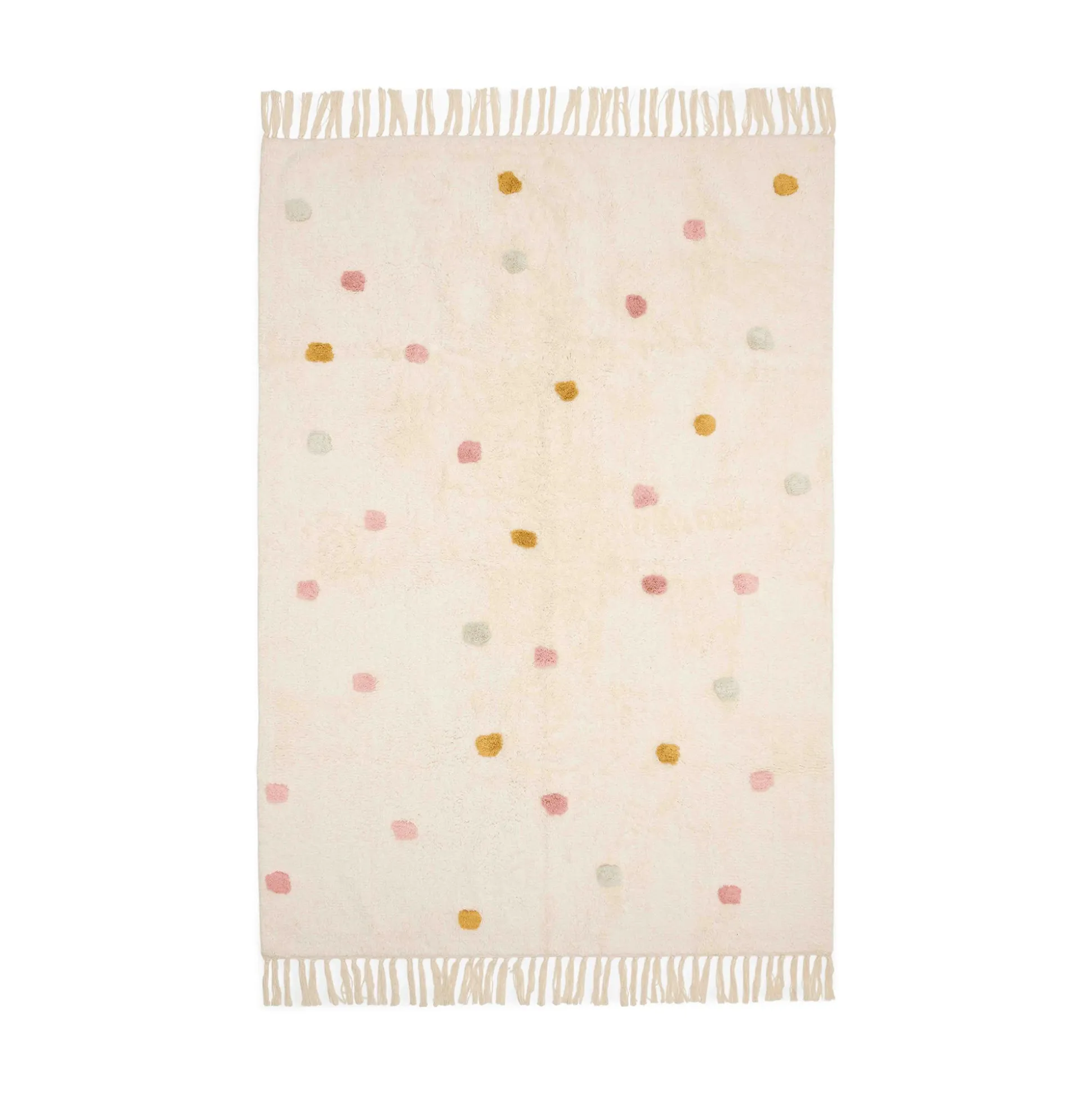 Entdecke den Teppich Pünktchen von Little Dutch! Er besteht aus 100% kuschelweicher Bio-Baumwolle und beinhaltet eine rutschfeste Latex-Rückseite.Zusätzlich bringt er mit seinen Quasten eine fröhliche, verspielte und gemütliche Atmosphäre in das Kinderzimmer deines Lieblings. Ein absoluter Hingucker!