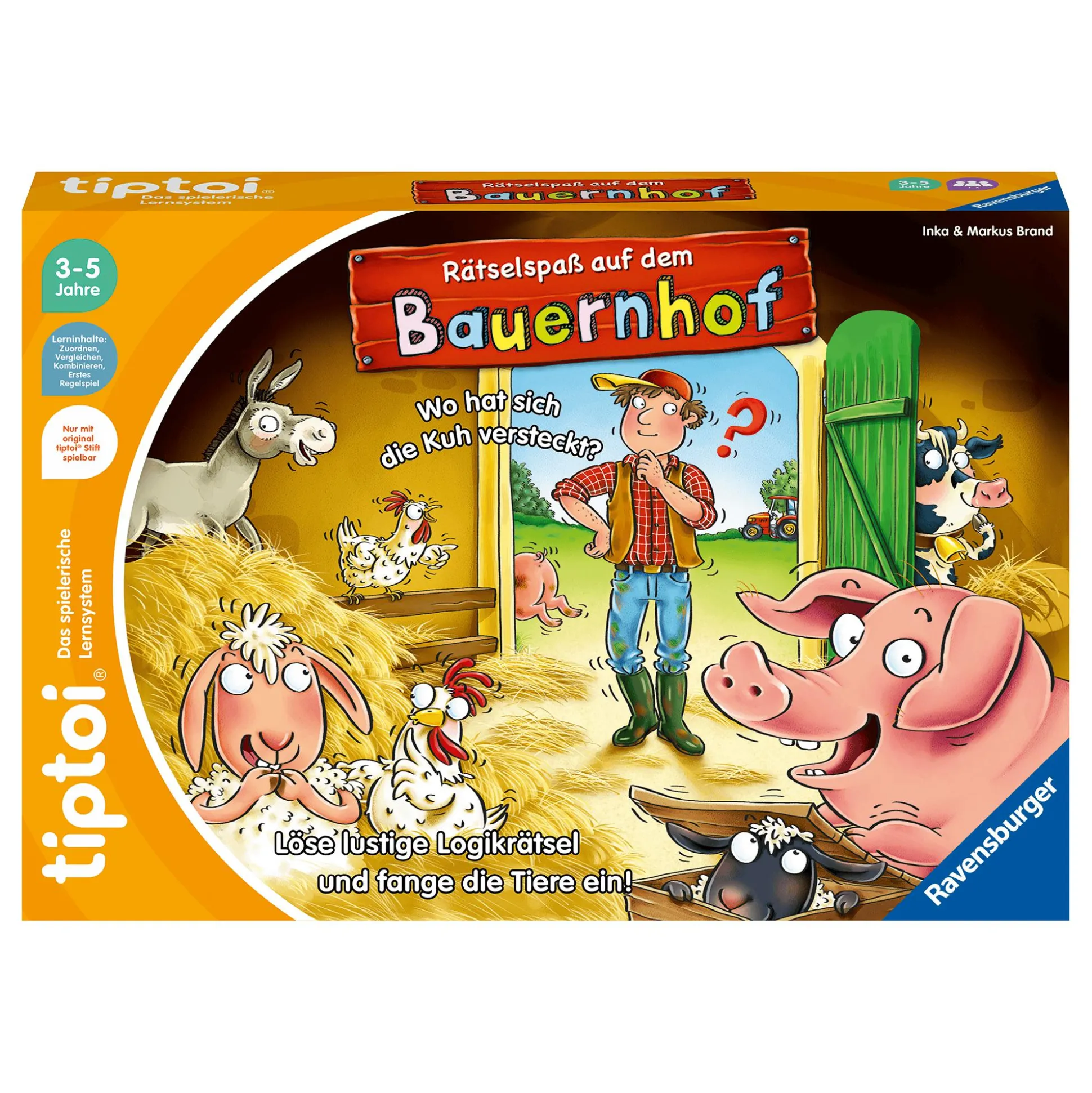 Auf dem Bauernhof sind alle Tiere entwischt. Wer hilft sie einzufangen? Dein Kind kann mit dem tiptoi® Rätselspaß auf dem Bauernhof von Ravensburger lustige Logik-Rätsel lösen und erfahren, wo sich die Tiere verstecken. Durch Zuordnen, Vergleichen und Kombinieren, fördert das Lernspiel spielerisch logisches Denken. Wo sind die Eier versteckt? Welches Tier kann krähen? Die ideale Beschäftigung für Kinder ab ca. 3 Jahren, mit Tierwissen, Liedern und Geräuschen.