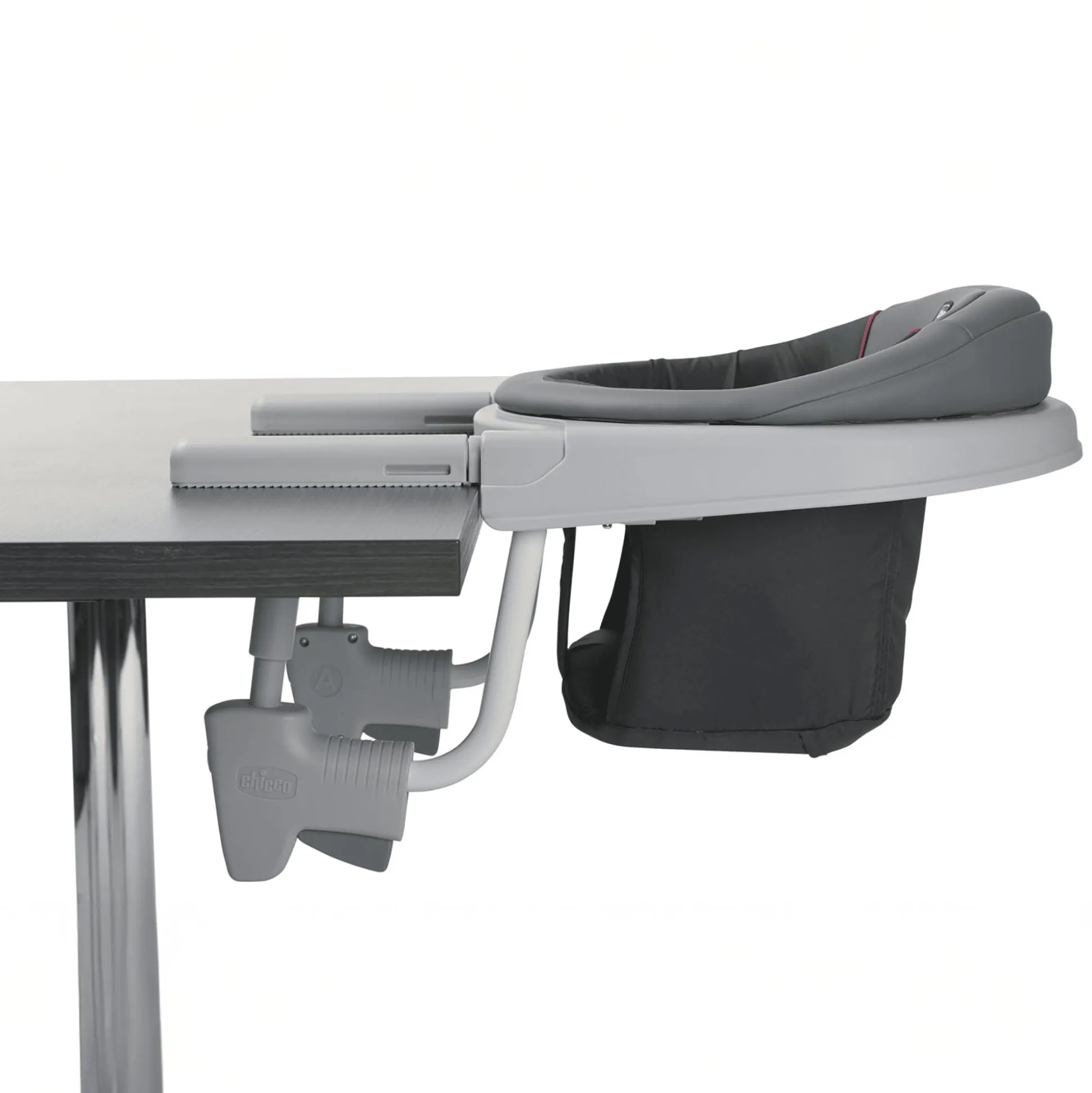 Die Befestigung ist ebenso clever gelöst: Zwei Klemmen mit sicheren Knöpfen sorgen für eine stabile Fixierung an Tischplatten mit einer Dicke von ca. 1,9 bis 3,6 cm. Damit ist der Sitz nicht nur sicher, sondern auch schnell und einfach anzubringen.