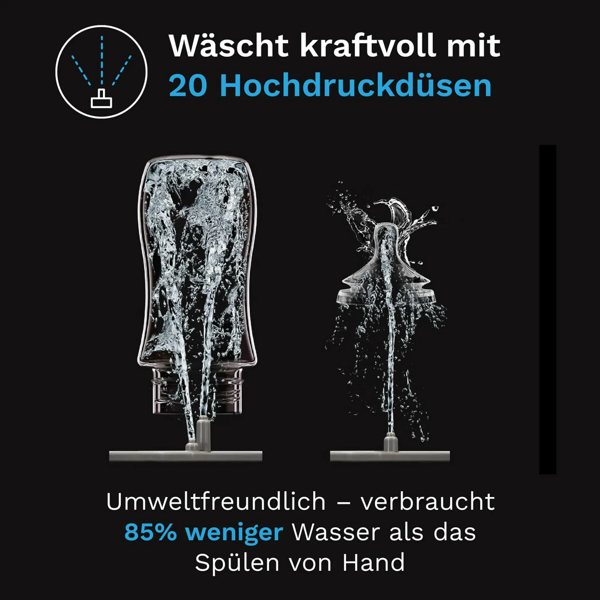 - 50% weniger Wasserverbrauch als bei Handwäsche