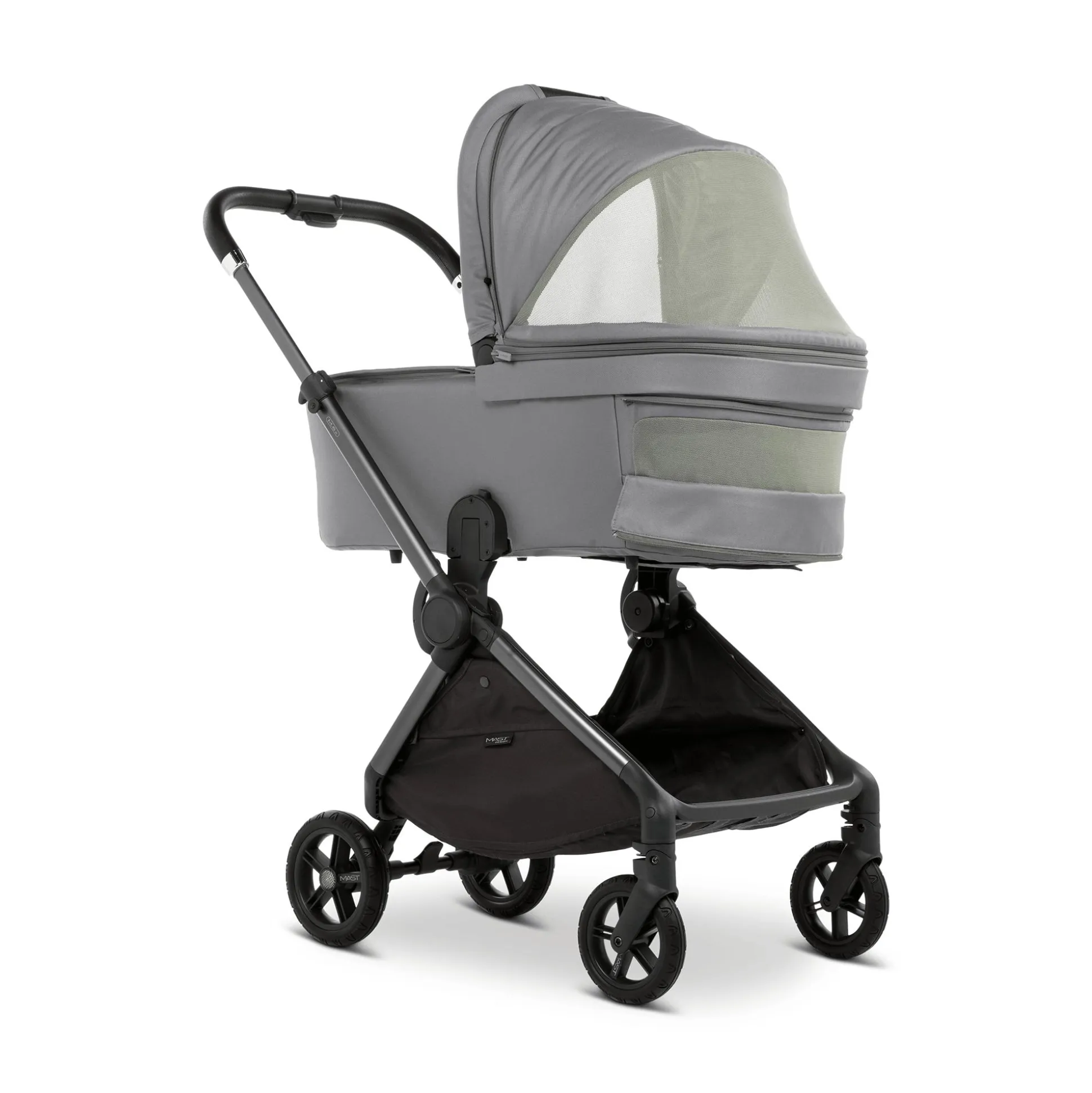 Die Babywanne M.6x von Mast ist die ideale Ergänzung für den Kinderwagen M.6x und bietet deinem Baby ab der Geburt bis zu einem Gewicht von ca. 9 kg oder einer Größe von ca. 76 cm einen sicheren und bequemen Rückzugsort. Dank des integrierten UV-Schutzes und dem großen, verstellbaren Sonnendach ist dein kleiner Liebling bestens vor Sonne und Wind geschützt – ideal für entspannte Spaziergänge bei jedem Wetter.