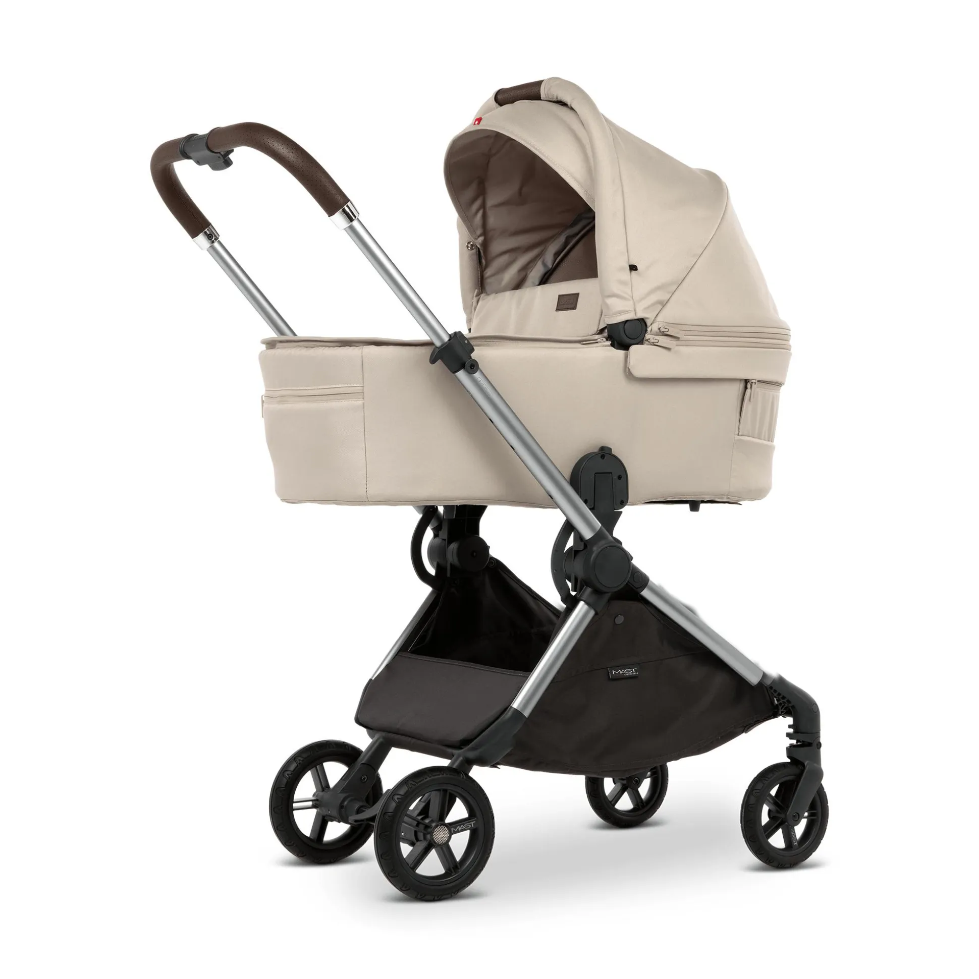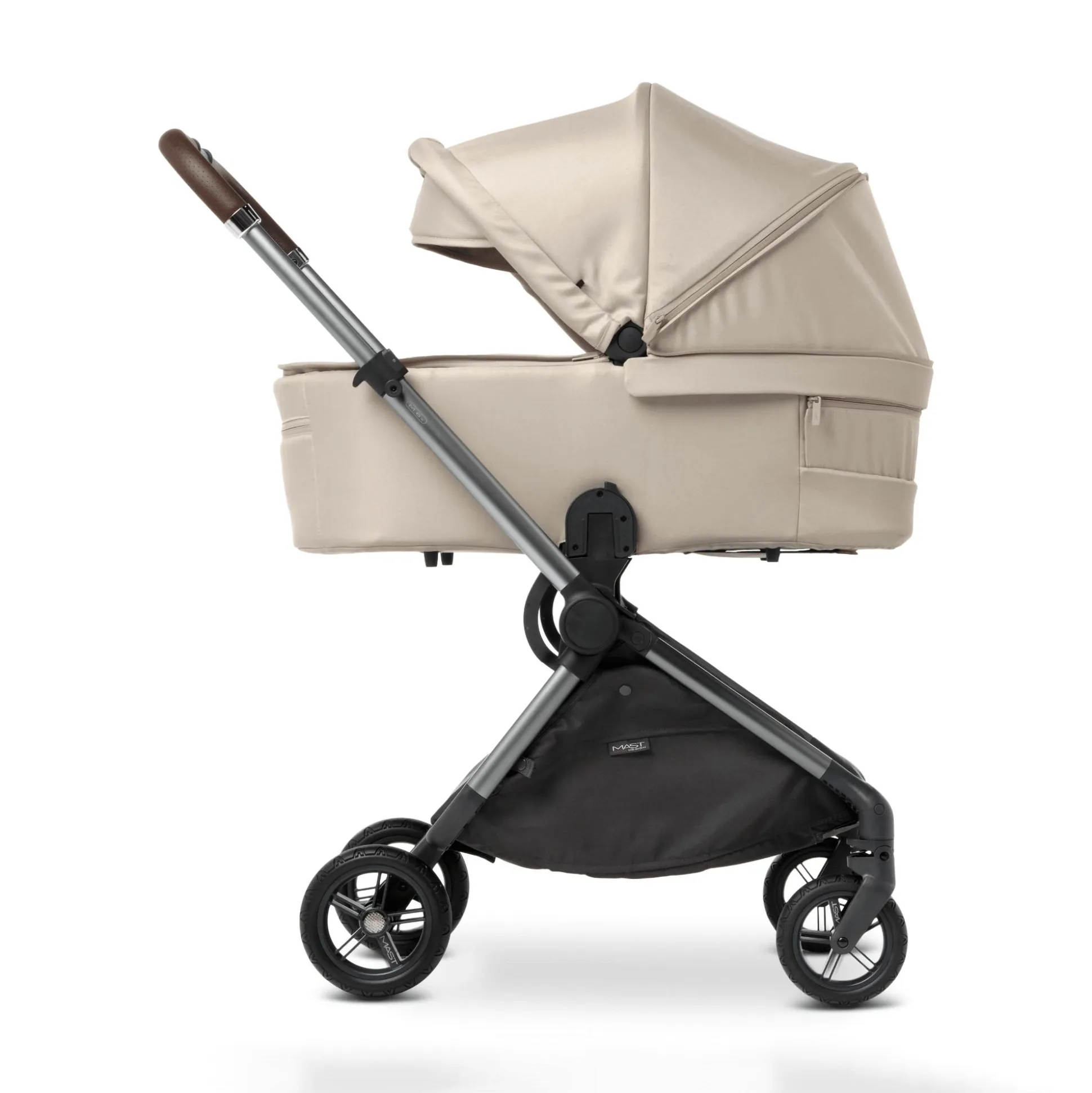 Die Babywanne M.6x von Mast ist die ideale Ergänzung für den Kinderwagen M.6x und bietet deinem Baby ab der Geburt bis zu einem Gewicht von ca. 9 kg oder einer Größe von ca. 76 cm einen sicheren und bequemen Rückzugsort. Dank des integrierten UV-Schutzes und dem großen, verstellbaren Sonnendach ist dein kleiner Liebling bestens vor Sonne und Wind geschützt – ideal für entspannte Spaziergänge bei jedem Wetter.