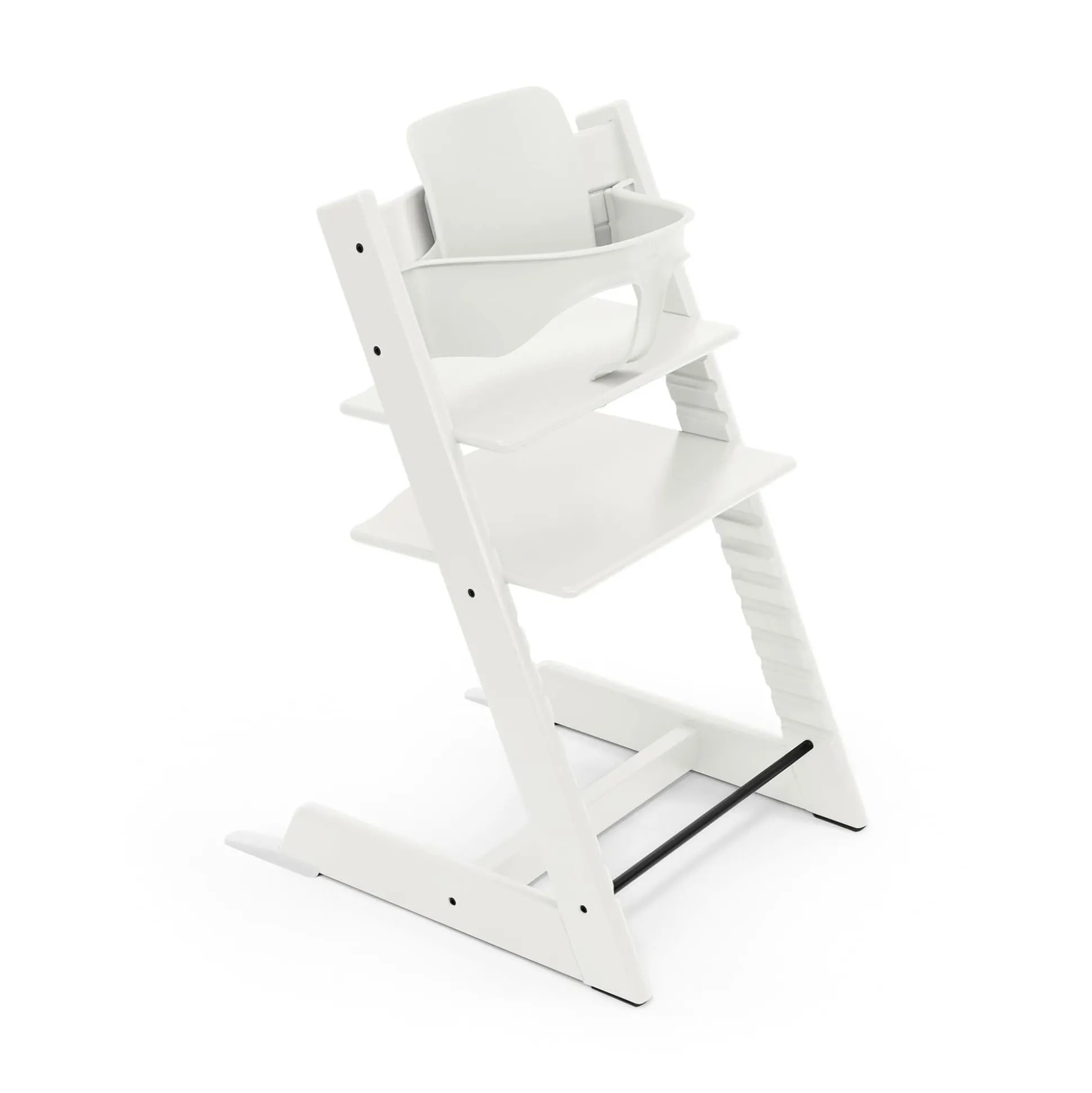 - das Baby Set besteht aus einer Rückenlehne, einem Bügel und einem Paar Gleitschuhen („Extended Glider“), welche die Kippsicherheit des Tripp Trapps® zusätzlich verbessern