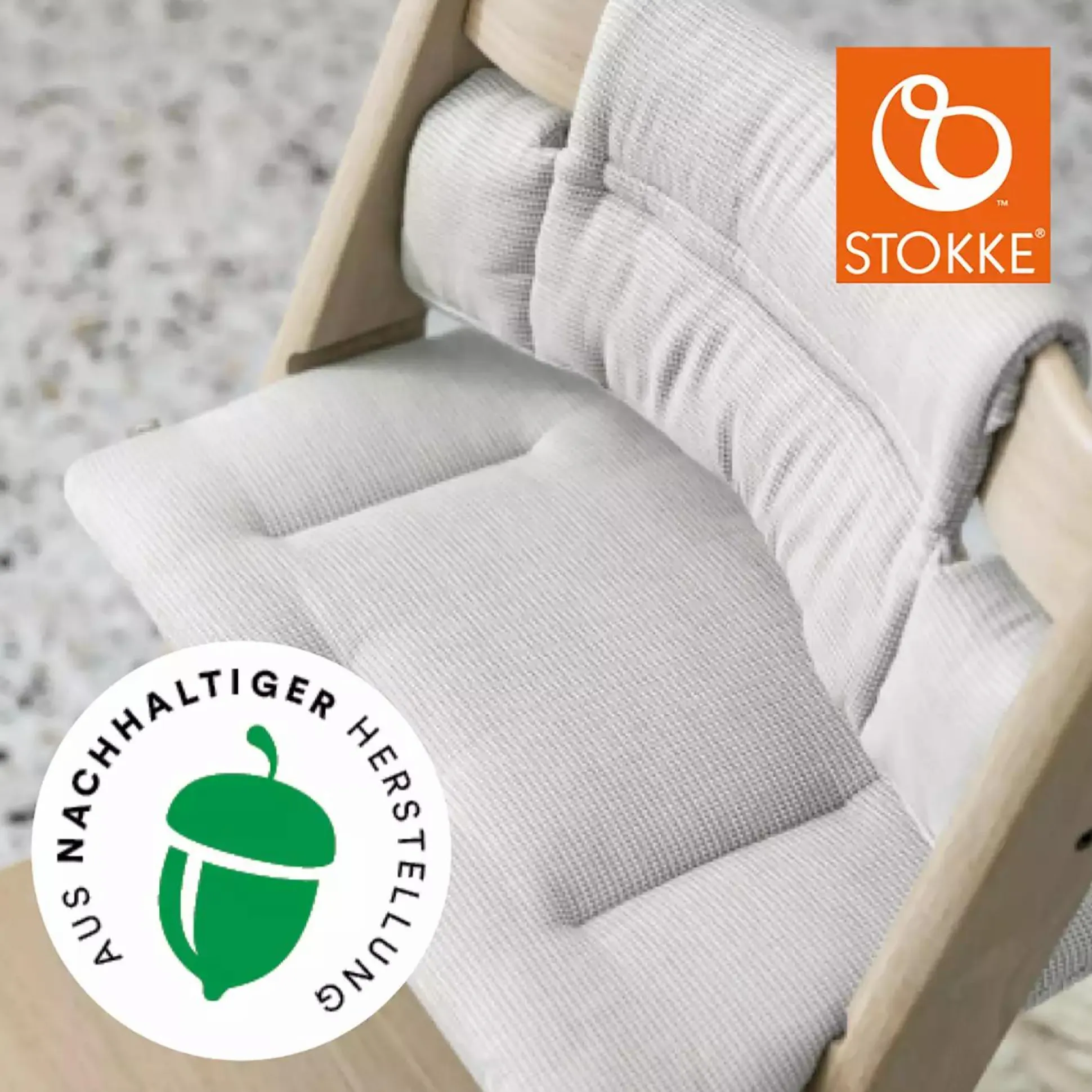 Das Stokke® Kissen aus nachhaltiger Herstellung unterstützt die Umwelt – Stokke übernimmt mit seiner Nordic Grey Linie Verantwortung für die Umwelt.