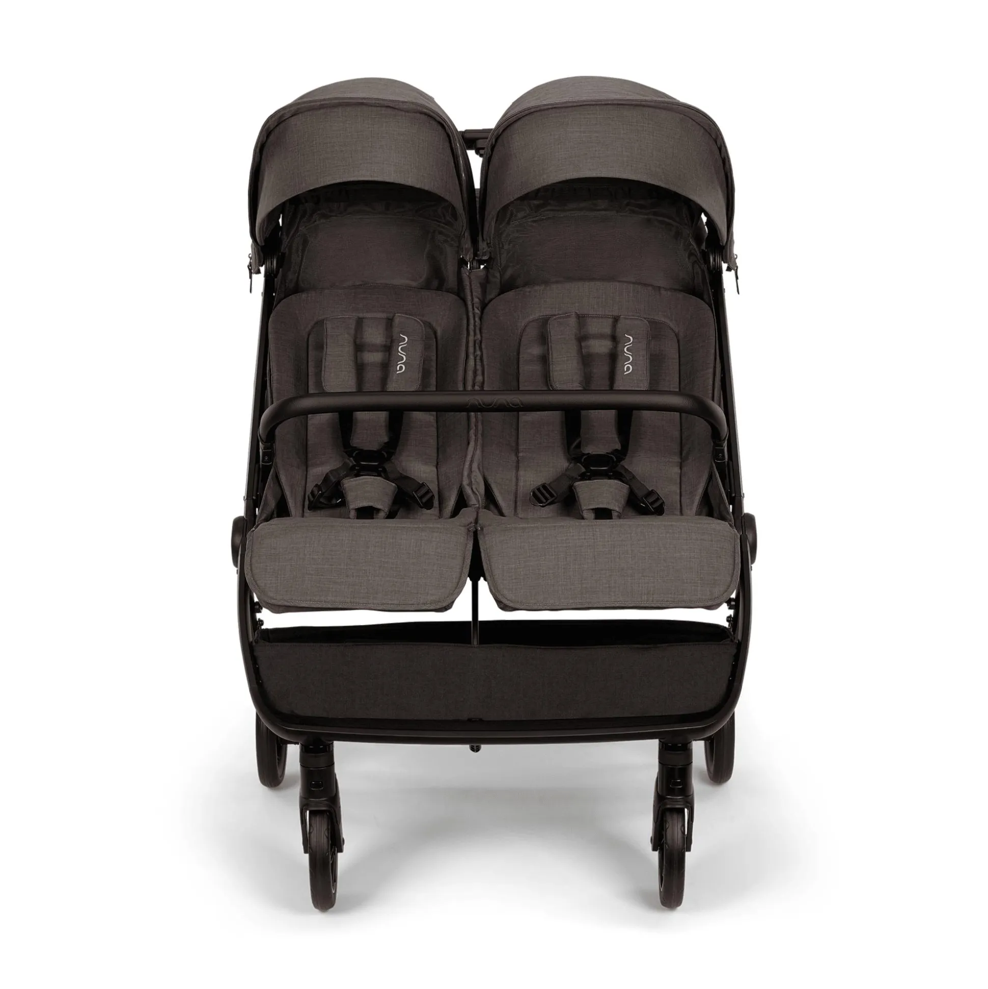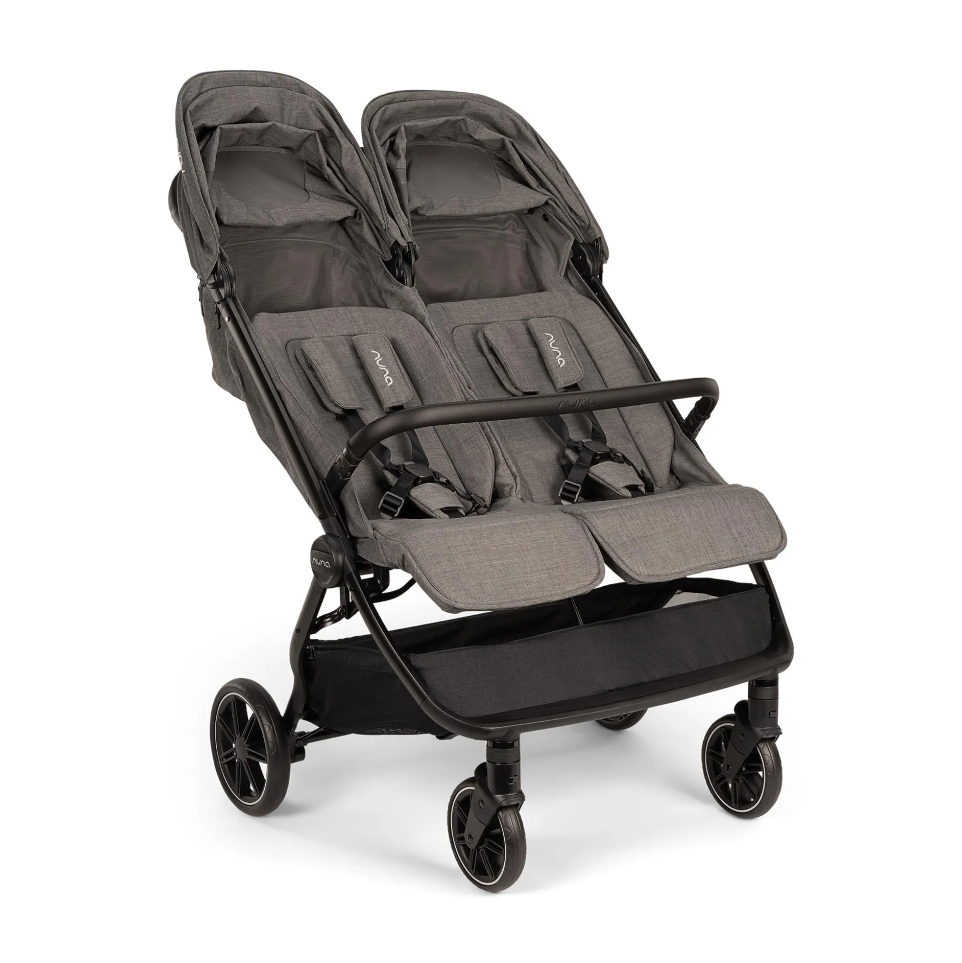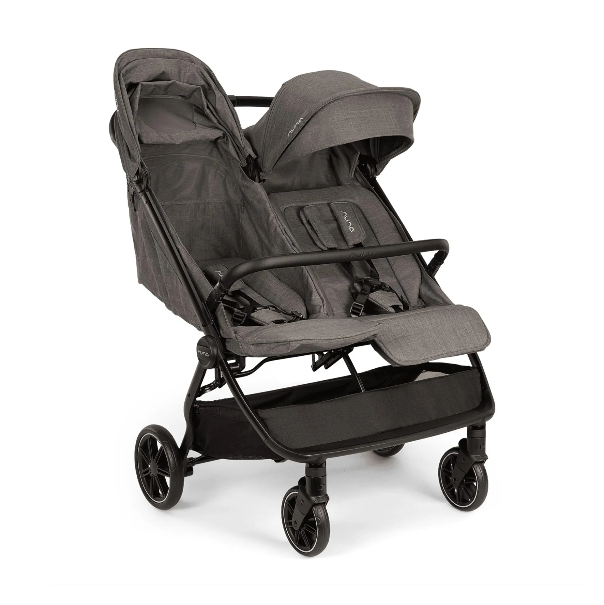 Ein Zwilling kommt selten allein – daher genießt du mit dem Zwillingskinderwagen TRVL dubl von nuna maximale Flexibilität und Komfort für dich und deine beiden kleinen Entdecker. Dieser elegante Kinderwagen ist leicht, wendig und bietet beiden Kindern von Geburt an bis zu einem Gewicht von ca. 22 kg pro Sitz eine sichere und bequeme Fahrt. Dank des innovativen Travel Systems lassen sich alle (separat erhältlichen) Babyschalen der PIPA series ohne Adapter auf dem breiteren Sitz installieren – perfekt für einen mühelosen Wechsel zwischen Auto und Spaziergang. Die Sitze bieten individuellen Komfort durch unabhängig verstellbare Rückenlehnen, Verdecke und Wadenstützen, sodass sich jedes Kind rundum wohlfühlt. Ob in der Stadt, im Park oder sogar in Freizeitparks – mit einer Breite von nur ca. 78 cm passt du bequem durch Türen und enge Gänge, ohne auf Stabilität oder Fahrkomfort verzichten zu müssen.