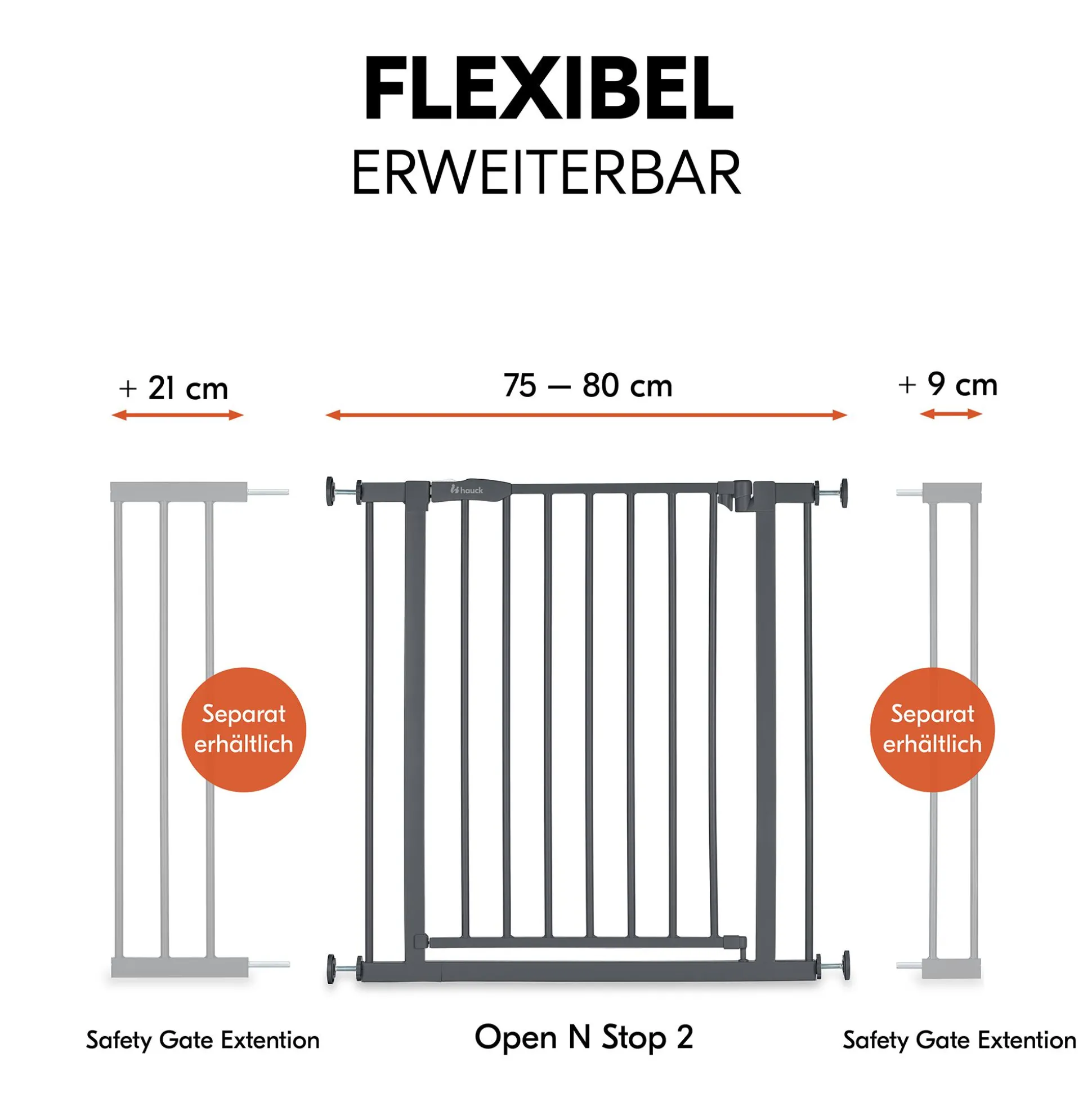 Außerdem ist das Schutzgitter nicht nur für Durchgänge mit einer Standardbreite von ca. 75-80 cm geeignet, sondern kann durch die separat erhältlichen Verlängerungen von 9 cm und 21 cm auf bis zu 122 cm erweitert werden.Durch optionale Y-Spindeln von hauck ist auch die Befestigung an Treppengeländern mit Rundholmen kinderleicht. Mit einer Höhe von ca. 77 cm bietet das Absperrgitter deinem Schatz im Alter von ca. 0 bis 24 Monaten zuverlässigen Schutz – ob zuhause, bei den Großeltern oder auf Reisen.