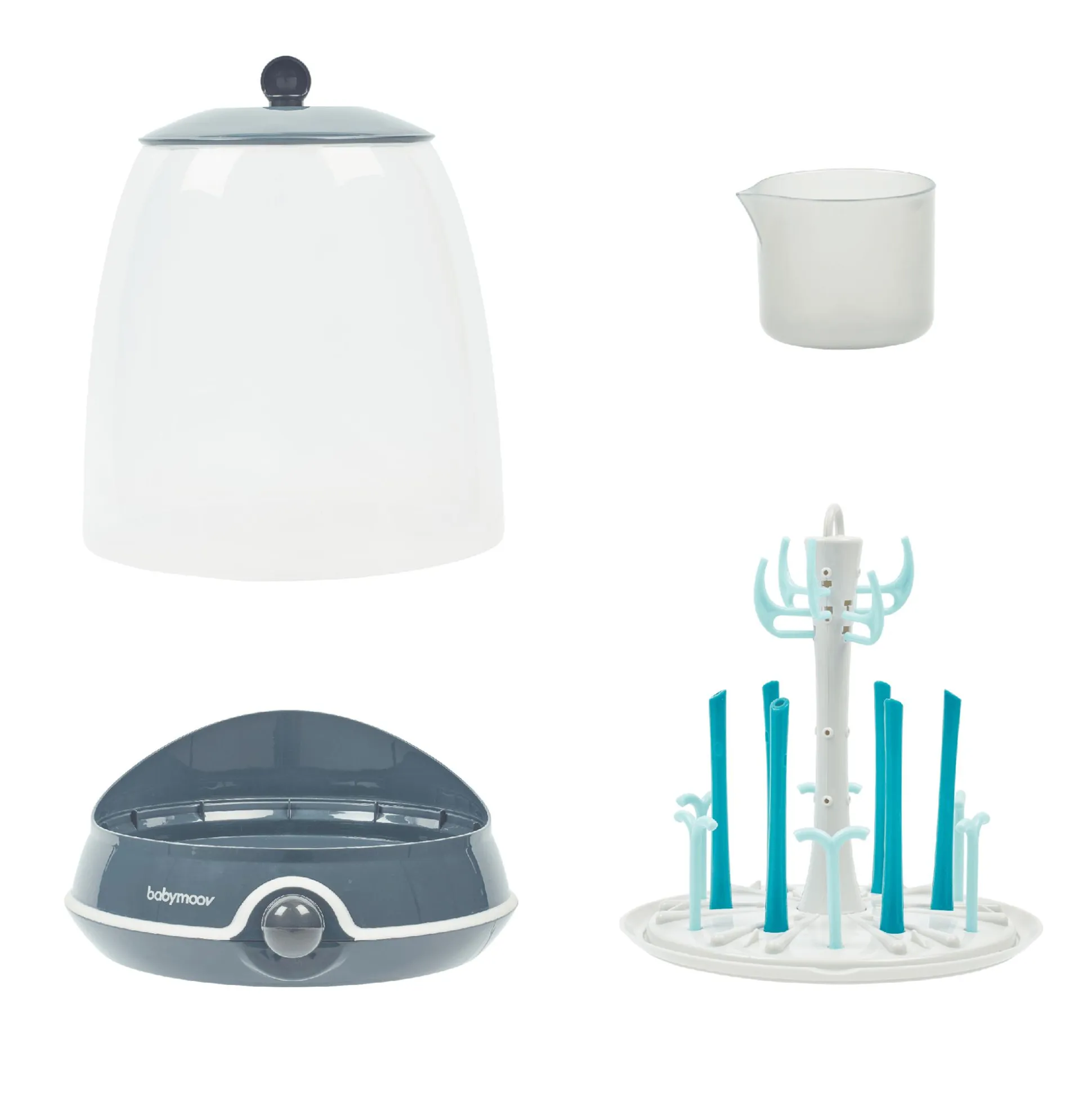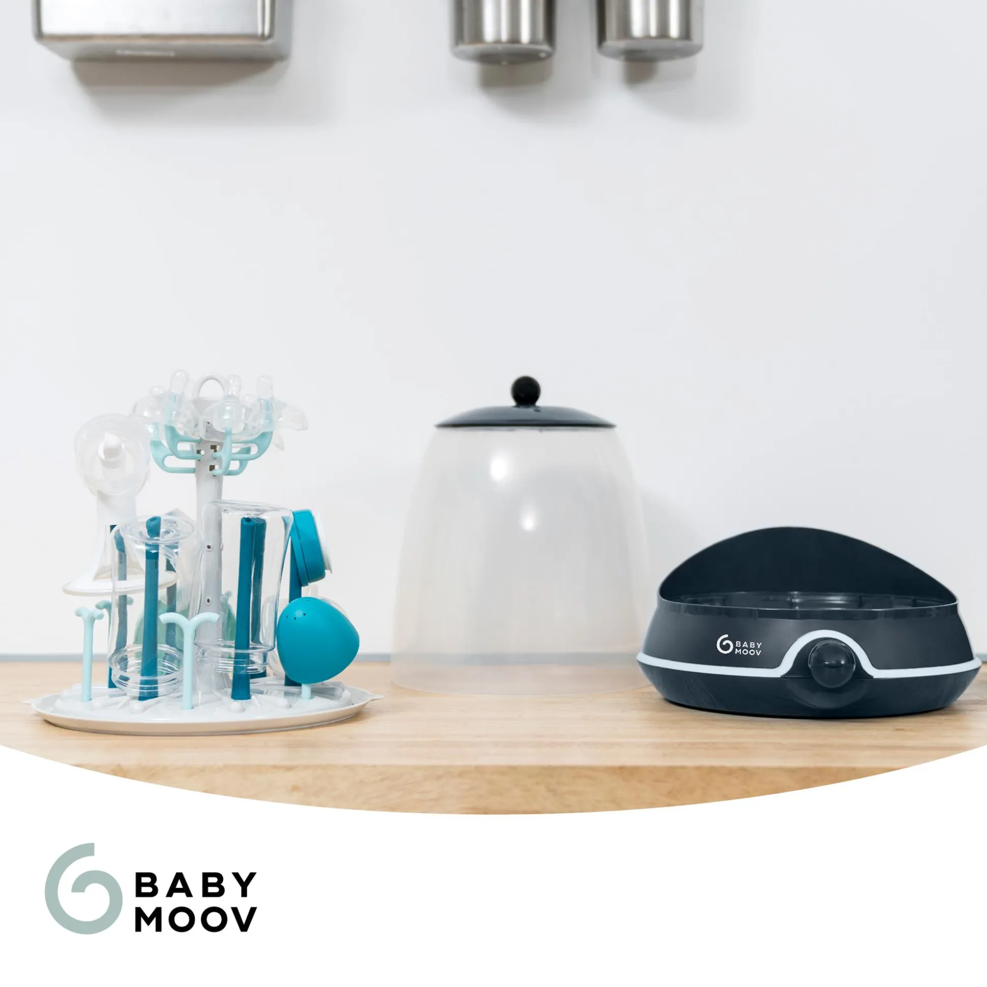 Der Einsatz mit den Dampfdüsen lässt sich leicht entnehmen und als Abtropfständer nutzen. So kannst du dein Babyzubehör nach dem Sterilisations-Vorgang einfach entnehmen und an der frischen Luft trocknen lassen.