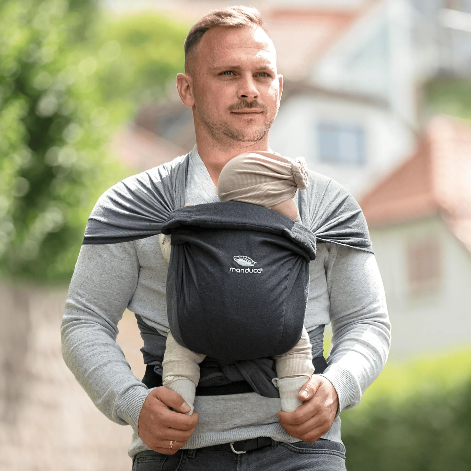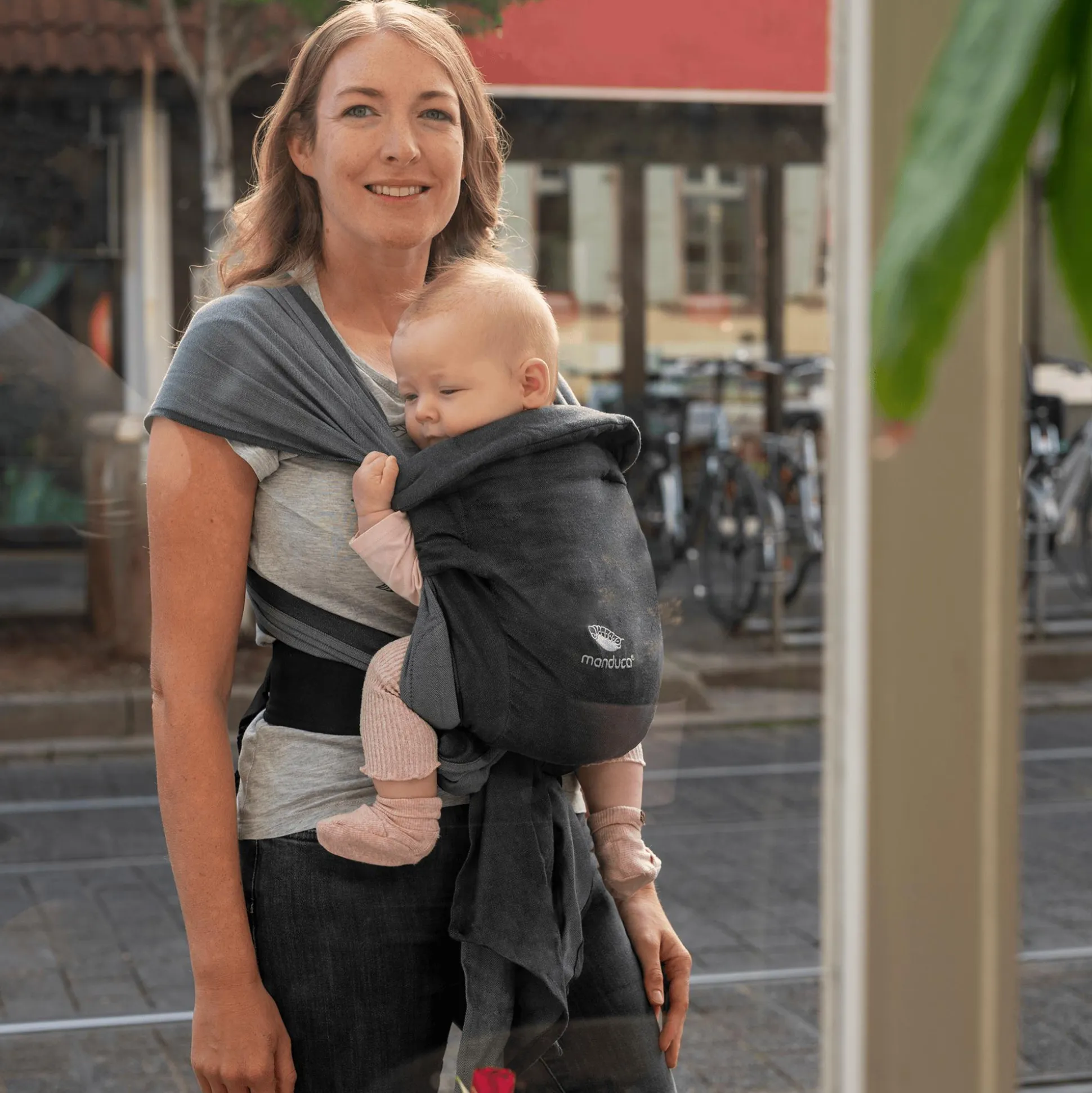 Von Geburt an Tragen: Mit der manduca Twist Regular können bereits Neugeborene die Nähe ihrer Mutter genießen.